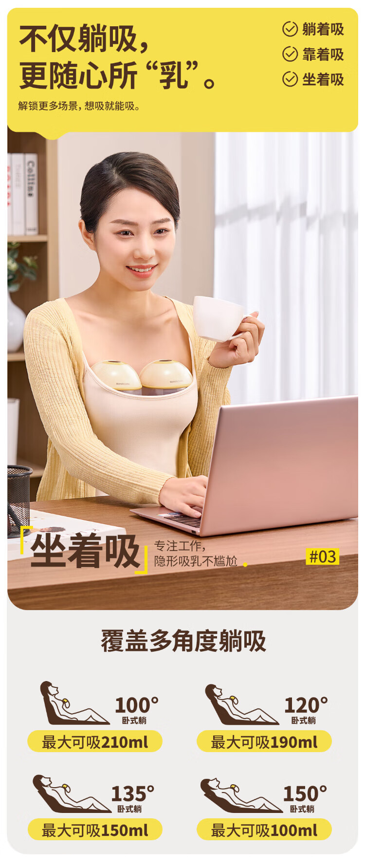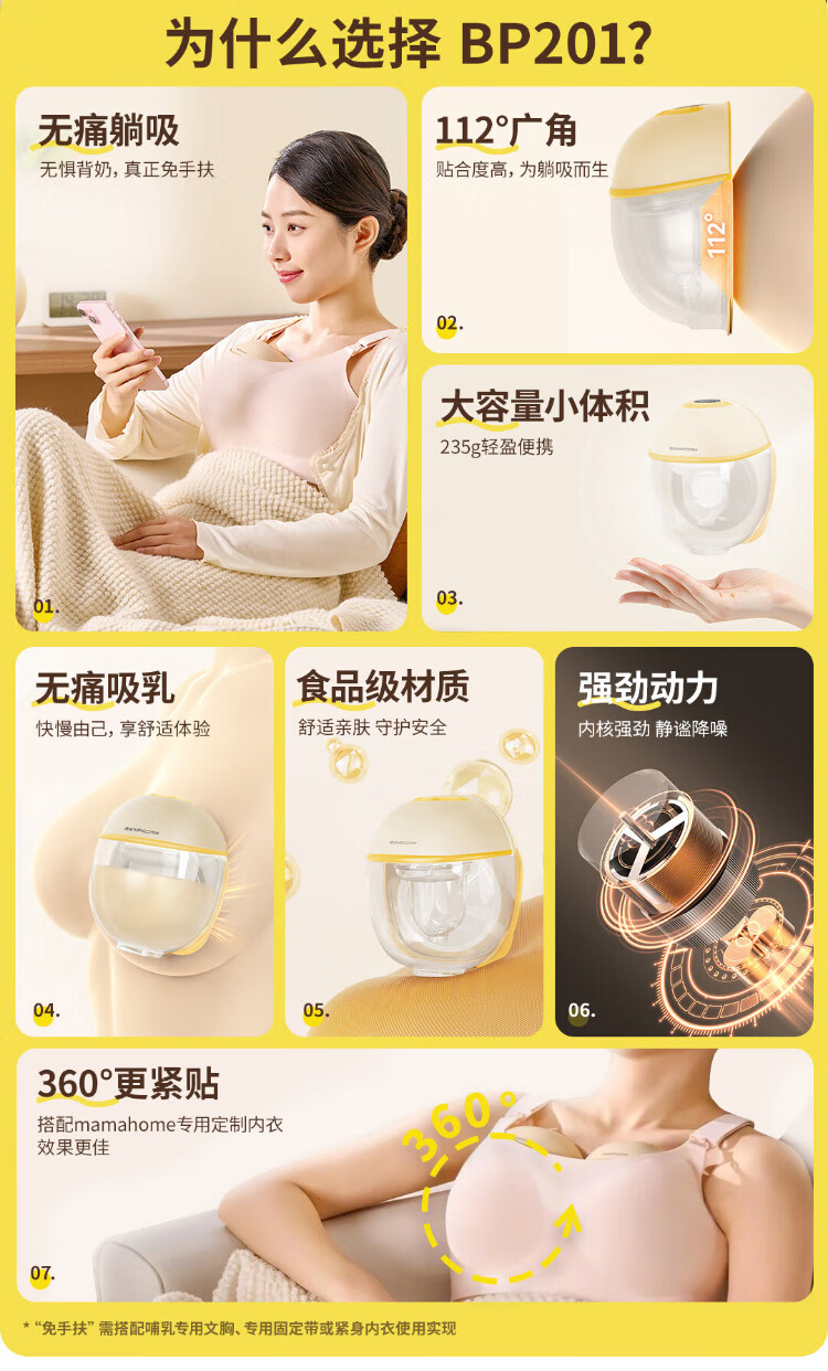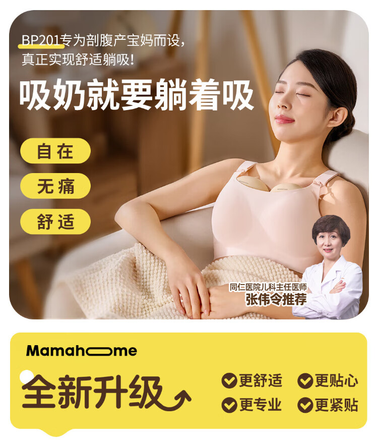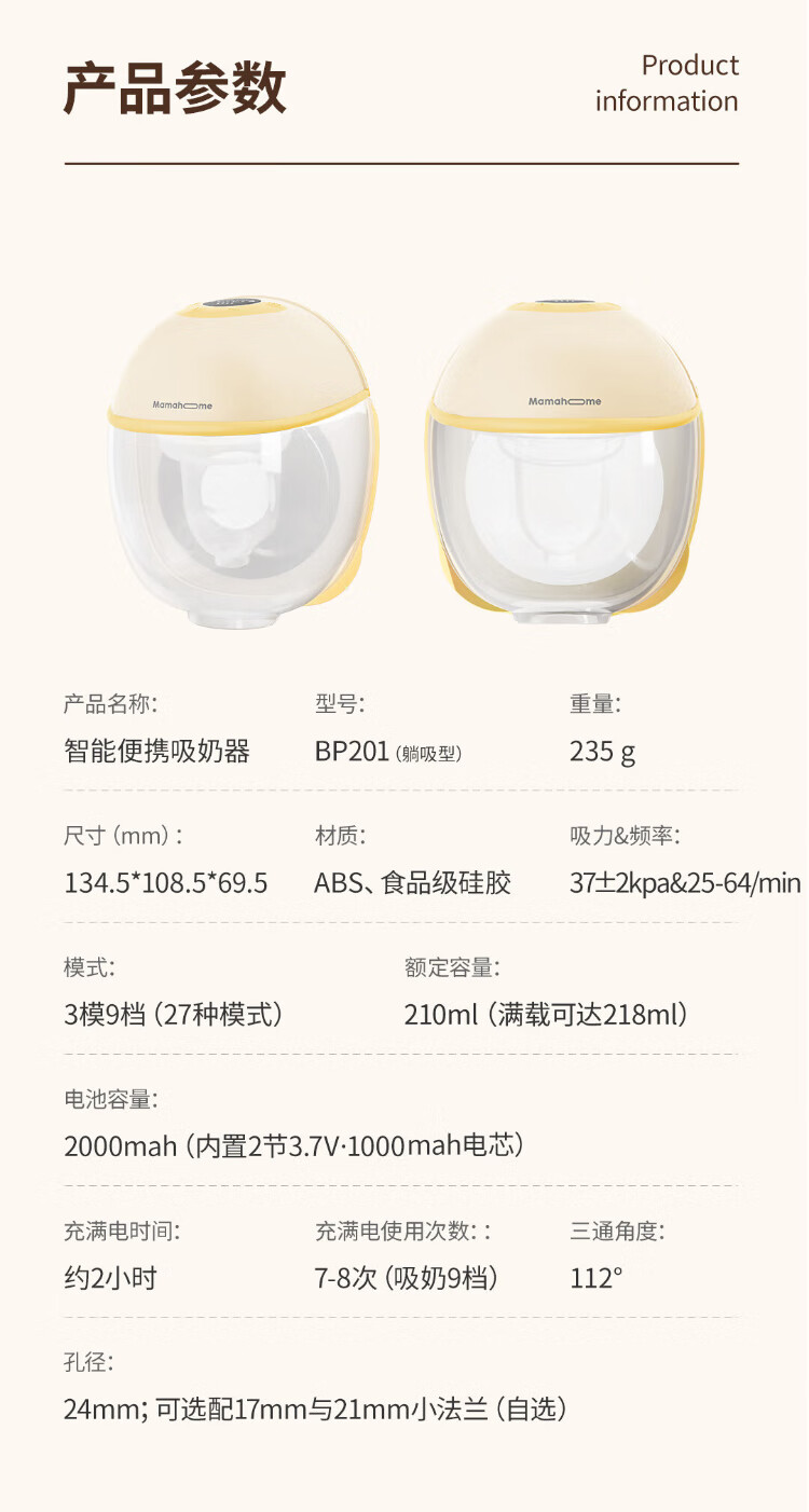 Mamahome breast pump is electric, painless, fully automatic, rechargeable, bilaterally reclining, hands-free and portable