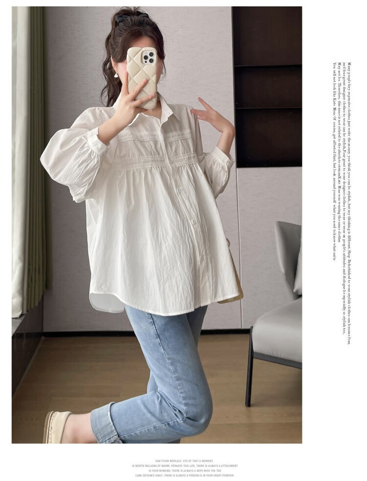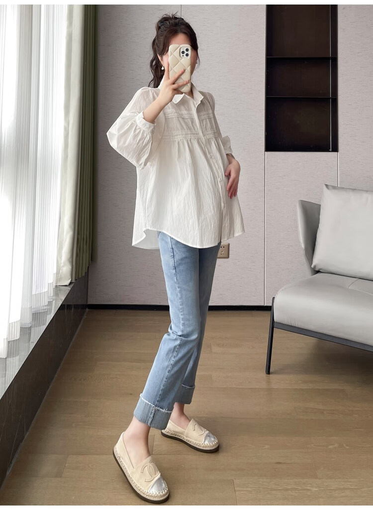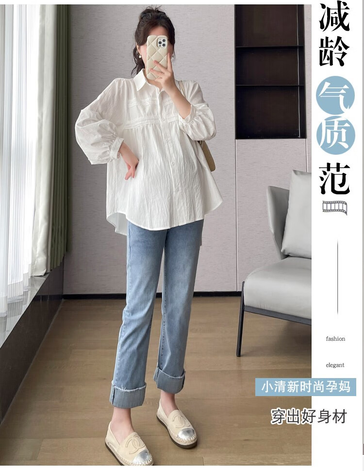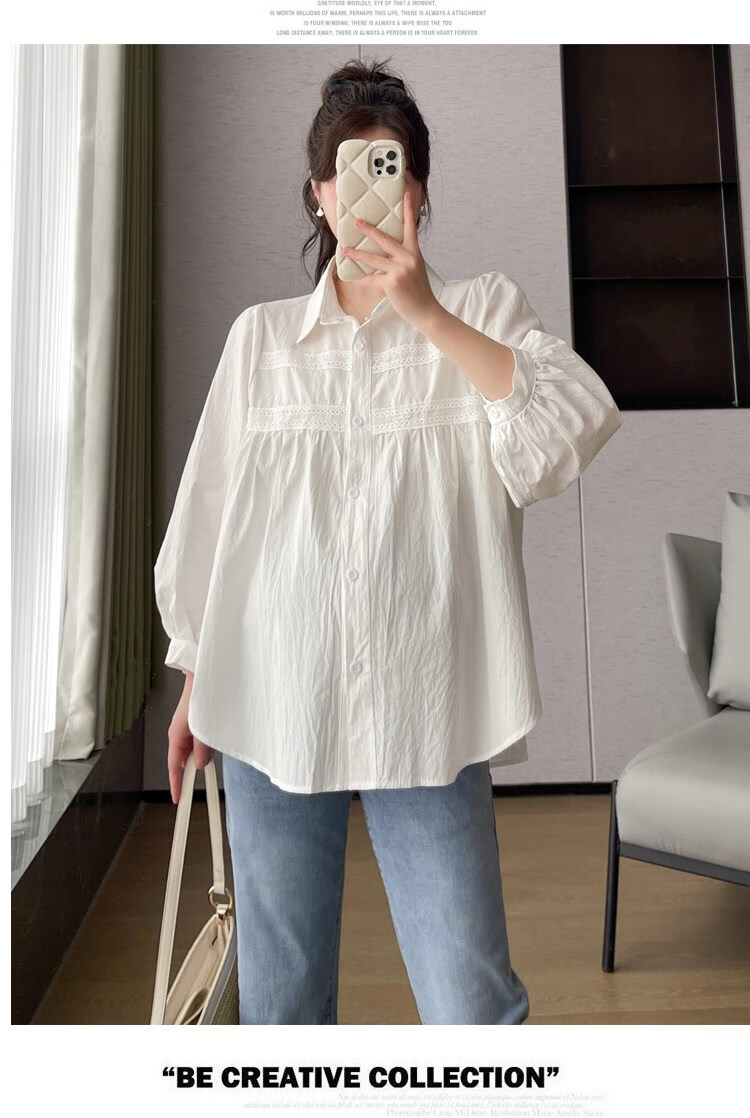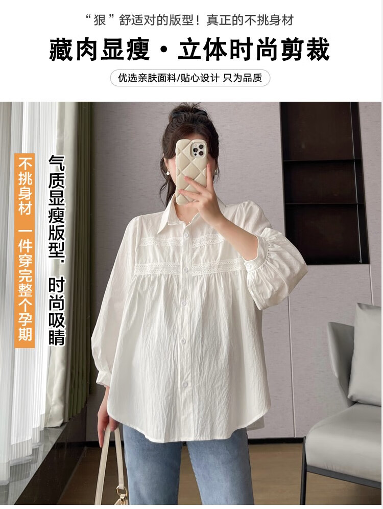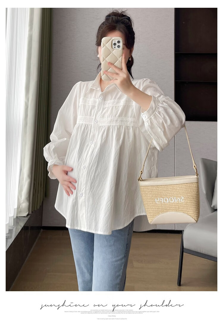 Geman Maternity Top Autumn Fashionable Cover Belly Not Showing Pregnancy Clothes Shirt Large Size Loose Autumn Clothing 2024 New Maternity Clothing White Top XL