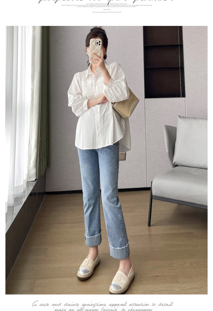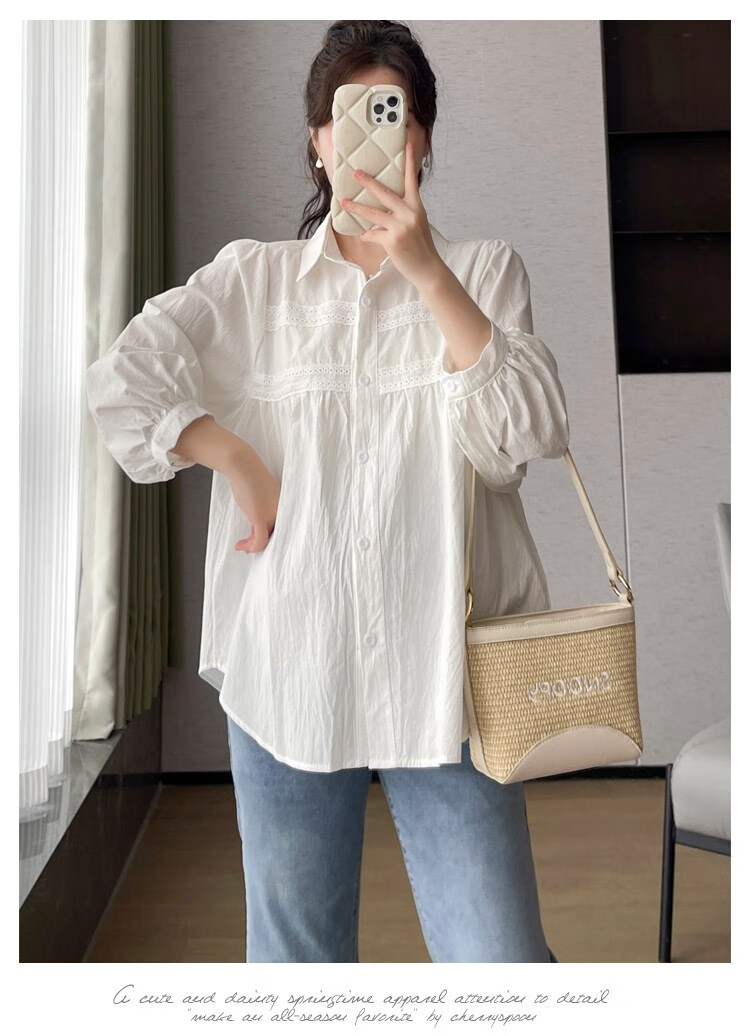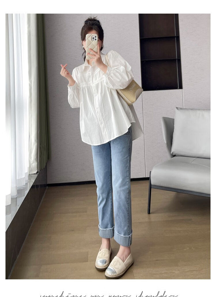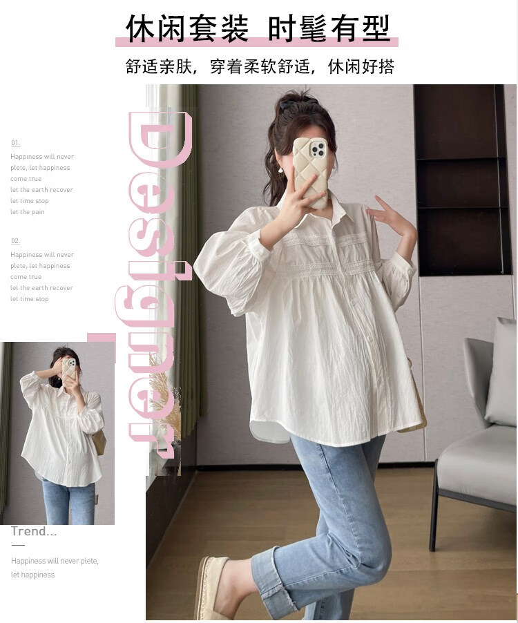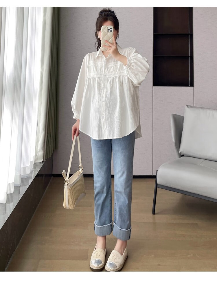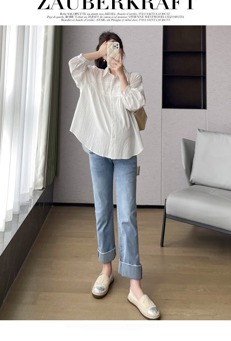 Geman Maternity Top Autumn Fashionable Cover Belly Not Showing Pregnancy Clothes Shirt Large Size Loose Autumn Clothing 2024 New Maternity Clothing White Top XL