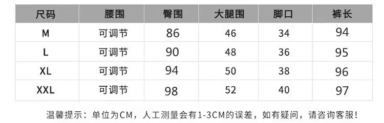 Outseam (cm) 99 cm 101.5 cm 104 cm 106.5 cm 109 cm