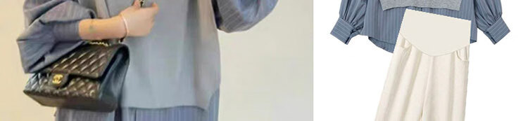 Geman Maternity Autumn Suit Fashionable 2024 Spring and Autumn Style Western-style Fake Two-piece Top Wide-leg Pants Autumn and Winter Outer Wear Two-piece Set Fake Two-piece Shirt + Velvet Apricot Belly Supporting Pants M