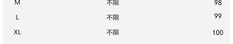 China (cm) 160-165/84-86 165-170 / 88-90 167-172 / 92-96 168-173 / 98-102 170-176 / 106-110