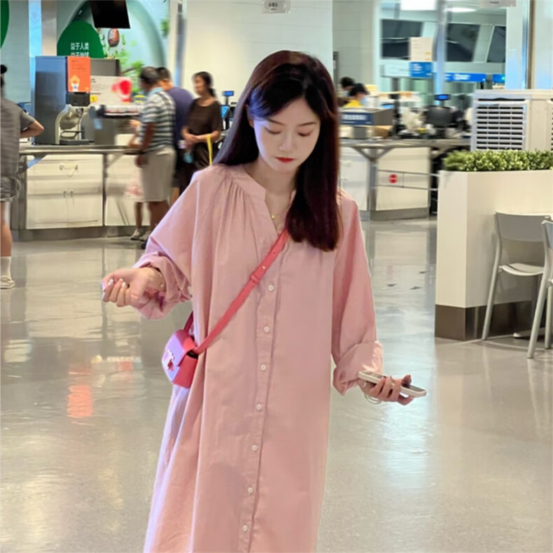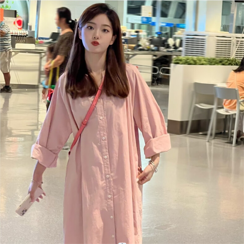 Langyin Maternity Spring Dress 2025 New Maternity Wear Internet Celebrity Loose Fashionable Spring and Autumn Suit Shirt Two-piece Set Pink Shirt Skirt + Dark Gray Leggings M