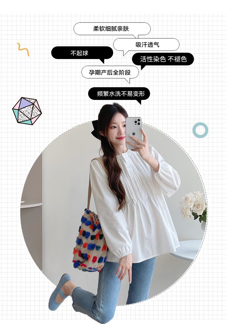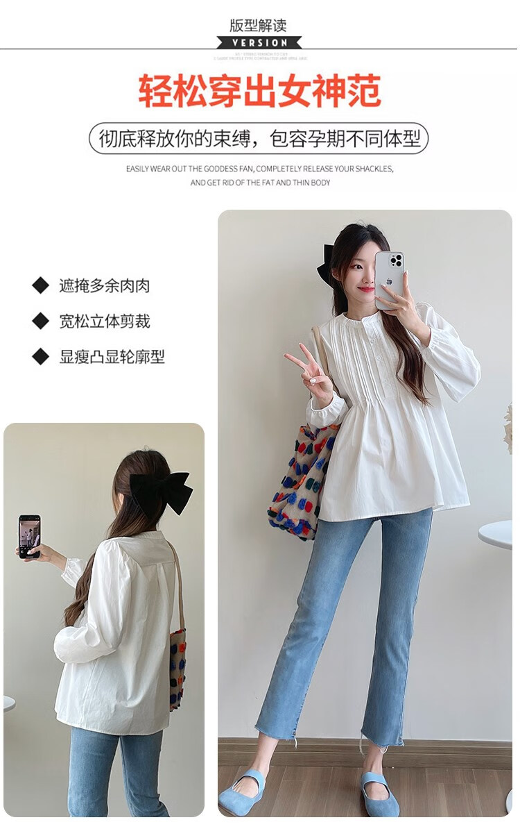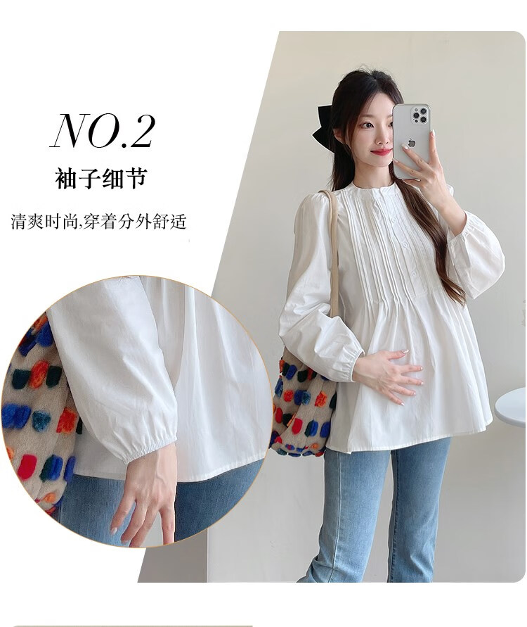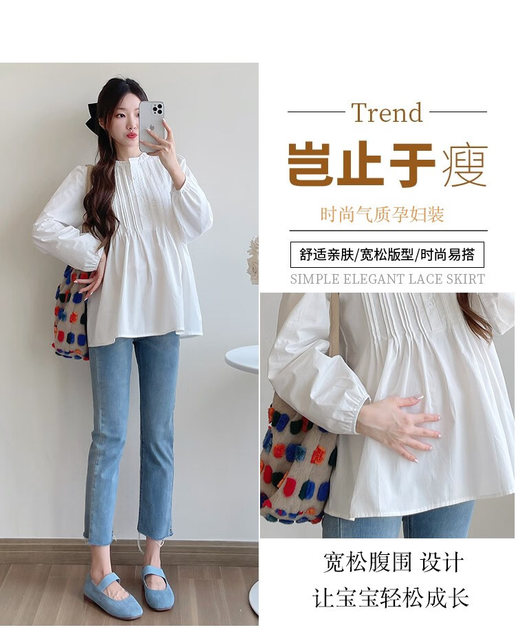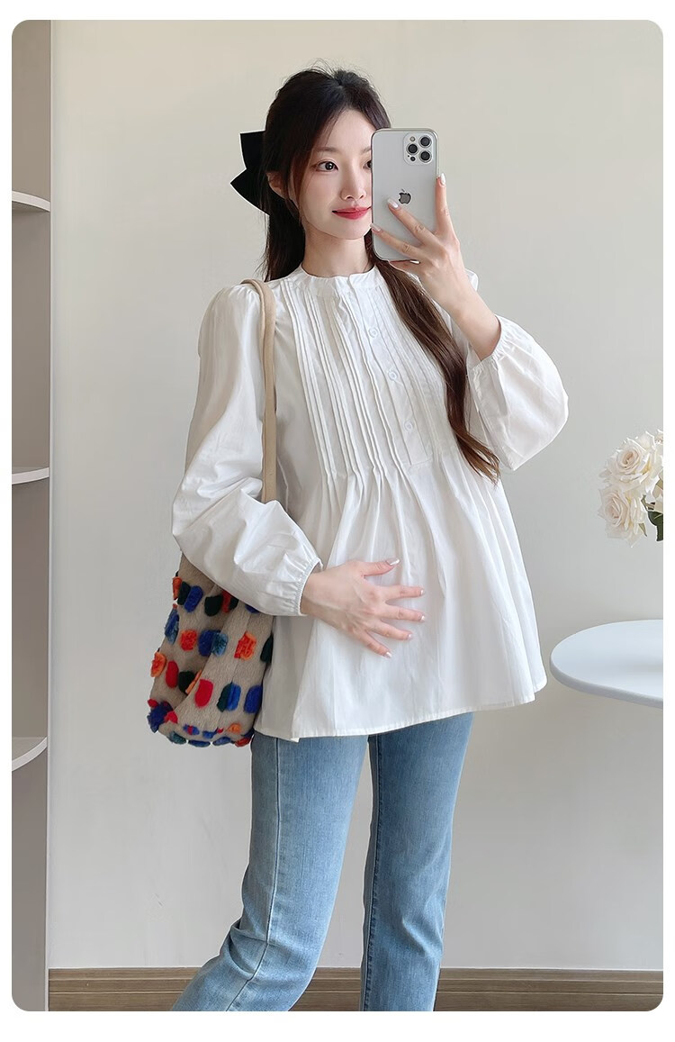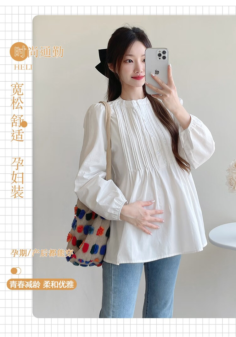 Geman Maternity Wear 2025 Spring and Autumn New Baby Baby Shirt Small Fresh Loose Slim Fashion Versatile Maternity Age Reduction Shirt Women White Top M