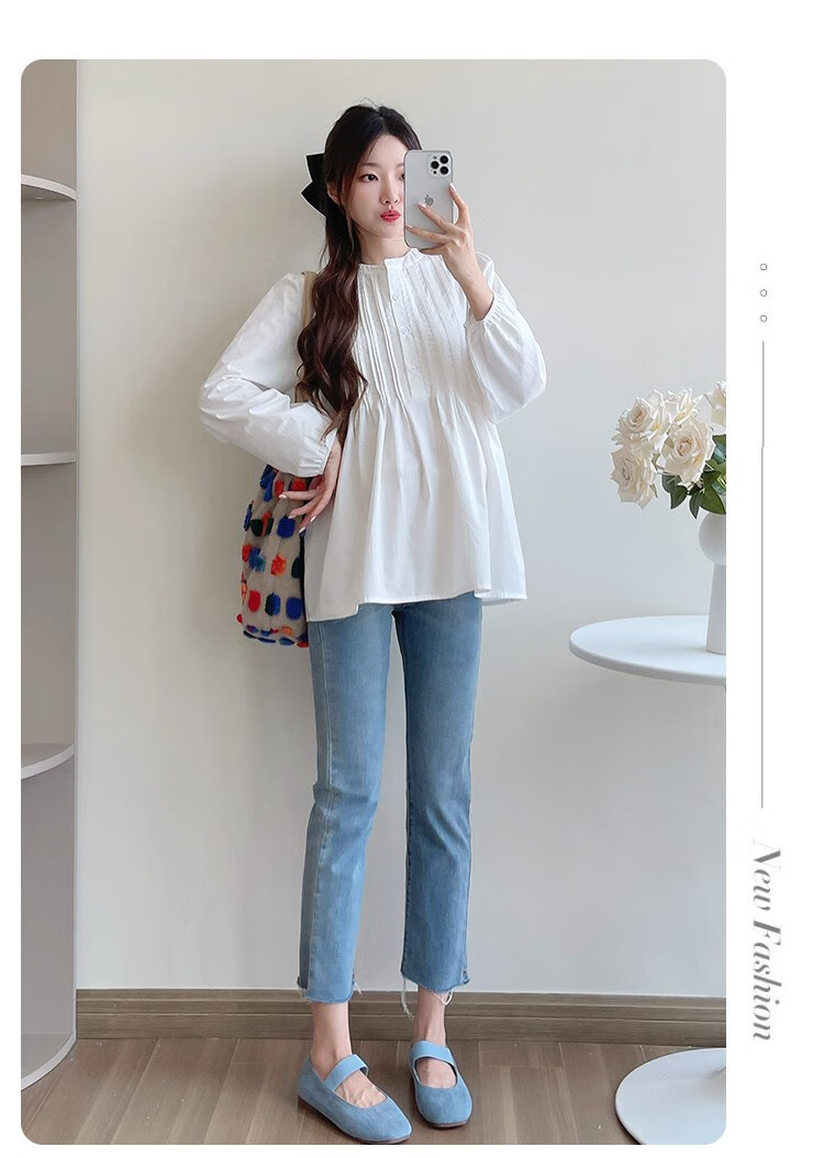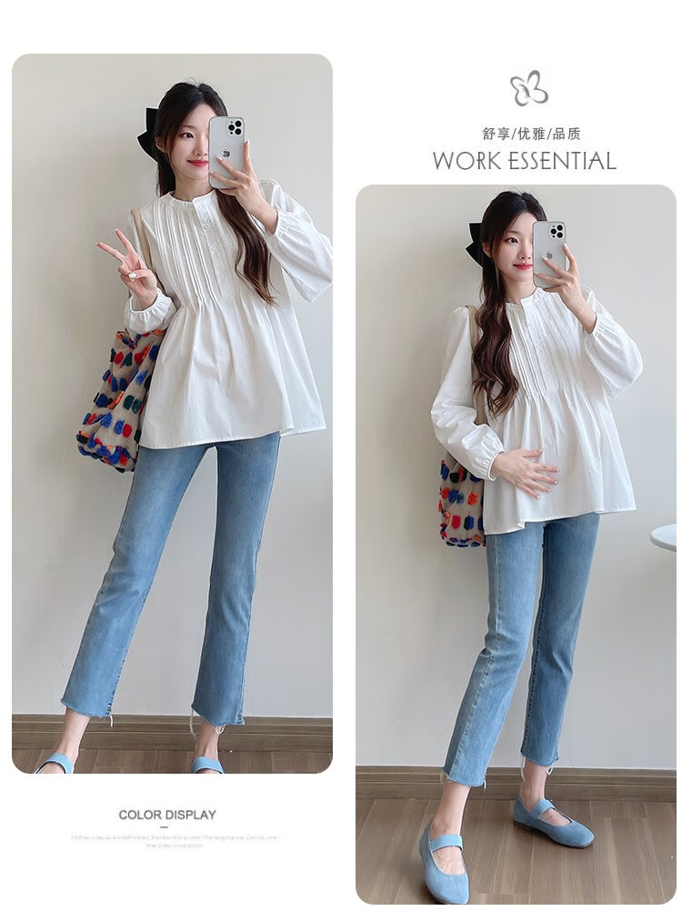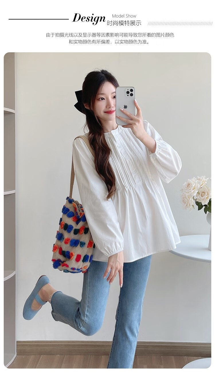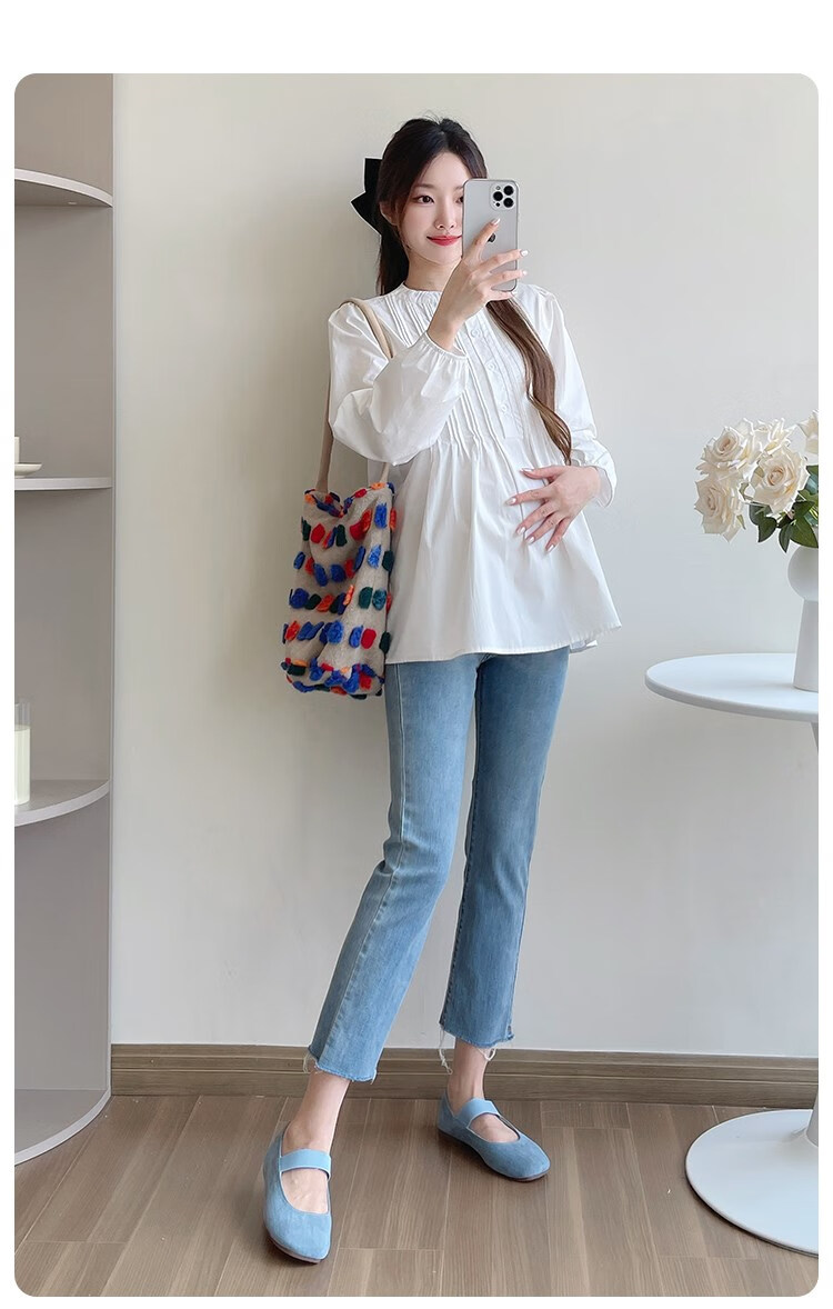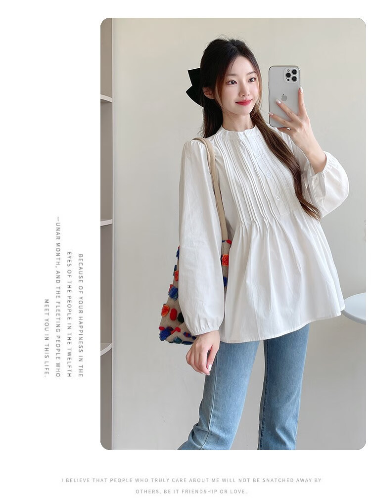 Geman Maternity Wear 2025 Spring and Autumn New Baby Baby Shirt Small Fresh Loose Slim Fashion Versatile Maternity Age Reduction Shirt Women White Top M