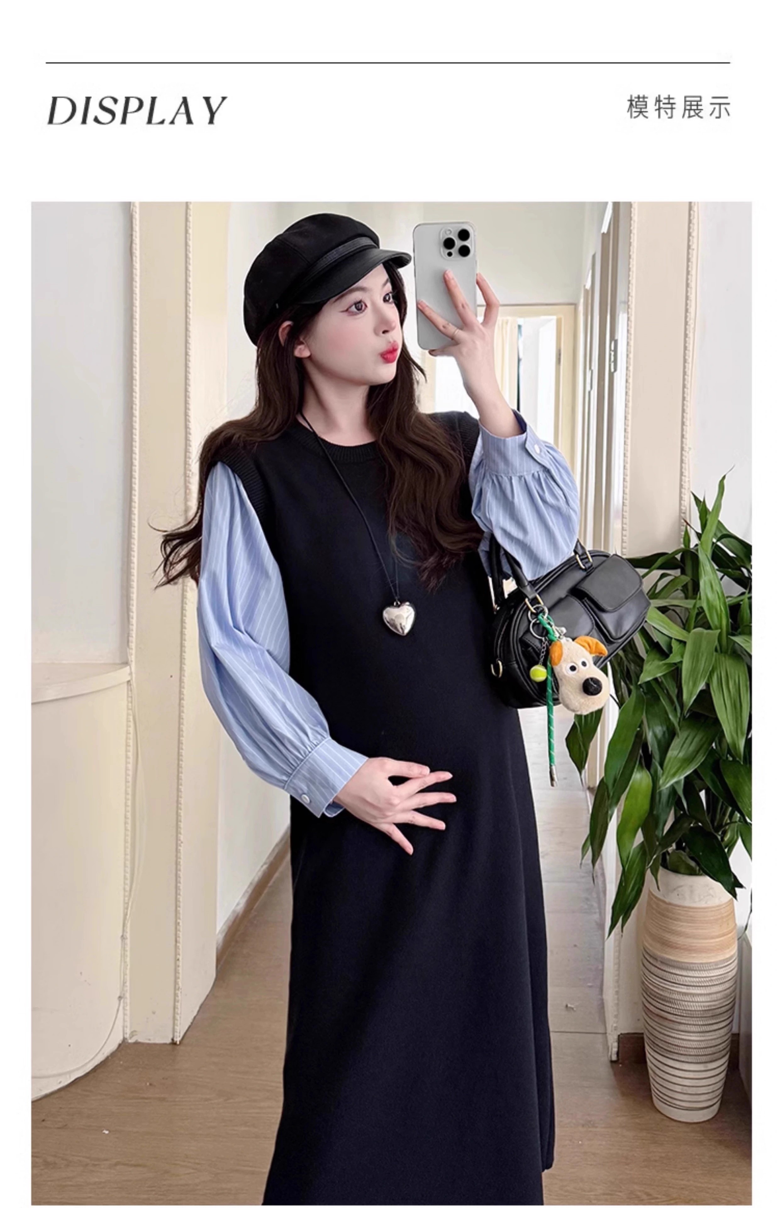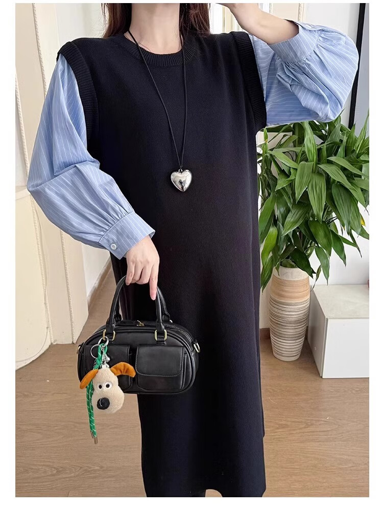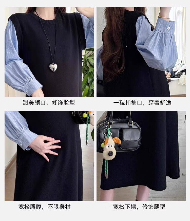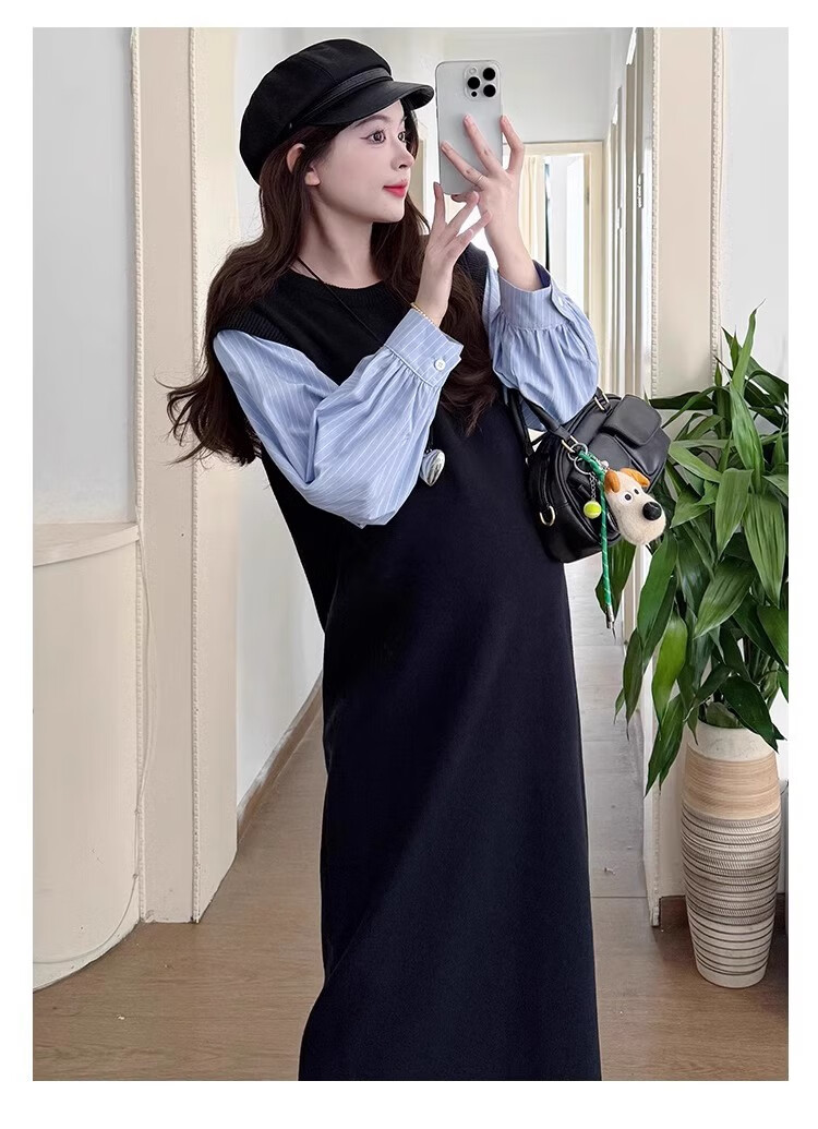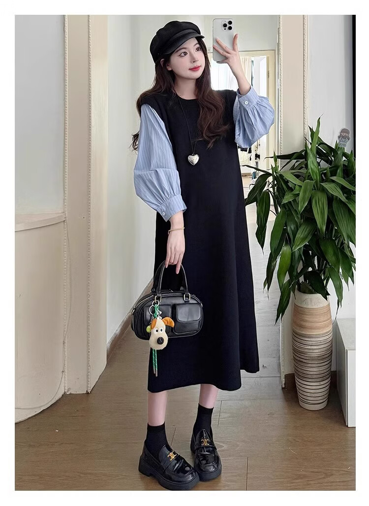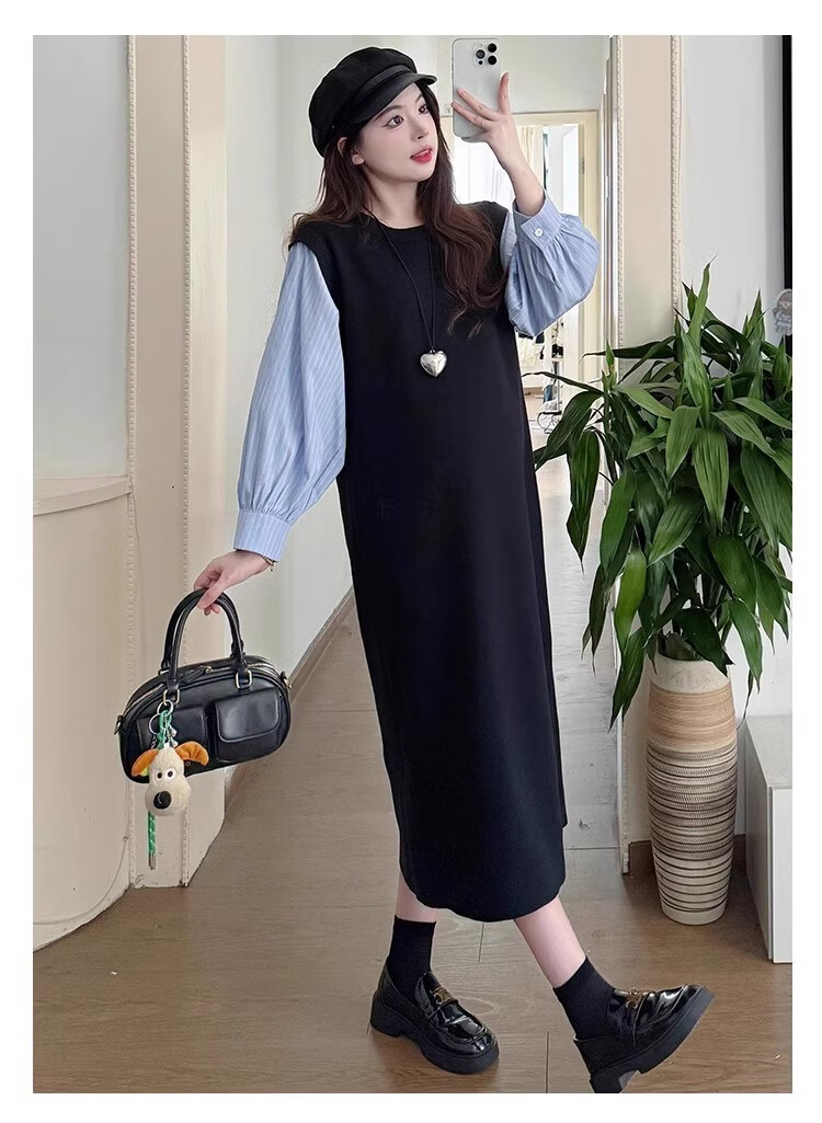 Geman Maternity Dress Spring and Autumn 2025 New Fashion Fake Two-Piece Loose Shirt Spliced Long Skirt Autumn Maternity Skirt Picture Color Dress + Skin Color Tights XL