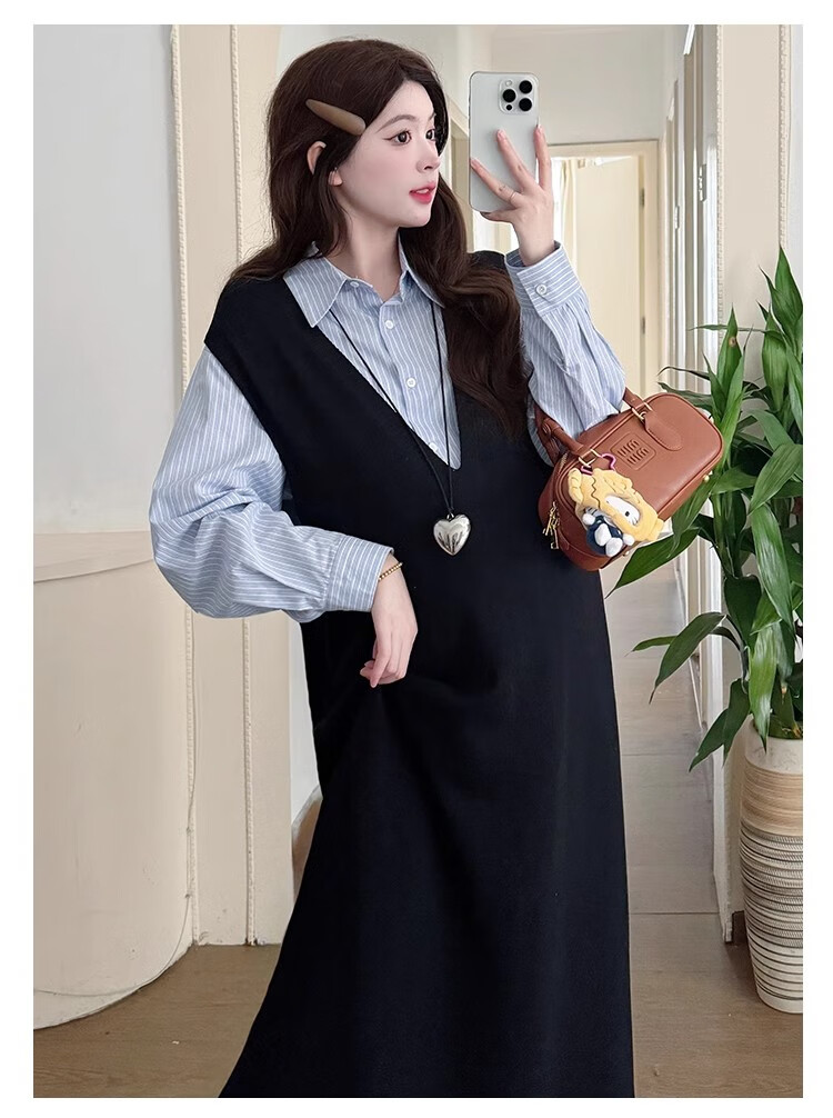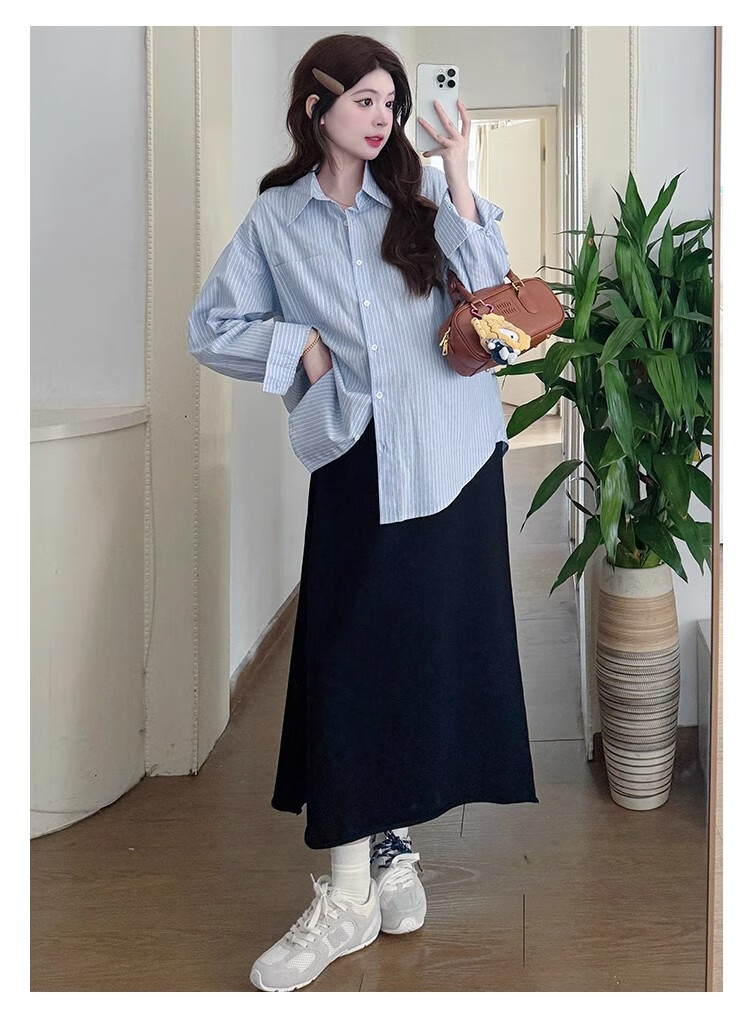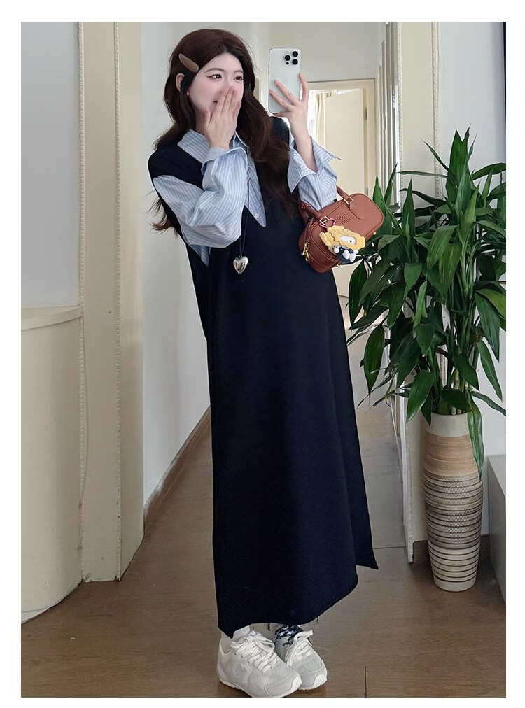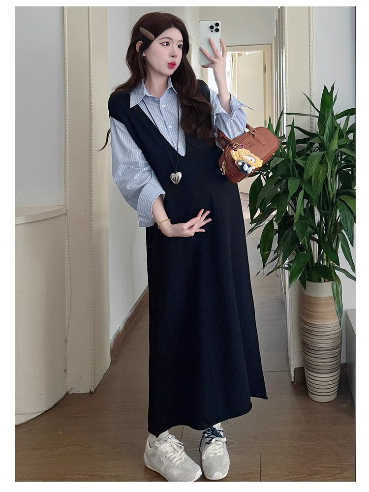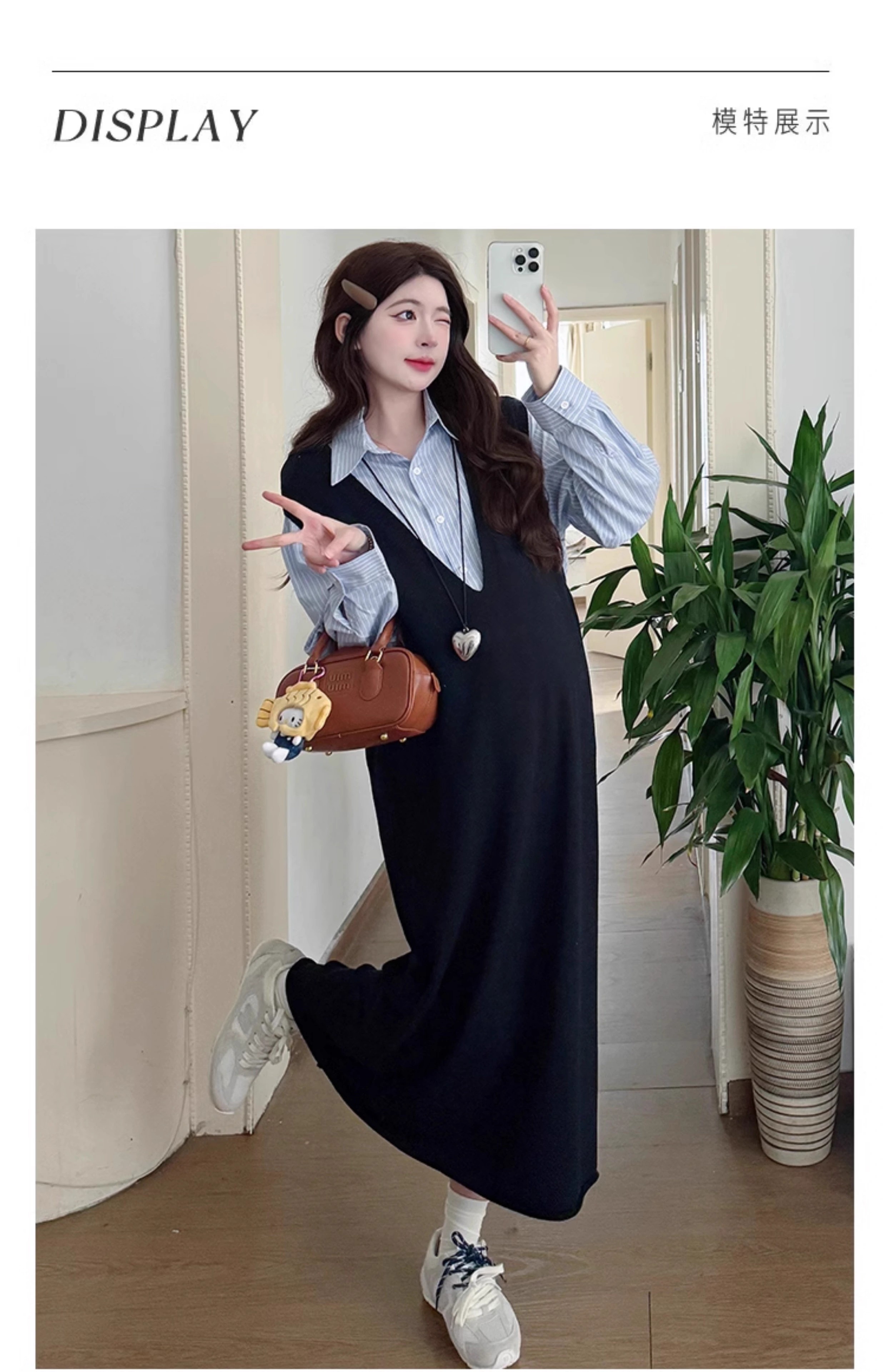 Geman maternity wear autumn 2025 maternity dress suit commuter skirt spring and autumn fashionable fashionable shirt top blue shirt + dress XL