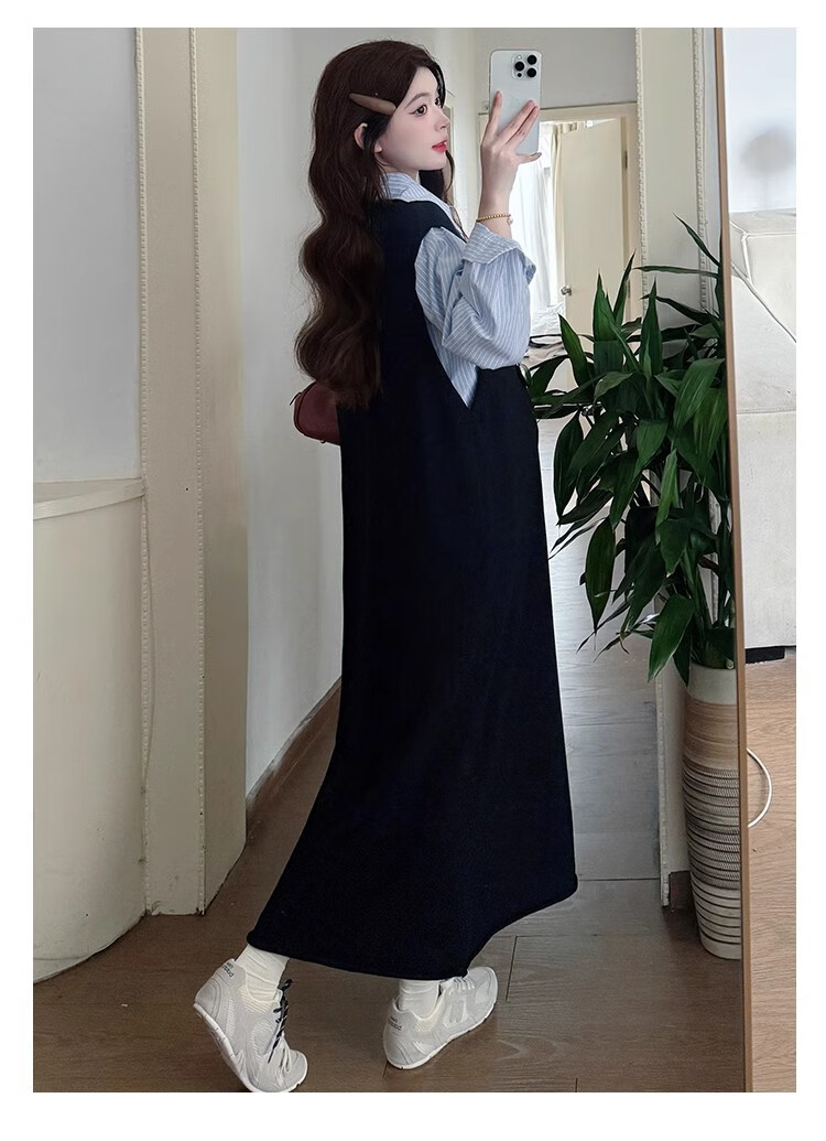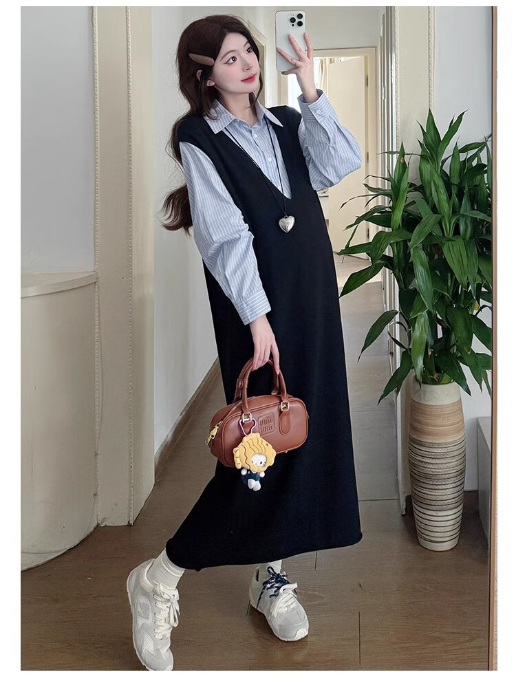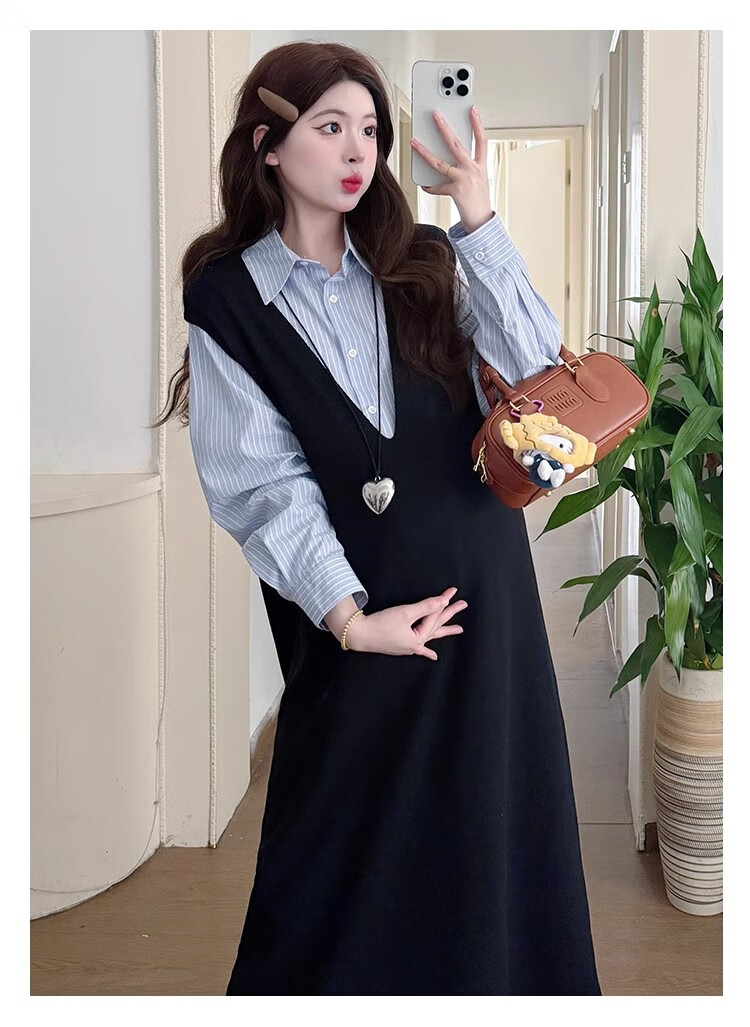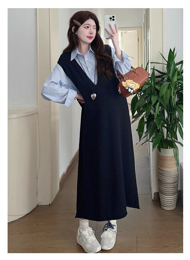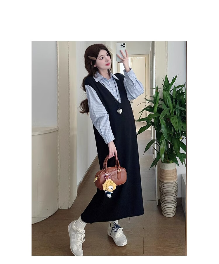 Geman maternity wear autumn 2025 maternity dress suit commuter skirt spring and autumn fashionable fashionable shirt top blue shirt + dress XL