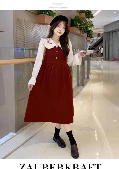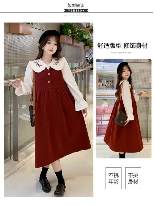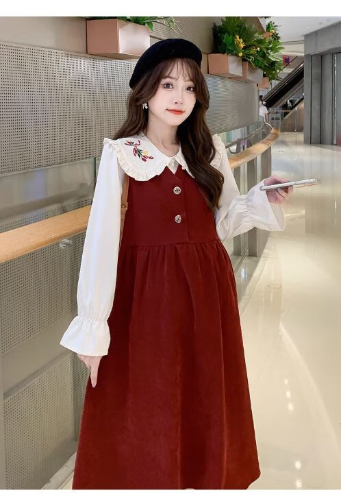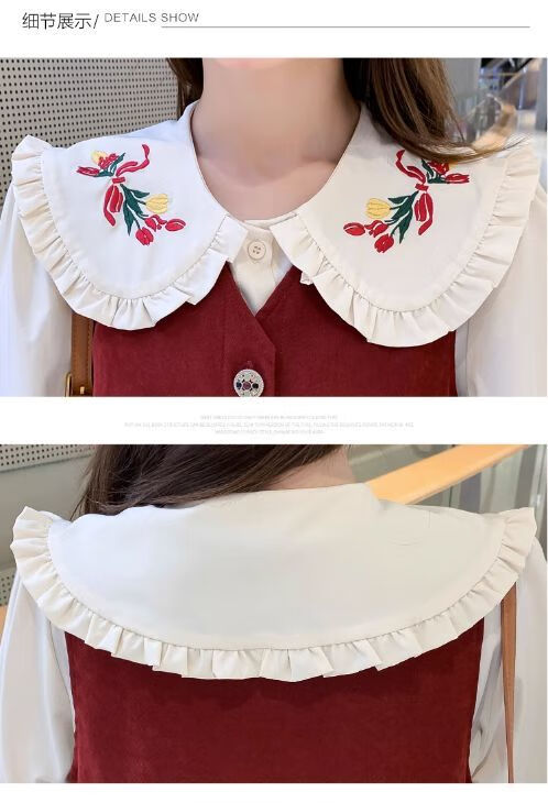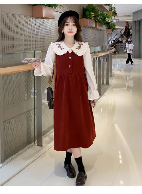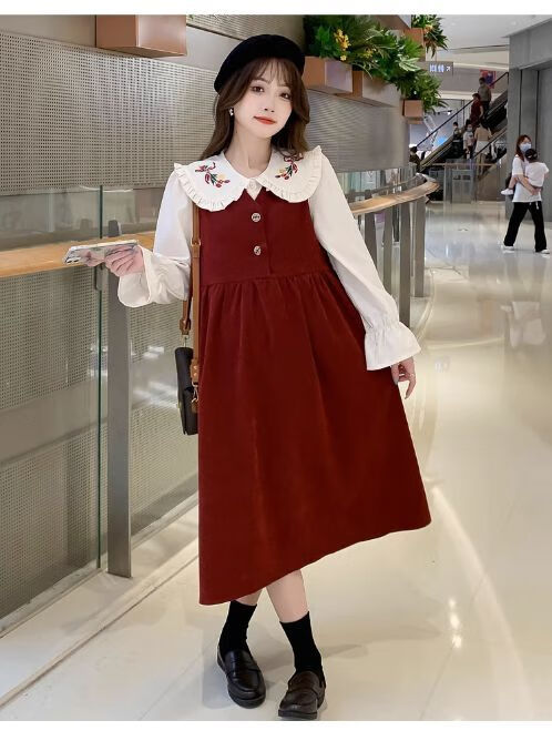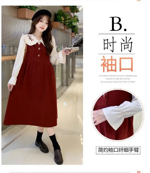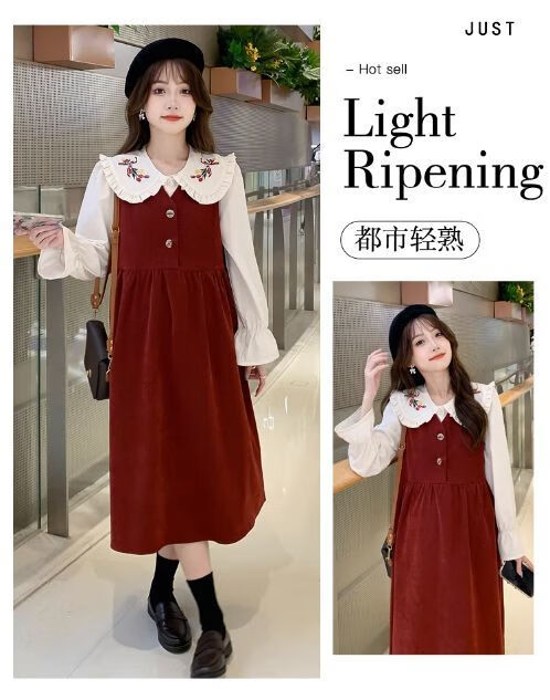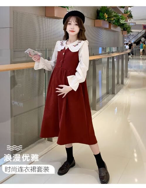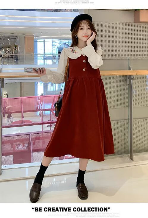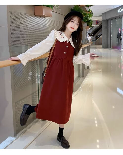 Maternity dress spring and autumn new design sense maternity wear loose doll collar shirt + vest sweet age-reducing trend red two-piece set L
