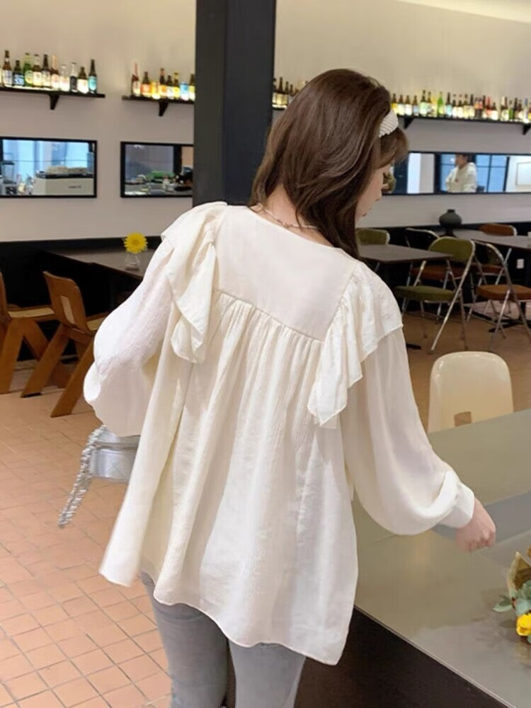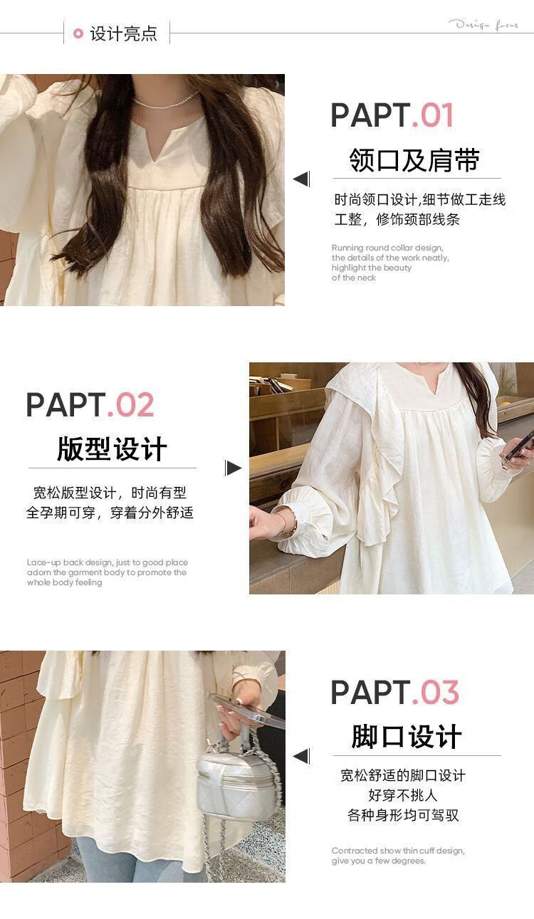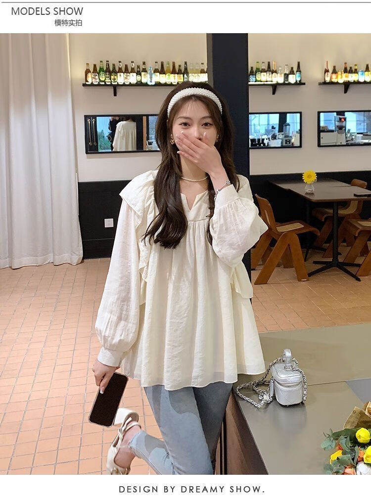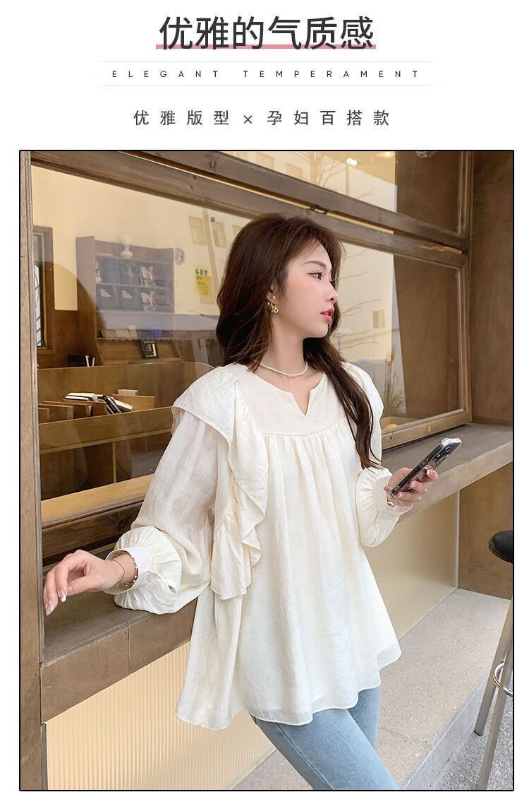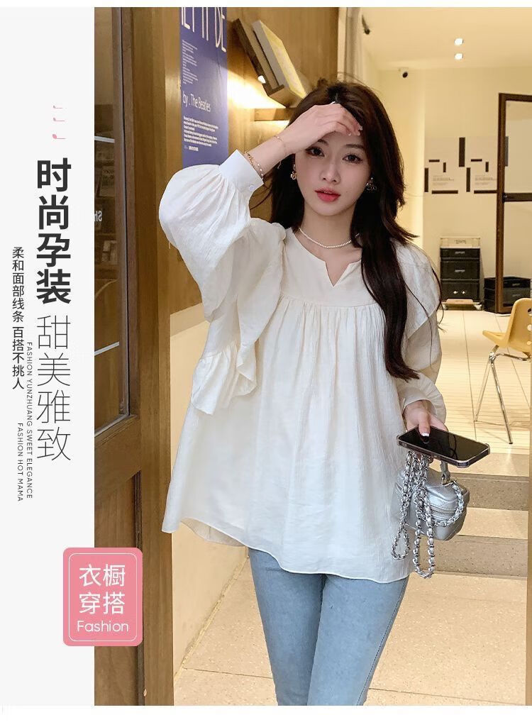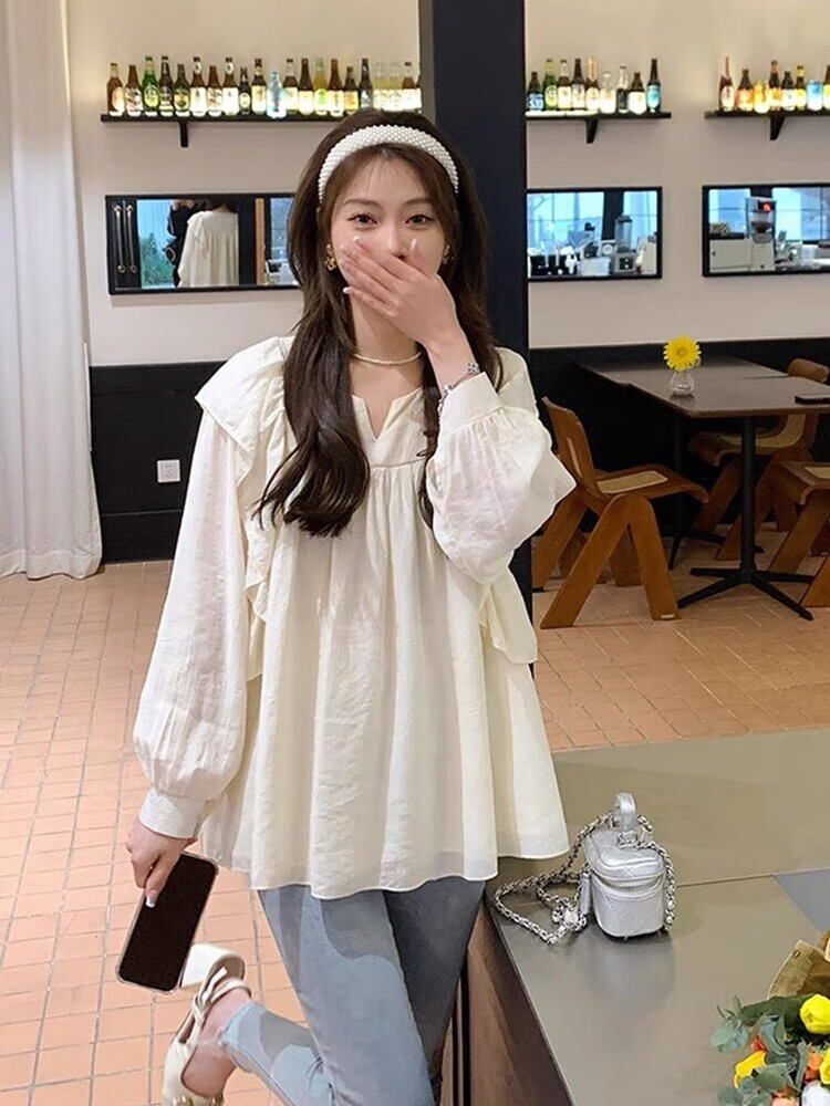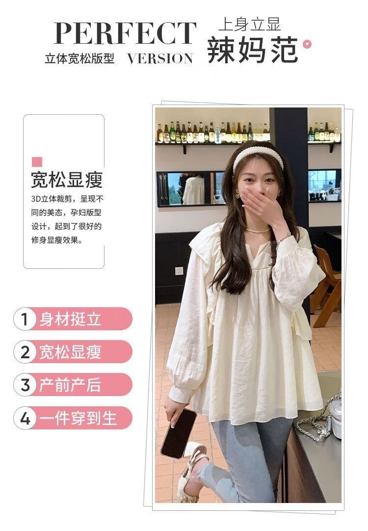 Spring and Autumn Maternity Clothes New Small Sweet Shirt Tops Fashionable Outing Casual Mom Doll Shirt Two-piece Set Apricot Single Top L 105-125Jin Jin is equal to 0.5 kg