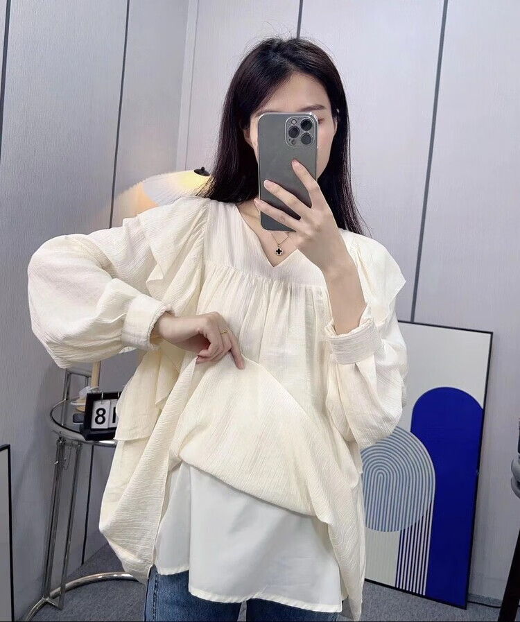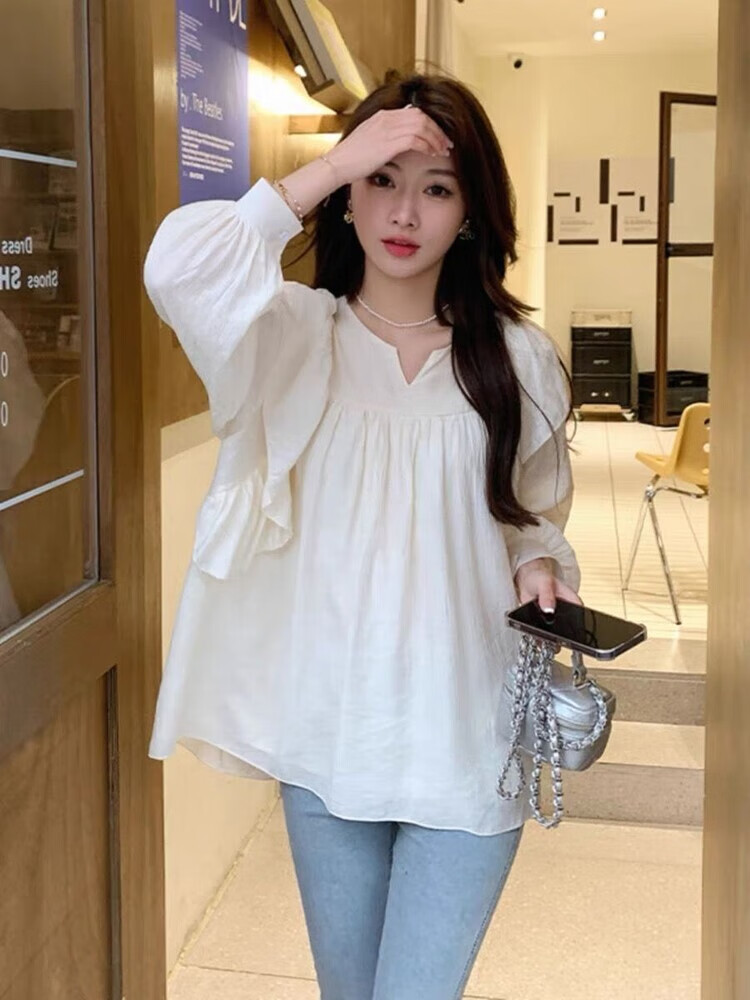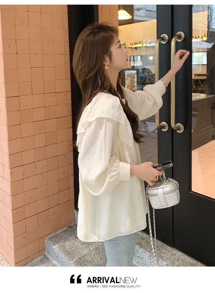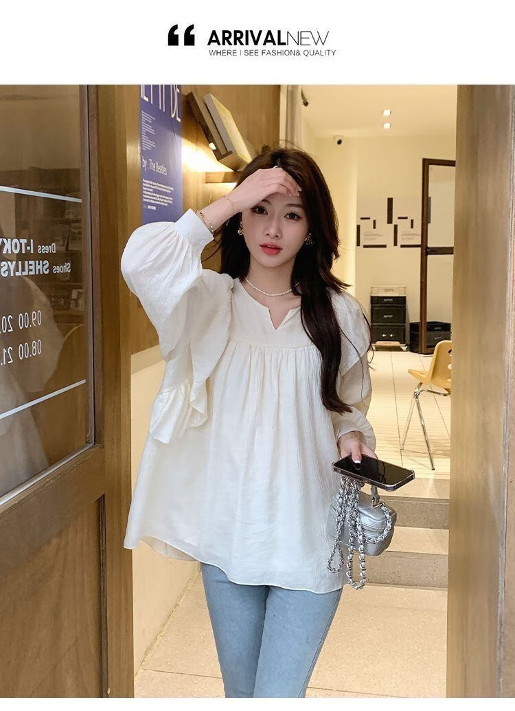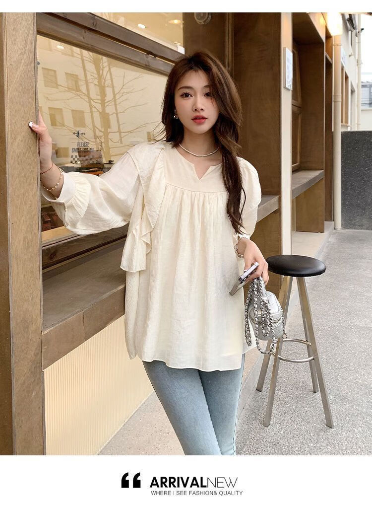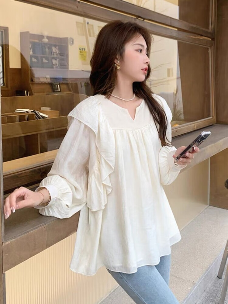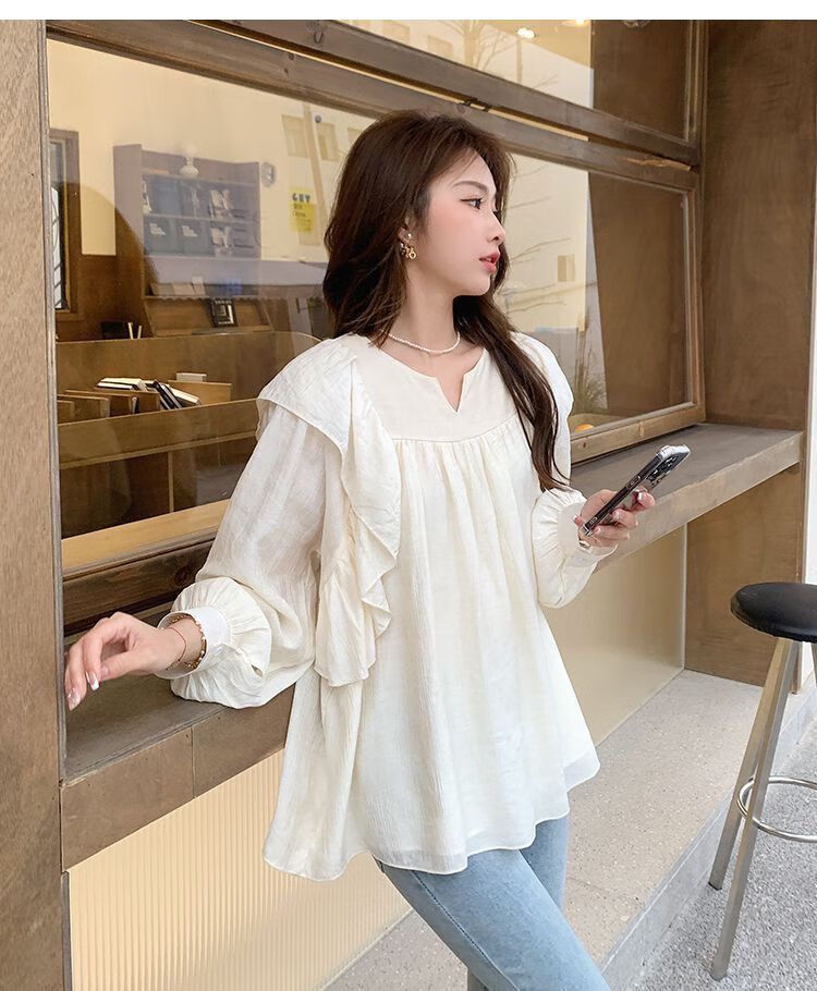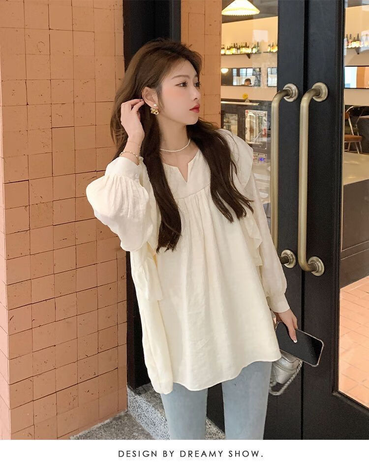 Spring and Autumn Maternity Clothes New Small Sweet Shirt Tops Fashionable Outing Casual Mom Doll Shirt Two-piece Set Apricot Single Top L 105-125Jin Jin is equal to 0.5 kg