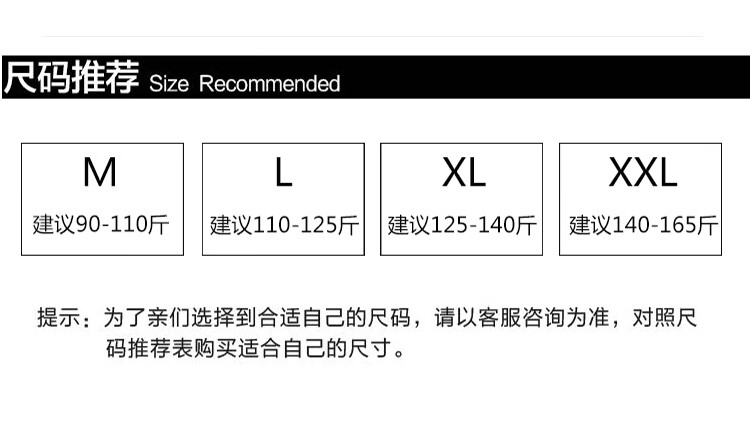 China (cm) 165 / 88-90 170 / 96-98 175 / 108-110 180 / 118-122 185 / 126-130