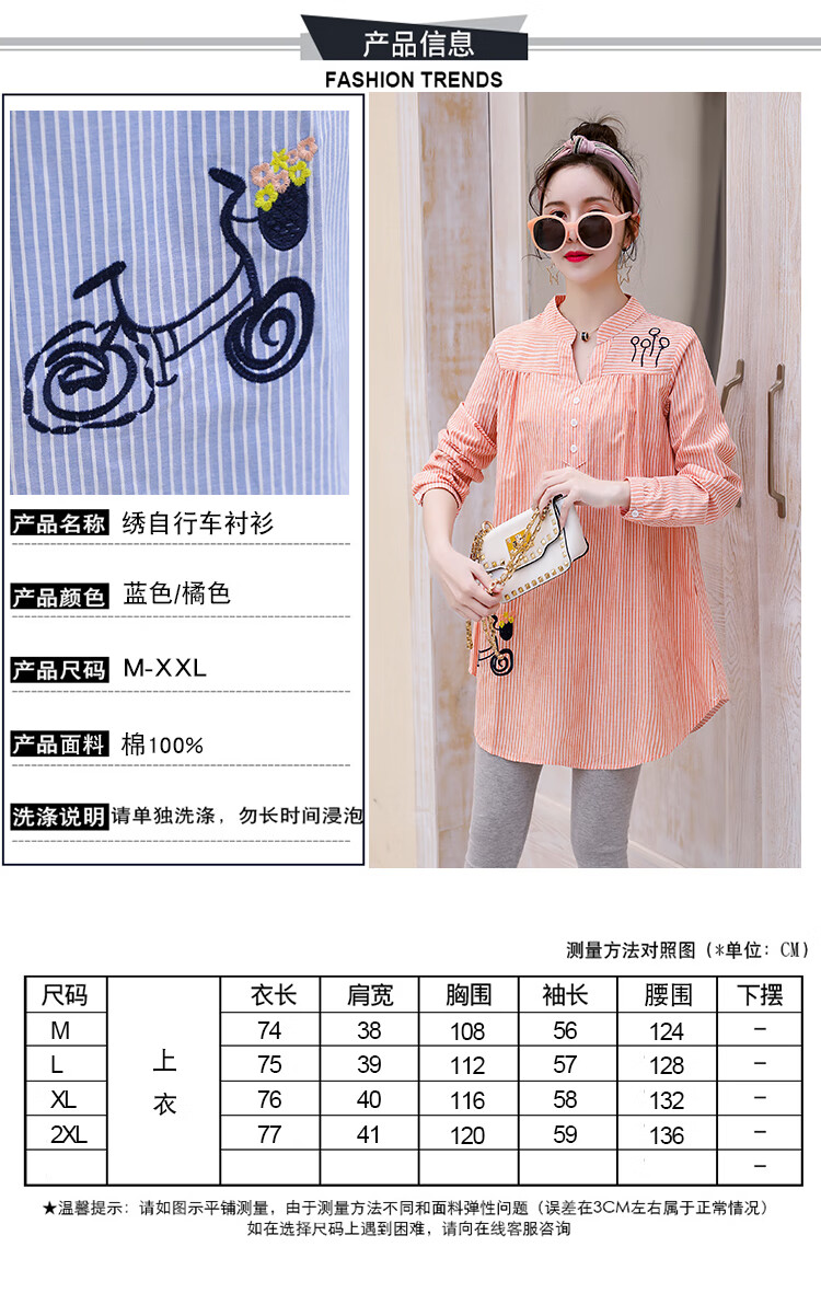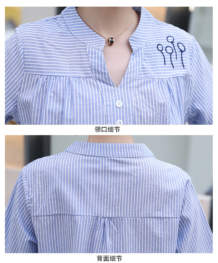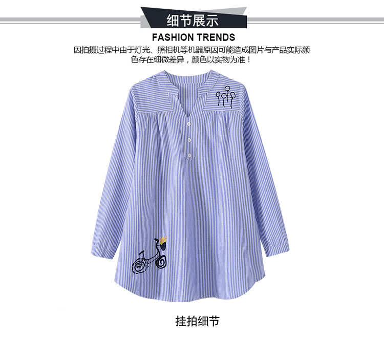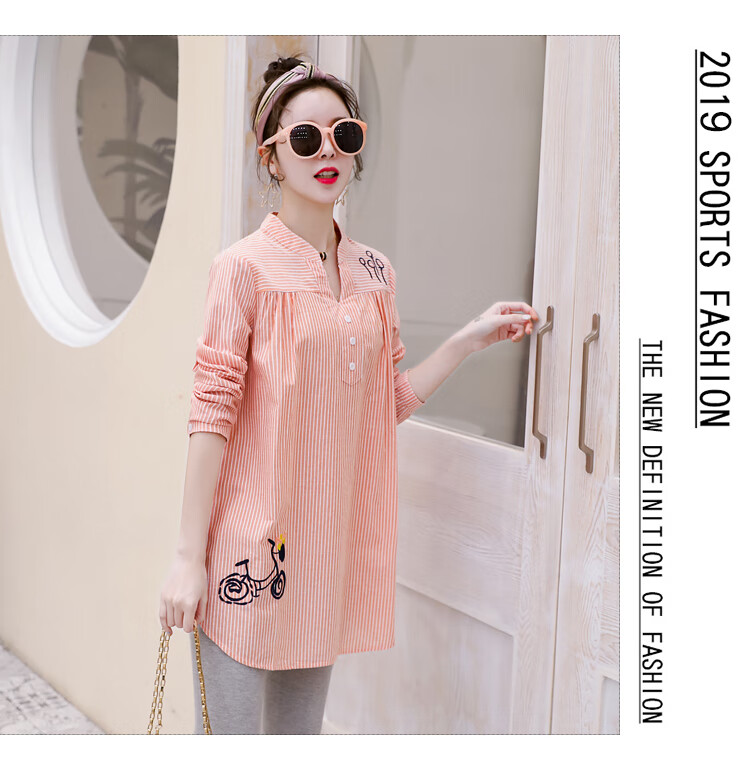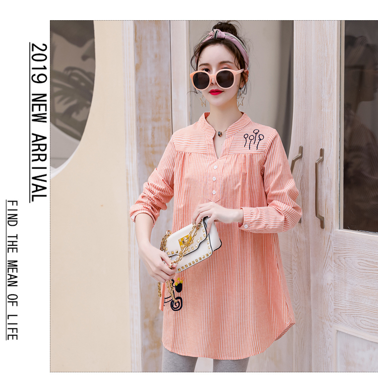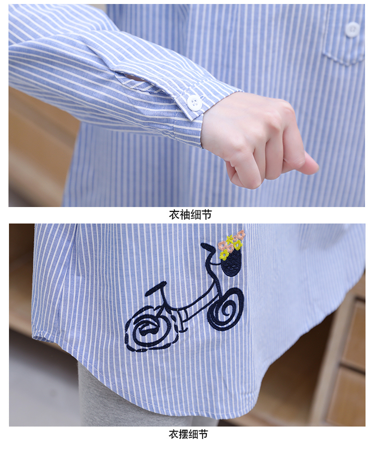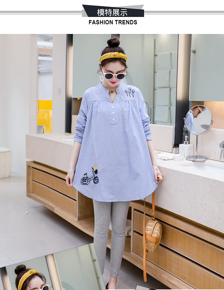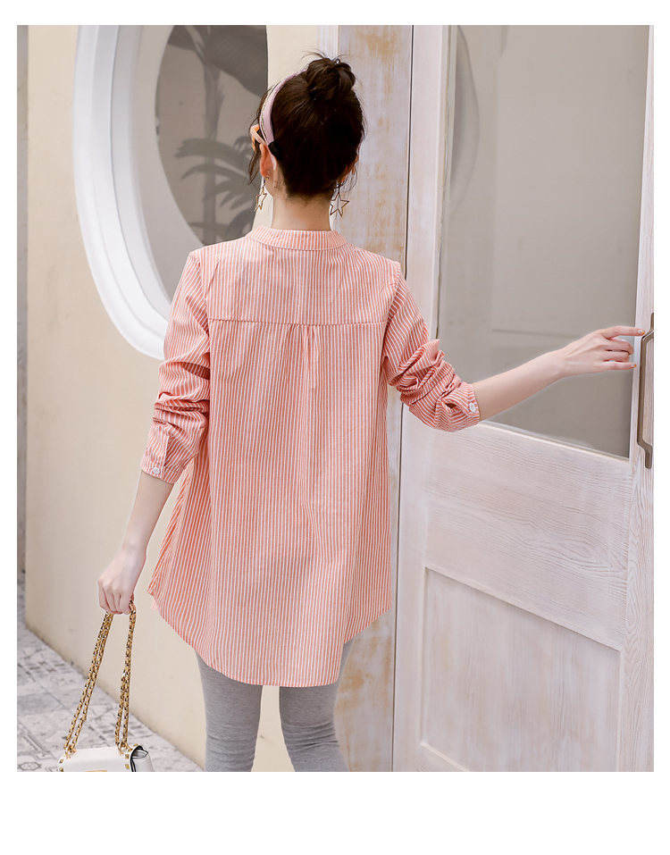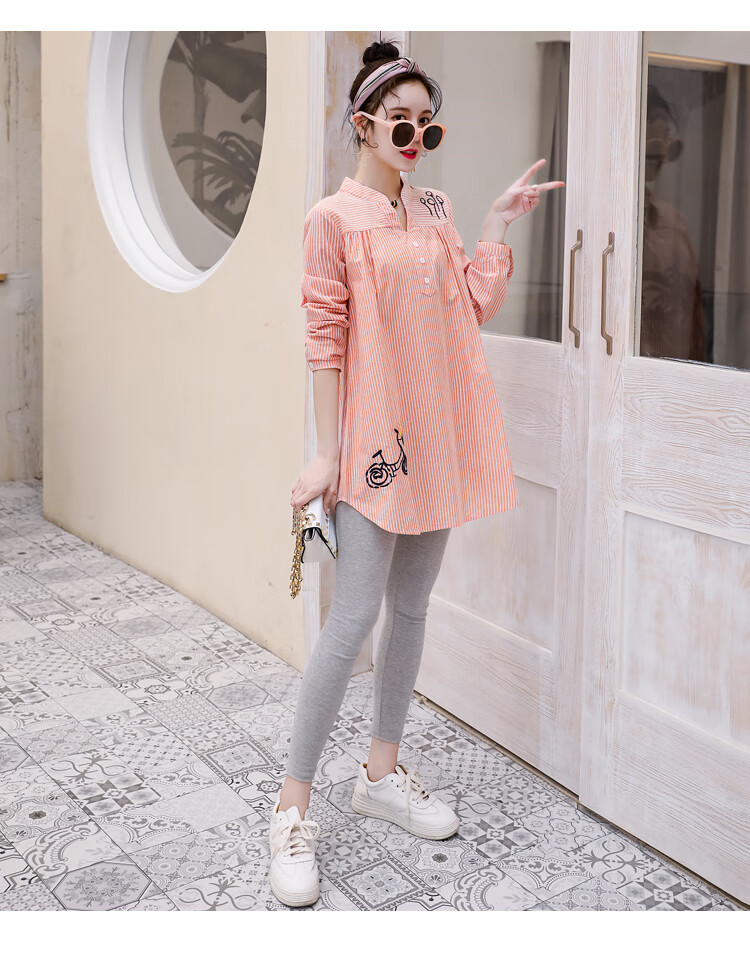 Maternity wear, spring and autumn shirts, long-sleeved shirts, mid-length autumn maternity wear, pure cotton two-piece striped tops for women, blue tops, long sleeves, L recommended 120-140 Jin Jin equals 0.5 kg