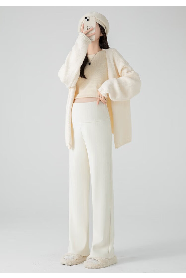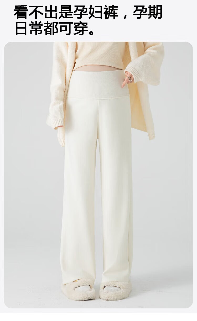 JOYNCLEON Maternity Pants Spring and Autumn Outerwear Pants Pregnancy Wide Leg Pants Non-Stretching Maternity Wear Off-White XL Jyk177969