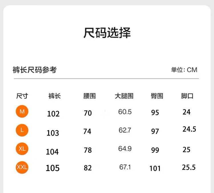 Outseam (cm) 99 cm 101.5 cm 104 cm 106.5 cm 109 cm