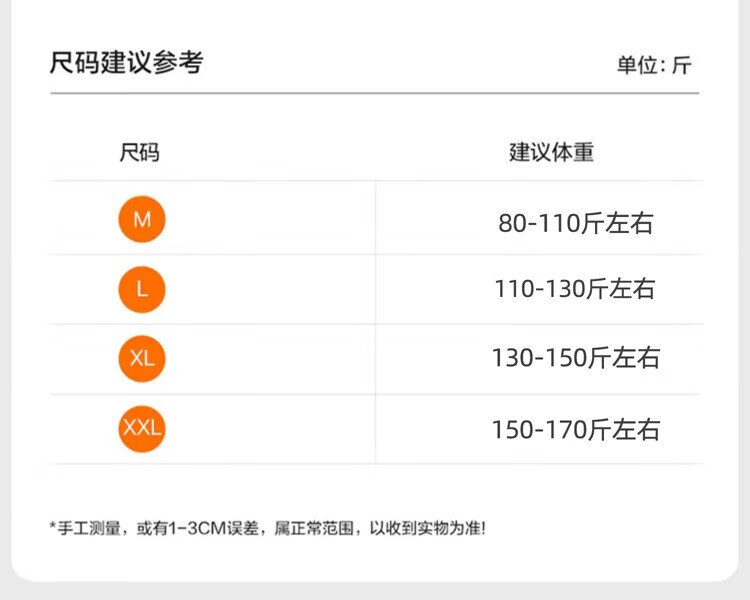 China (cm) 165 / 88-90 170 / 96-98 175 / 108-110 180 / 118-122 185 / 126-130
