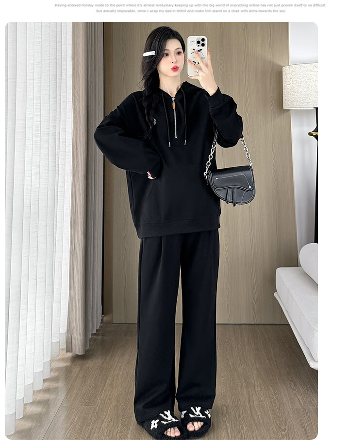 Ran Qiqi maternity wear autumn suit top long-sleeved loose hooded zipper sweatshirt pants two-piece set 2025 new autumn clothing apricot suit L