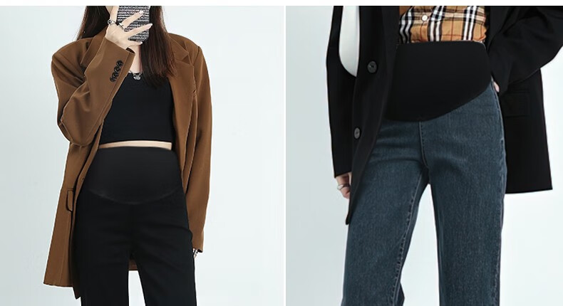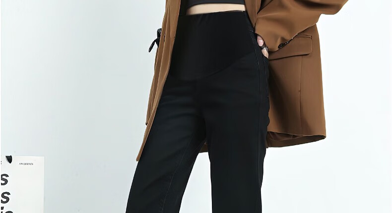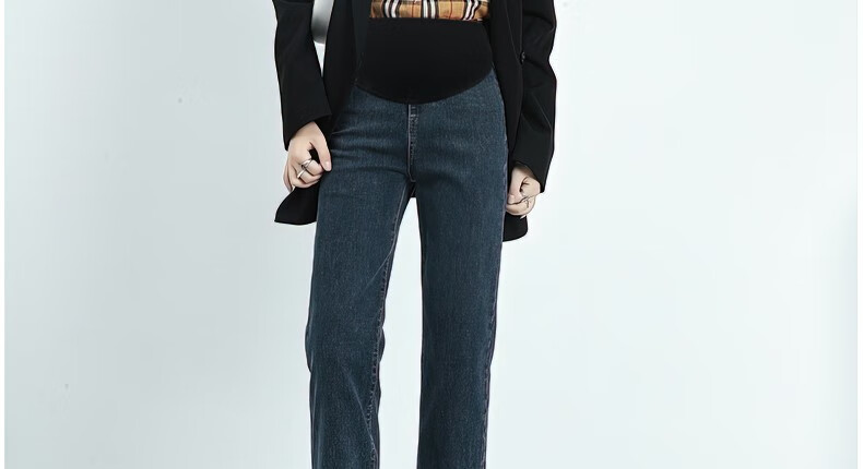 Nanding Yage Maternity Pants Autumn and Winter Outerwear New Straight Leg Pants Nine-Point Jeans Plus Velvet Stretch Cigarette Pants Autumn and Winter Clothes Black L110-125Jin Jin is equal to 0.5 kg