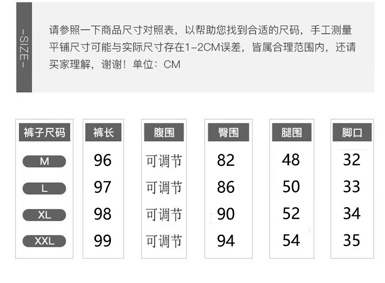 Outseam (cm) 99 cm 101.5 cm 104 cm 106.5 cm 109 cm