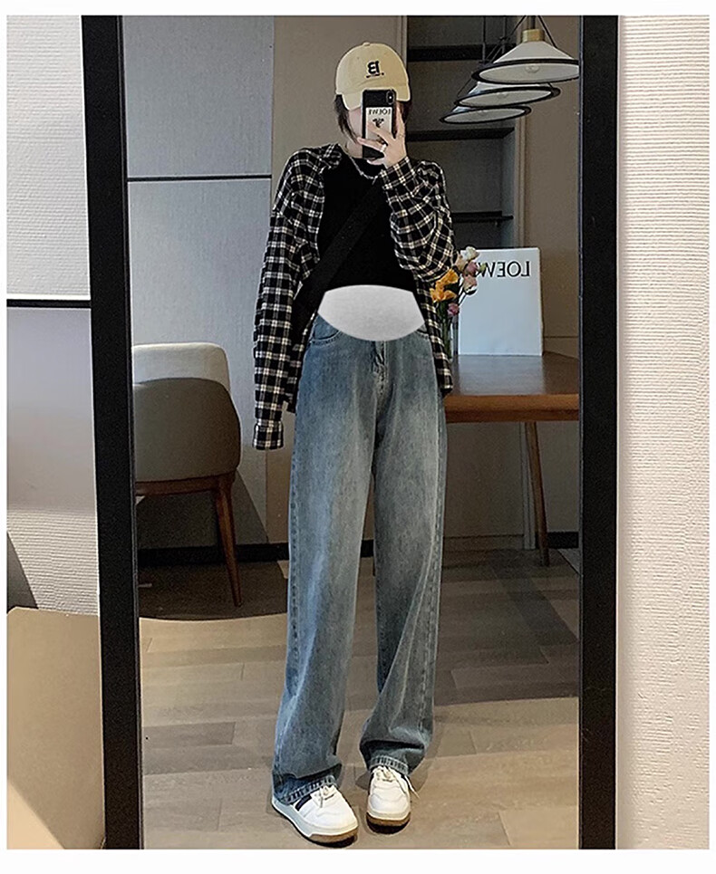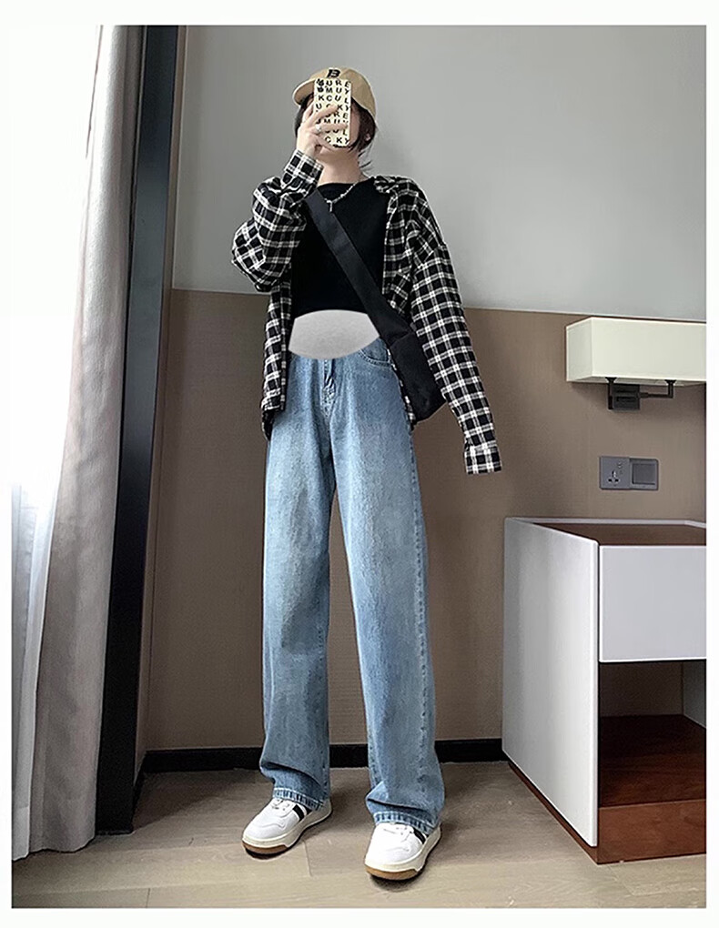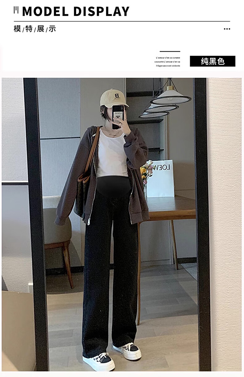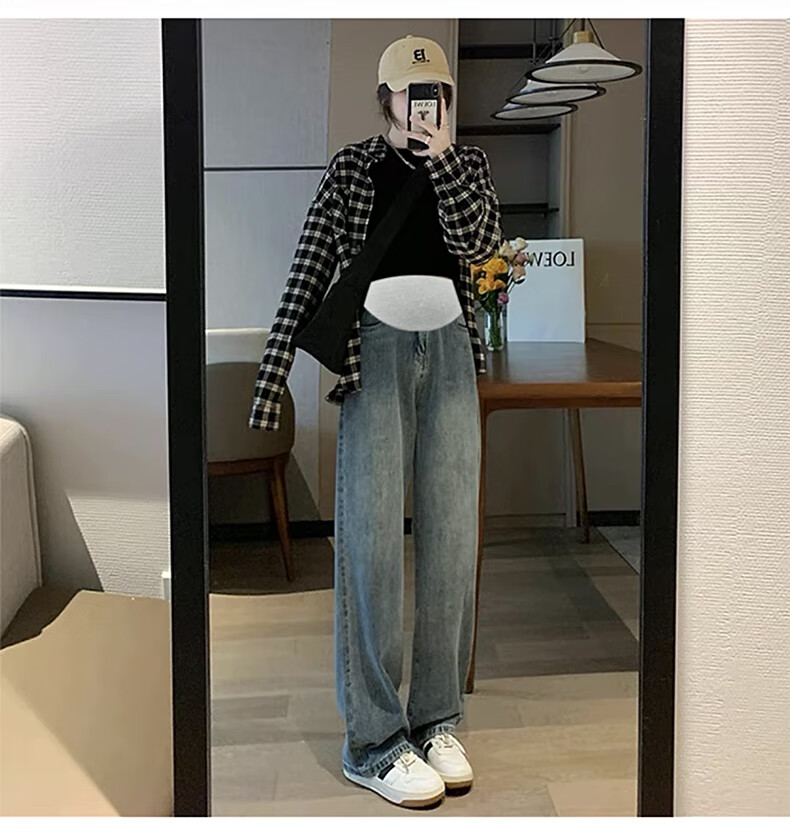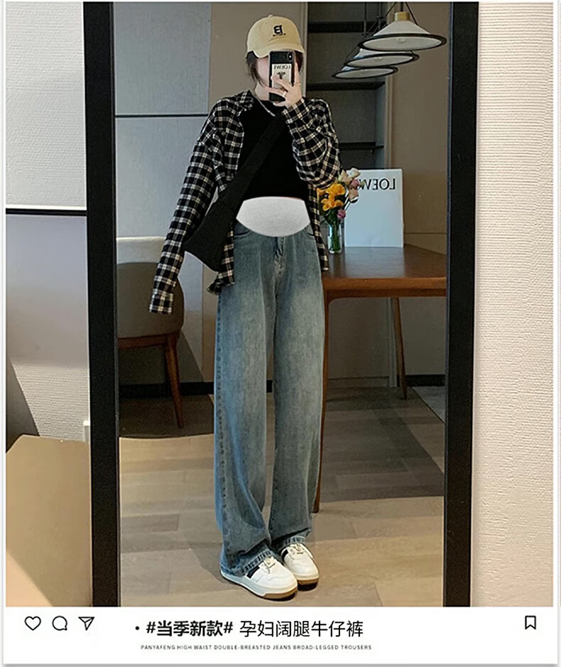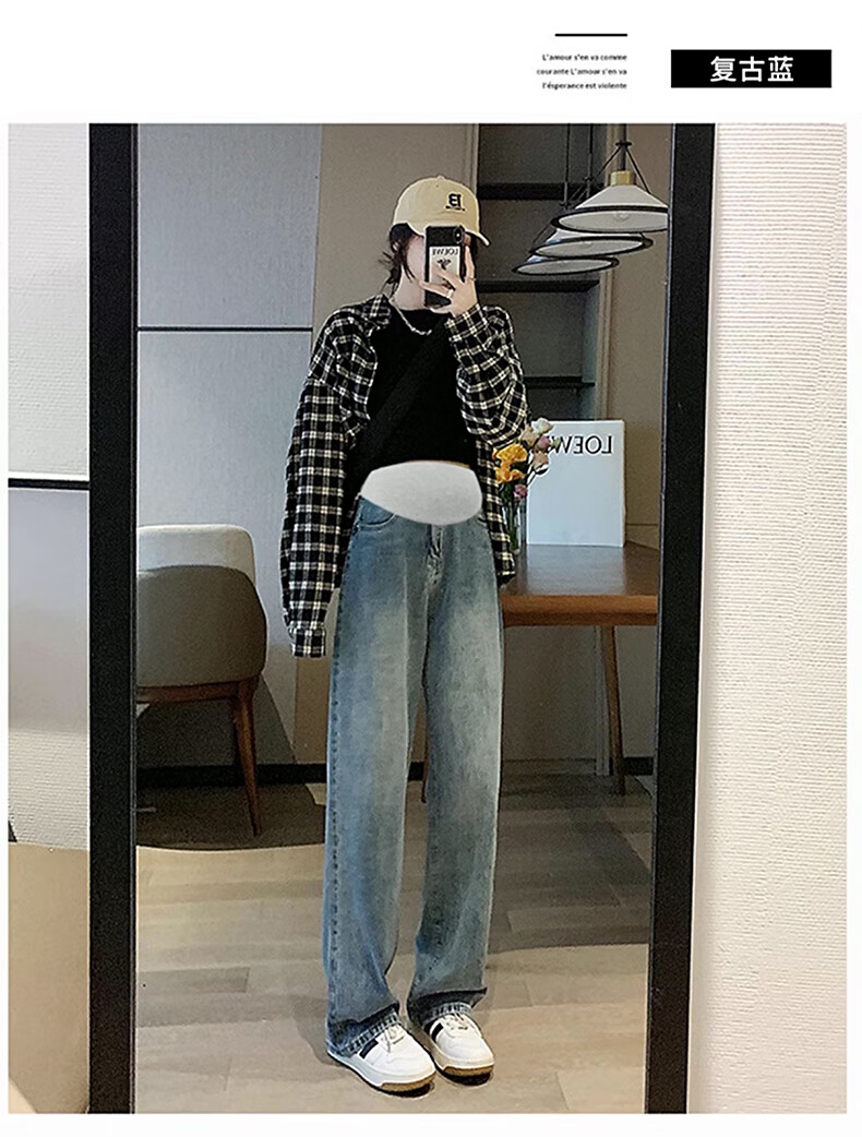 Qingbilin maternity jeans autumn and winter wide-leg pants winter casual straight trousers leggings floor-length pants autumn retro blue (spring and autumn) high waist belly support XL suitable for 120-135 Jin Jin equals 0.5 kg