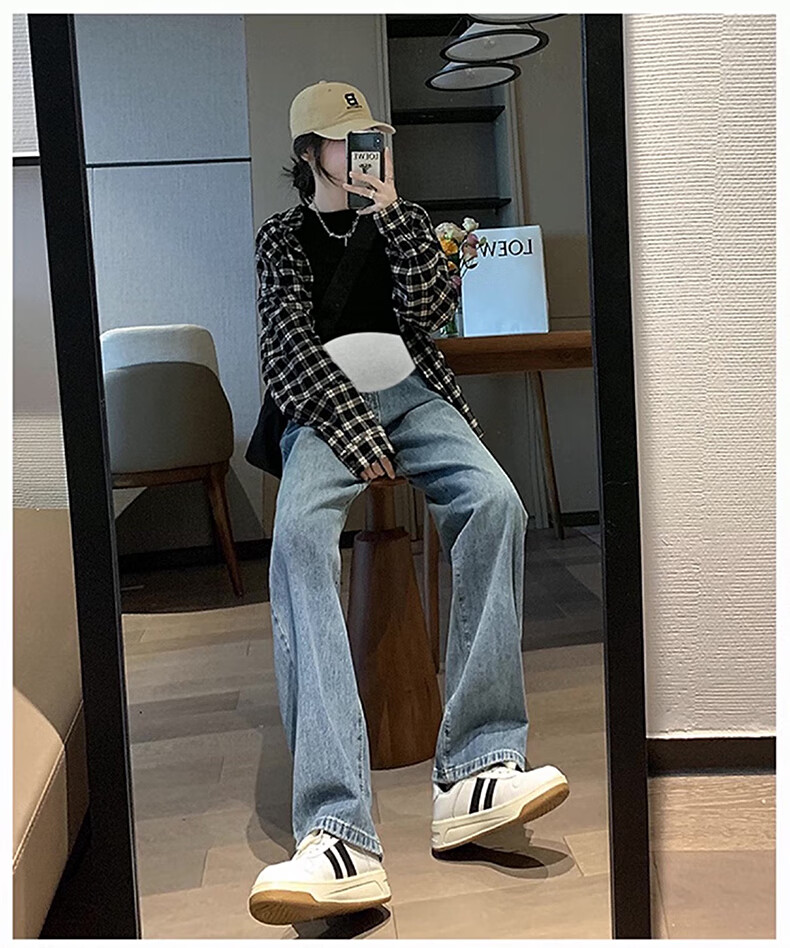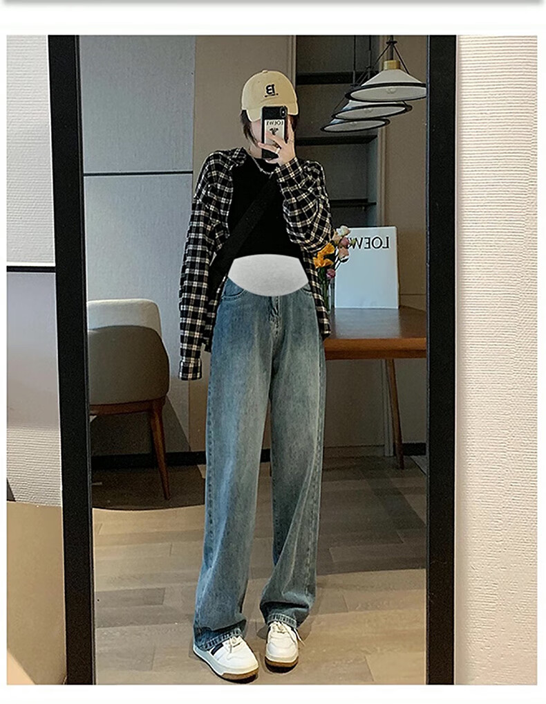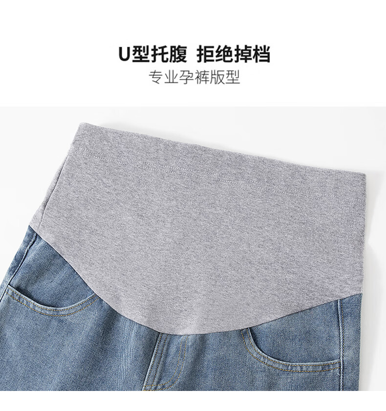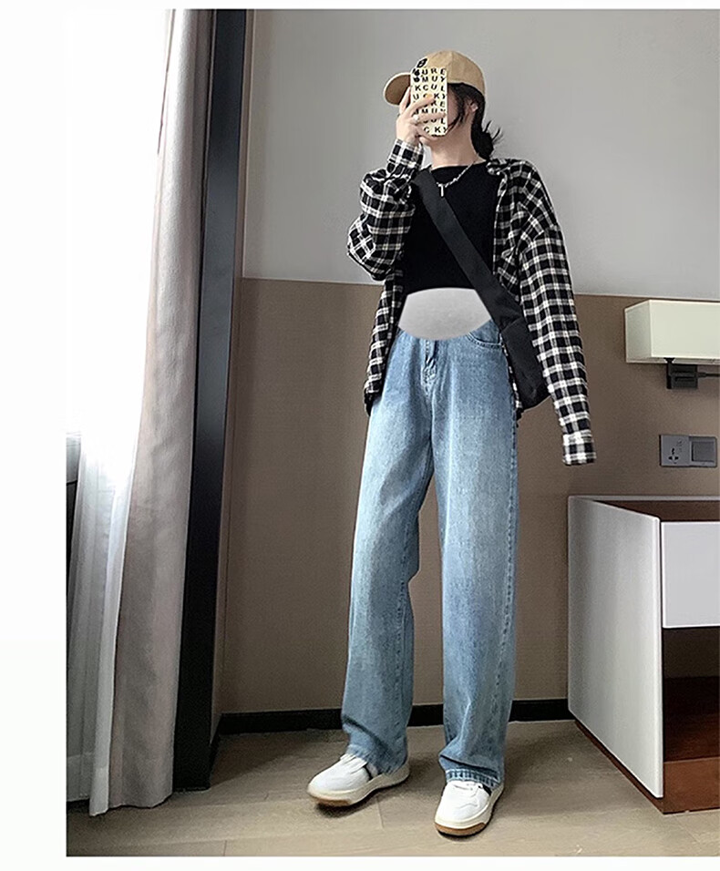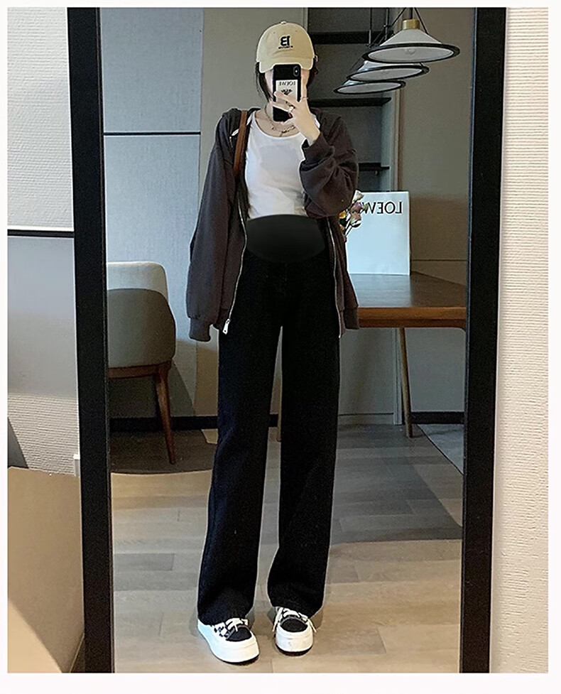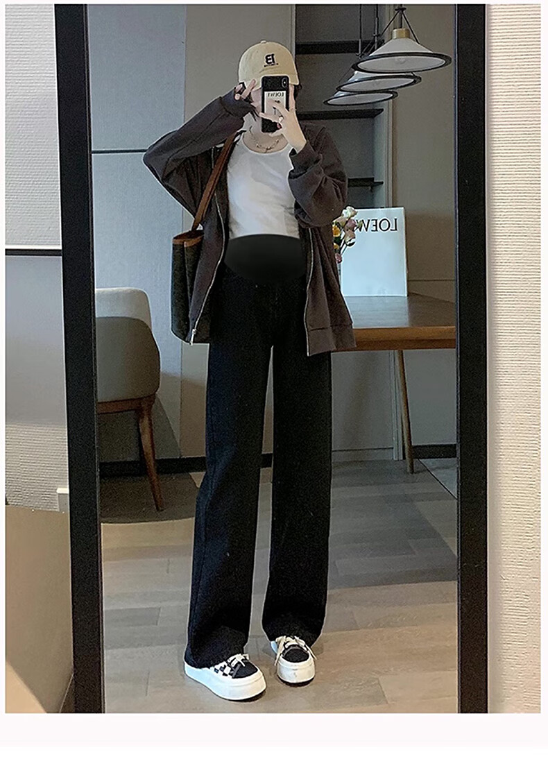 Qingbilin maternity jeans autumn and winter wide-leg pants winter casual straight trousers leggings floor-length pants autumn retro blue (spring and autumn) high waist belly support XL suitable for 120-135 Jin Jin equals 0.5 kg
