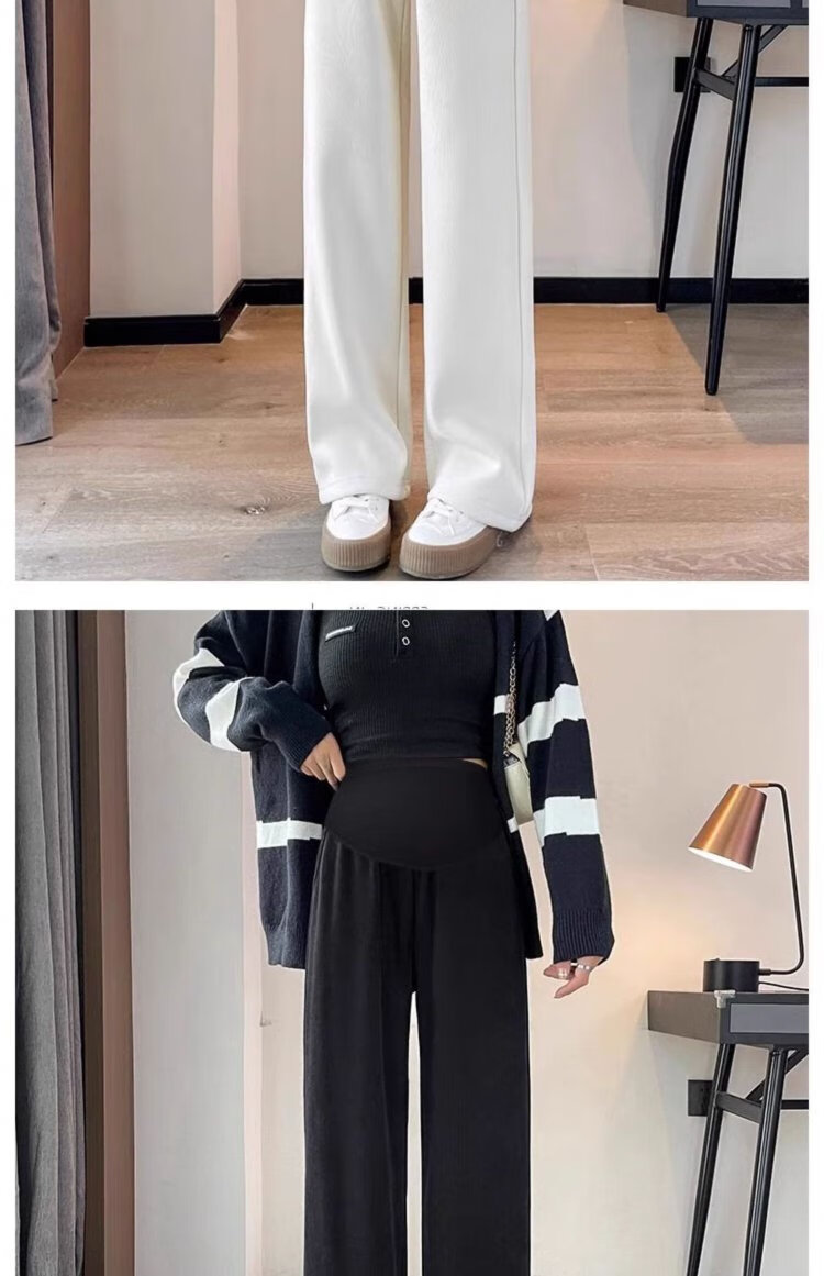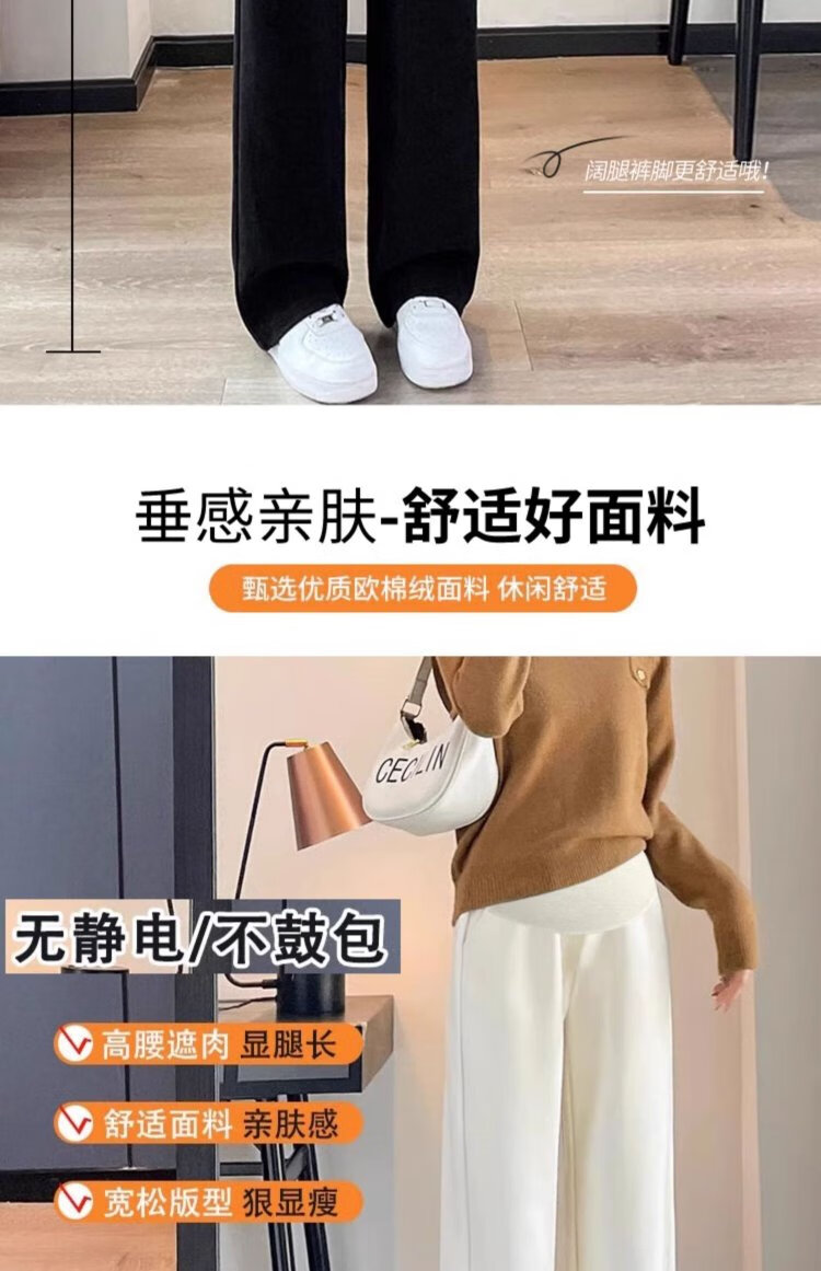 JOYNCLEON maternity pants wide-leg pants for women winter plus velvet European cotton belly-supporting casual pants black XL Jyk94537