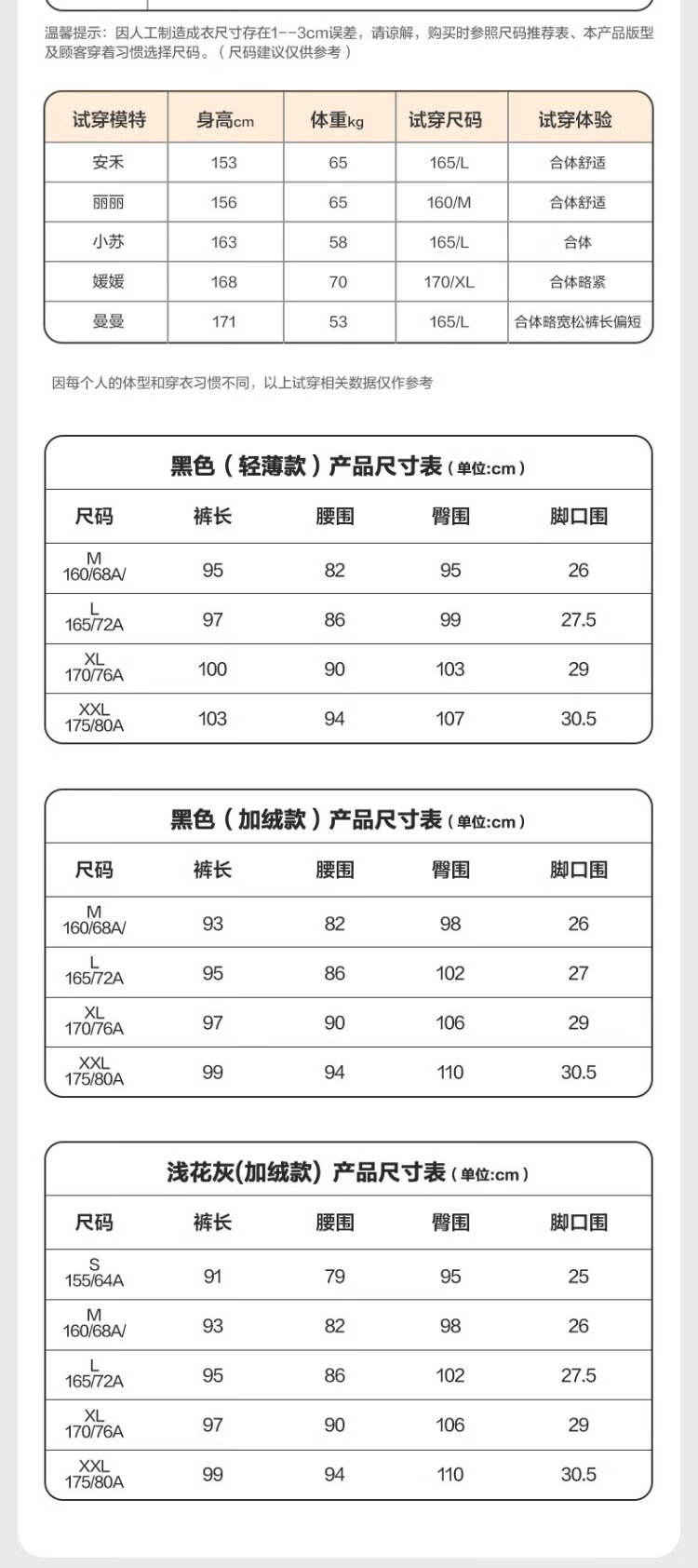 China (cm) 160-165/84-86 165-170 / 88-90 167-172 / 92-96 168-173 / 98-102 170-176 / 106-110