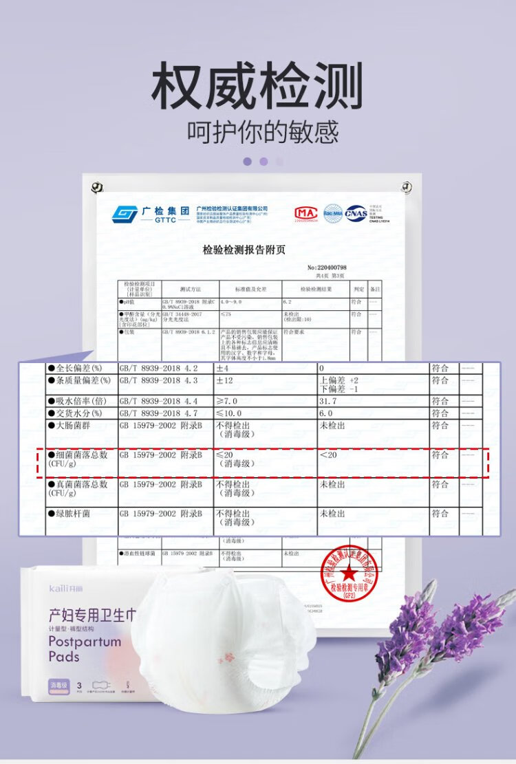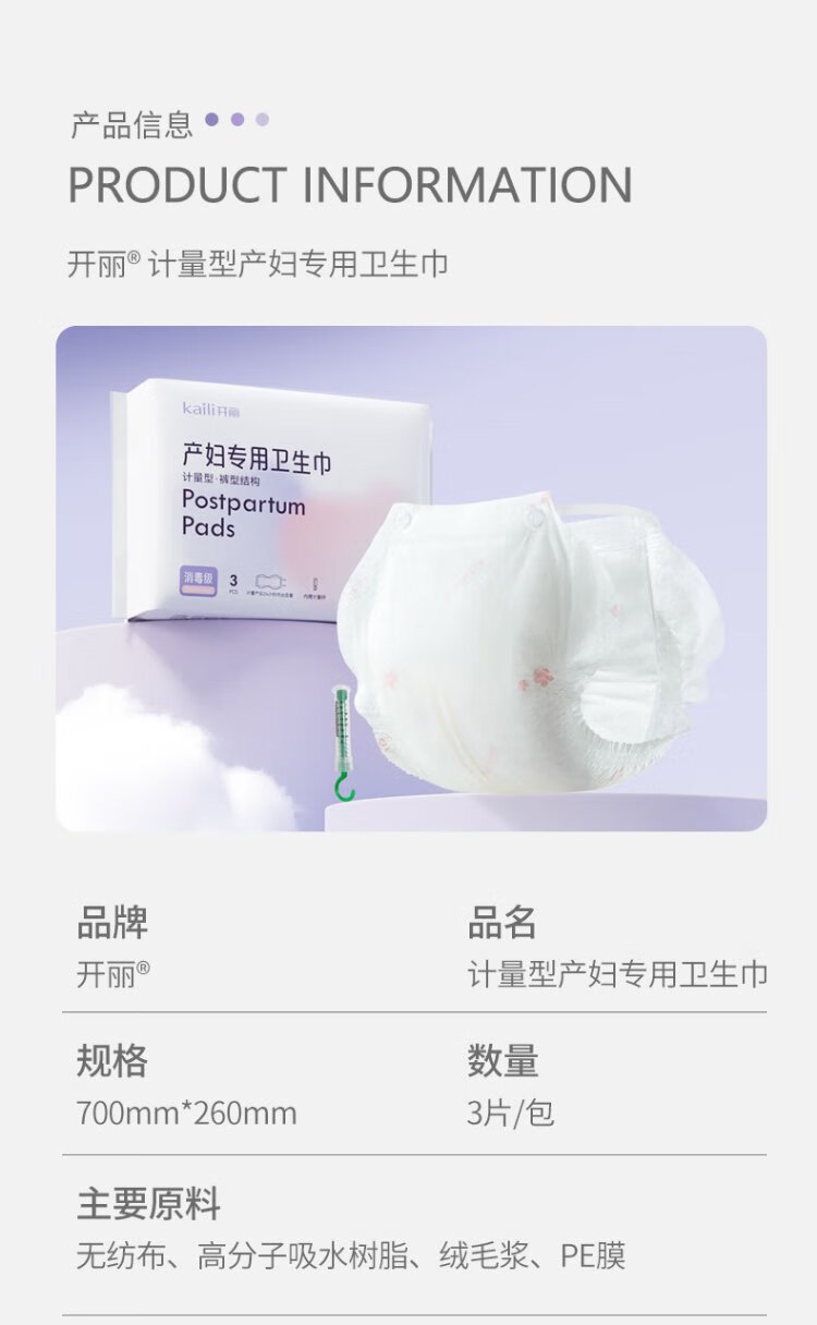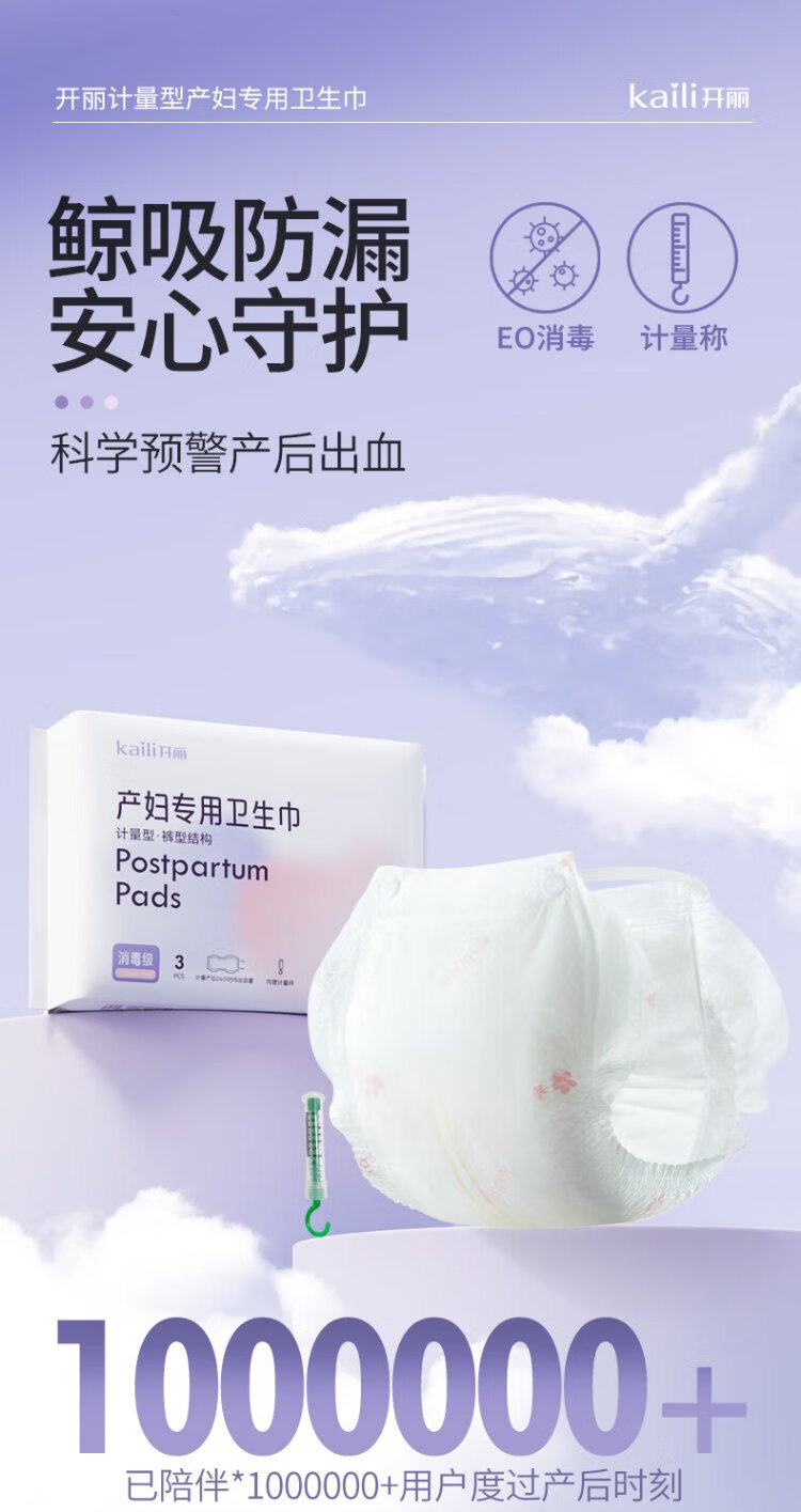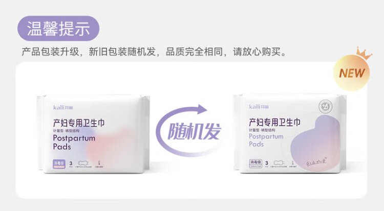 Kaili disinfection grade maternal metered sanitary napkins 3 pieces postpartum disposable sanitary pants