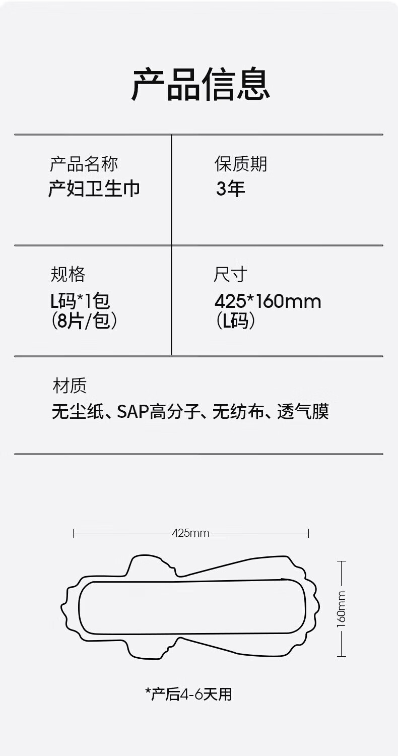 EMXEE maternal sanitary napkin, puerperal period, postpartum care sanitary napkin, M size 350*160mm, 10 pieces, 1 pack, sanitary napkin