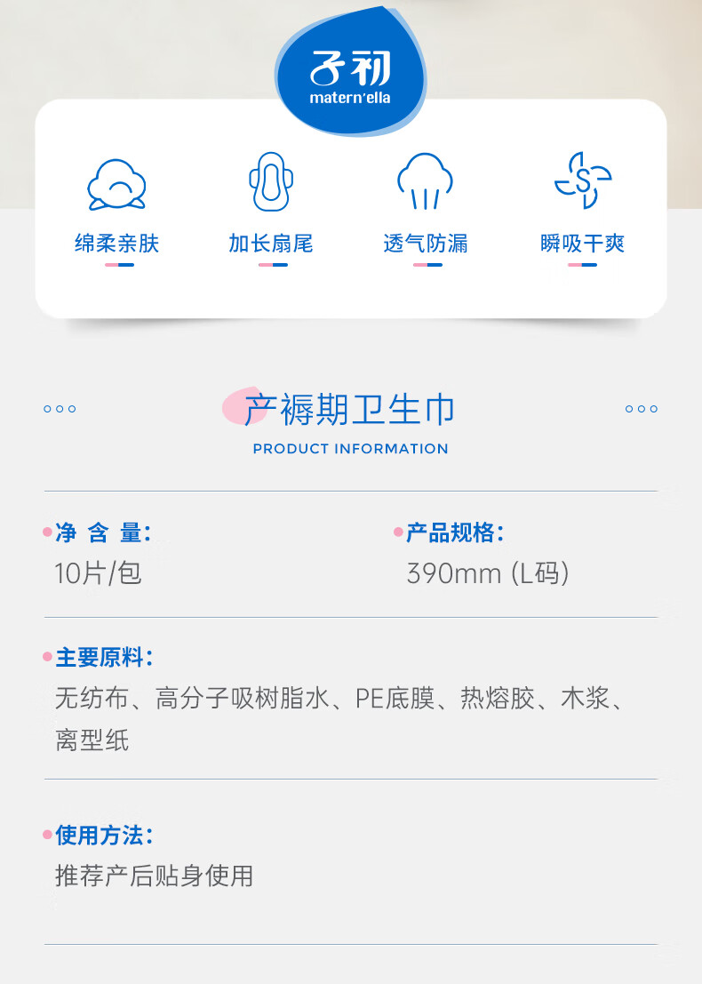 Zichu (matern ella) confinement maternity sanitary napkin puerperium maternity supplies postpartum lochia maternal special sanitary napkin L size 10 pieces