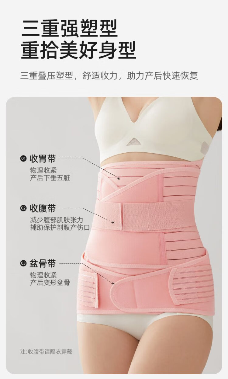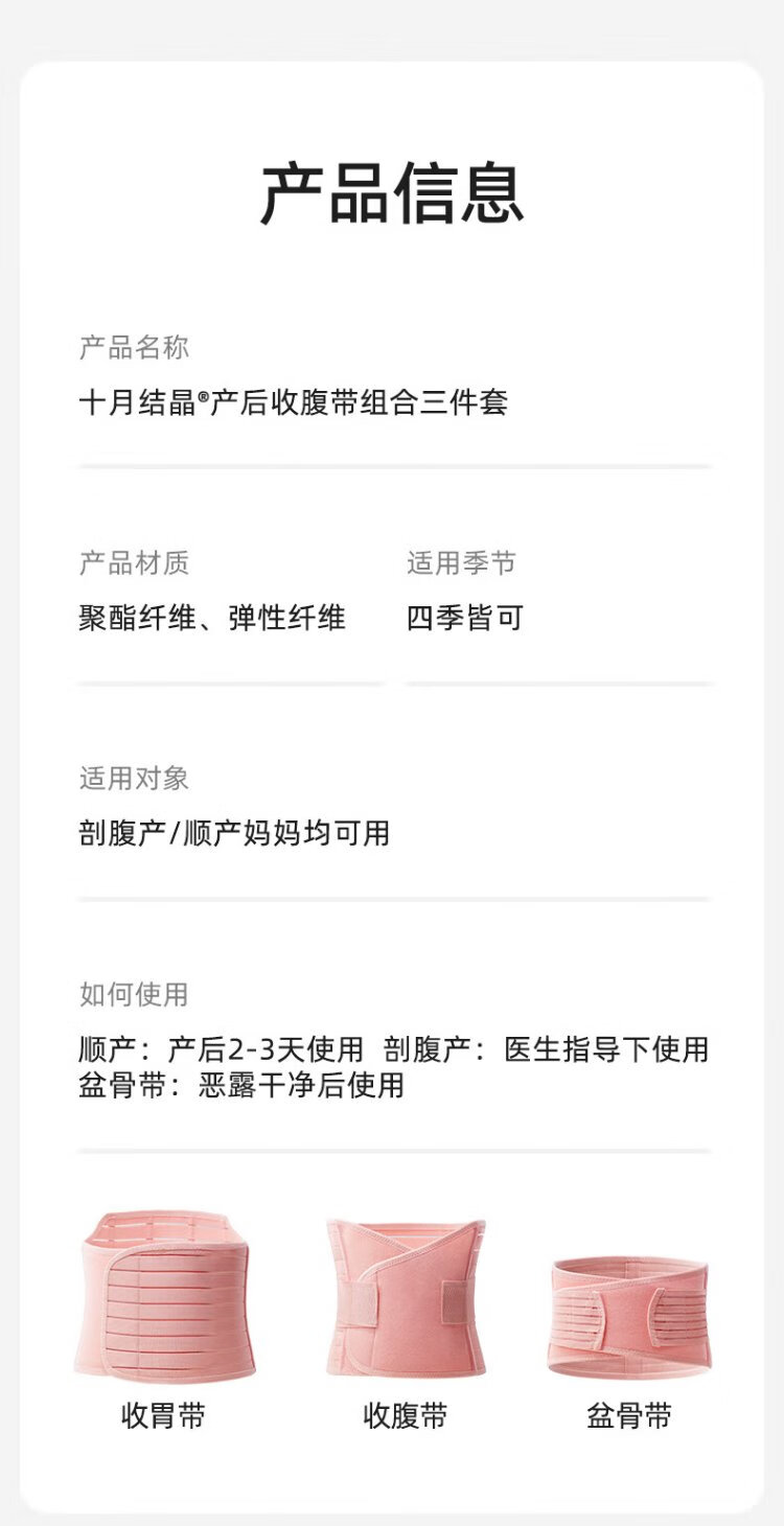 October crystal postpartum abdominal belt 3-piece set for postpartum body shaping, natural birth and caesarean section (abdomen + stomach + pelvis) XXL