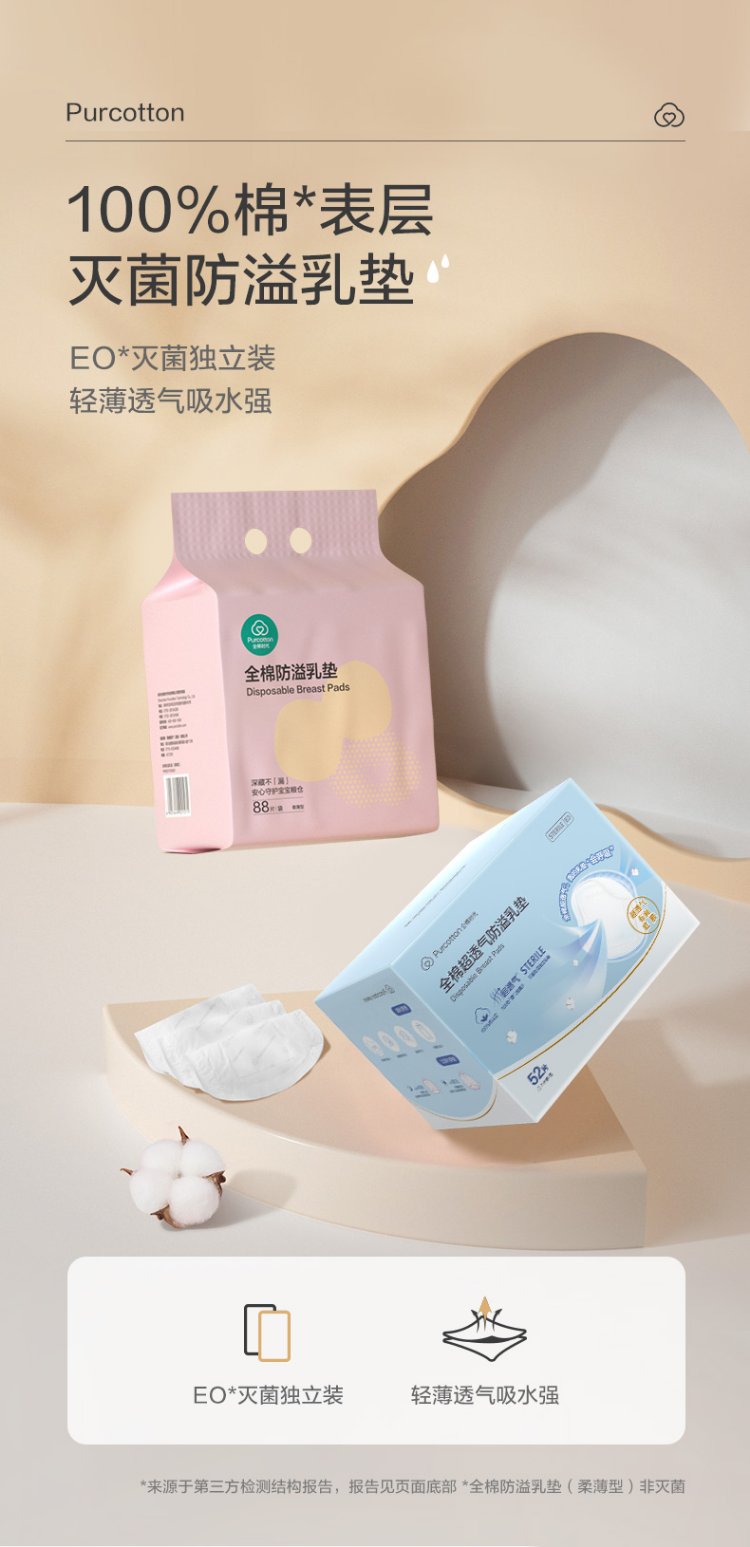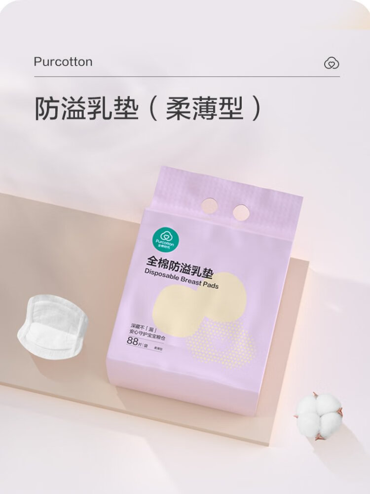 Cotton Era Anti-overflow Breast Pads Postpartum Breastfeeding Soft Thin Breathable Disposable Pure Cotton Individually Packed 88 Pieces/Bag