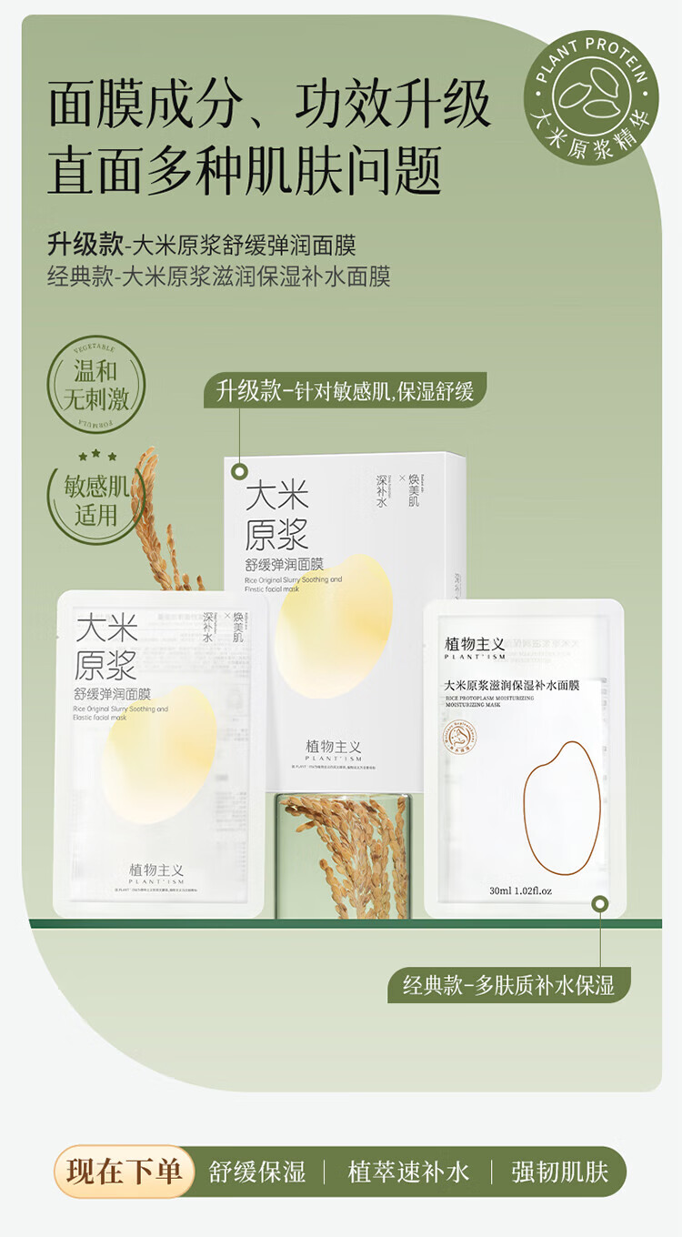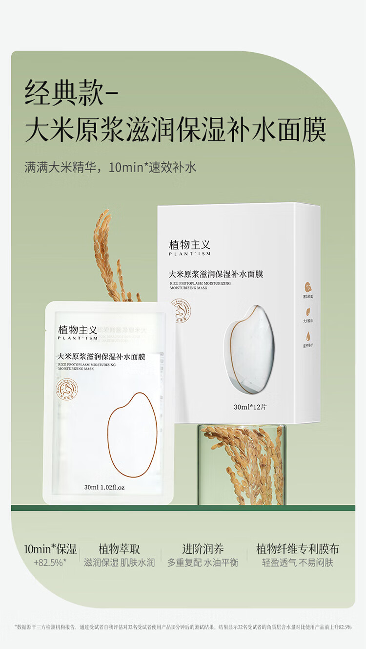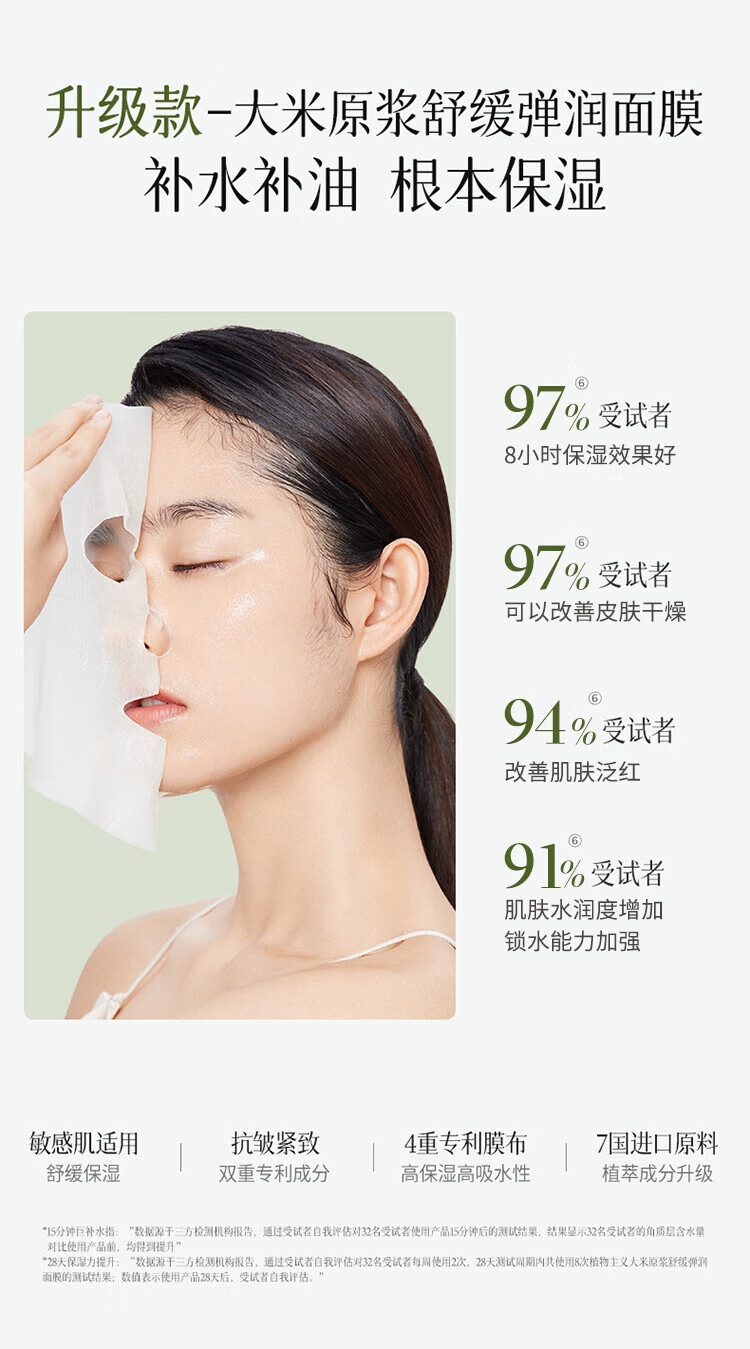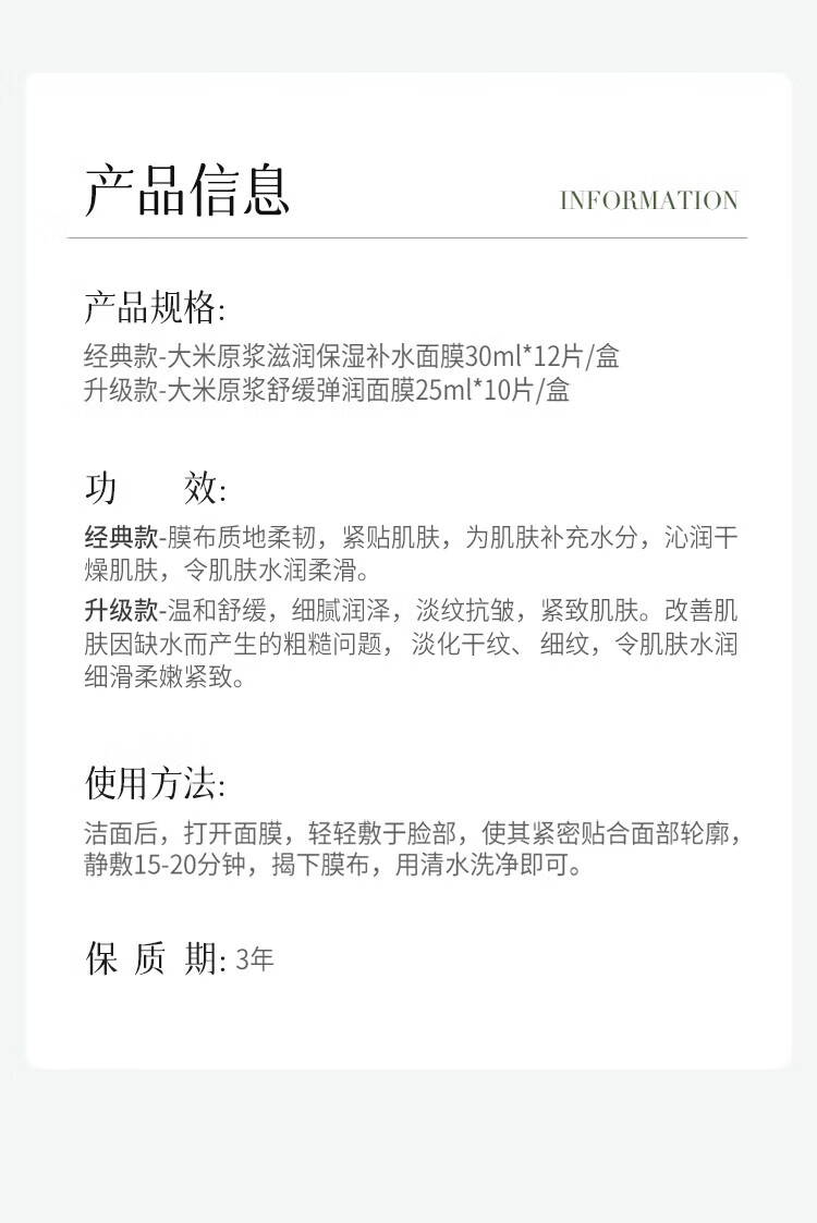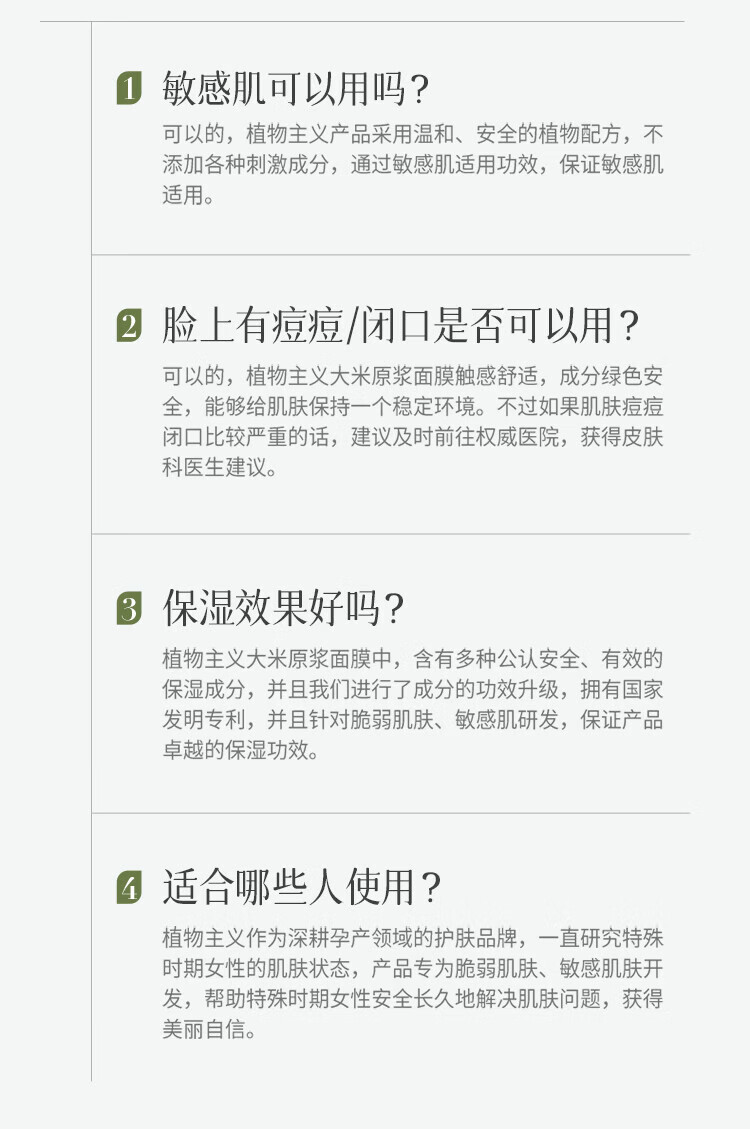 Botanical facial mask for pregnant women, moisturizing and hydrating, deep moisturizing skin care products suitable for pregnant women, rice hydrating mask 24 pieces