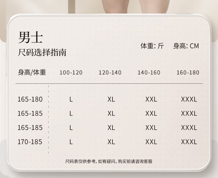 China (cm) 165 / 88-90 170 / 96-98 175 / 108-110 180 / 118-122 185 / 126-130