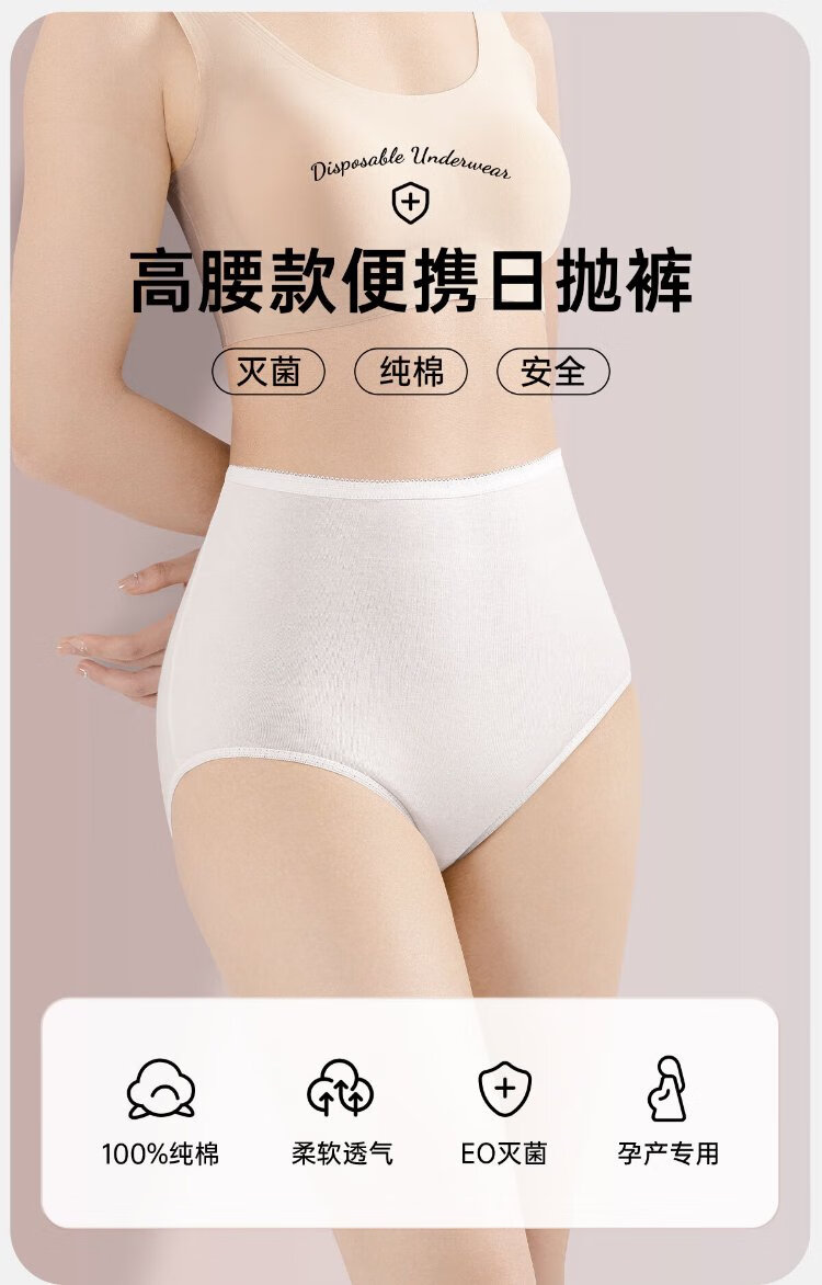 BADIGAO Disposable Underwear Women's High Waist Pregnant Women's C-section Special Cotton Maternal Postpartum Confinement Shorts Daily Disposable XL Size