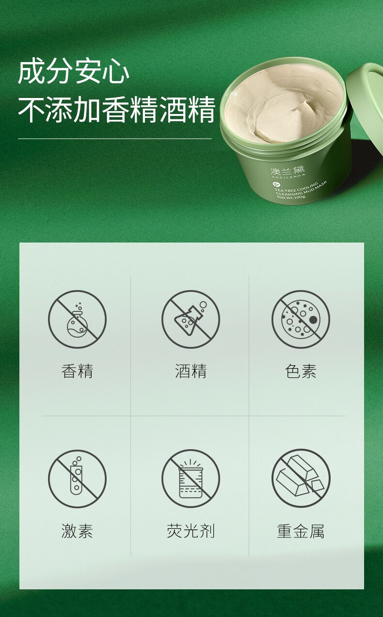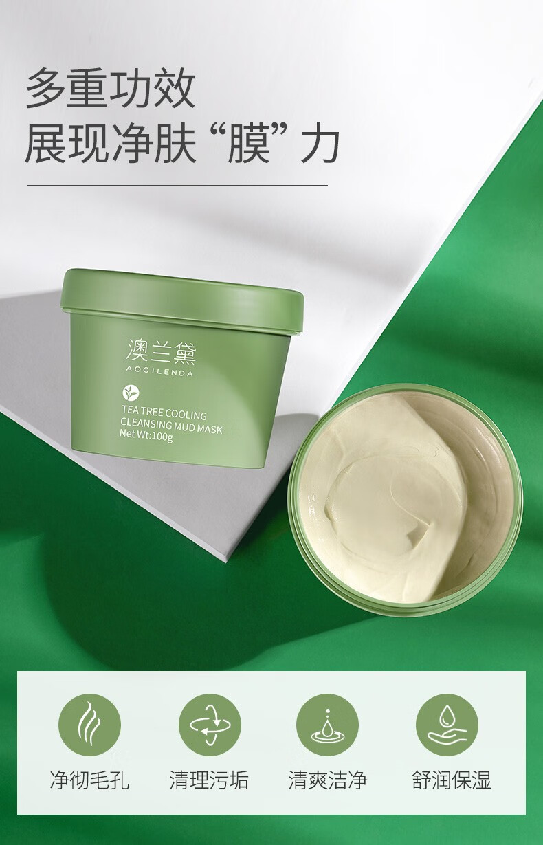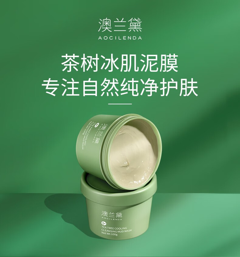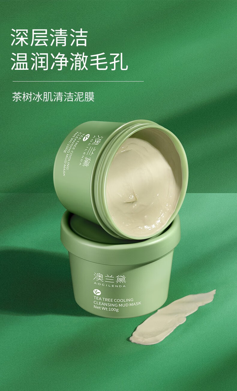 AOCILENDA Pregnant Women Cleansing Mask Mud Mask Face Cleansing Moisturizing Soothing Cleansing Mask Skin Care Products Facial Autumn and Winter Tea Tree Ice Skin Cleansing Mud Mask 100g 2 Bottles