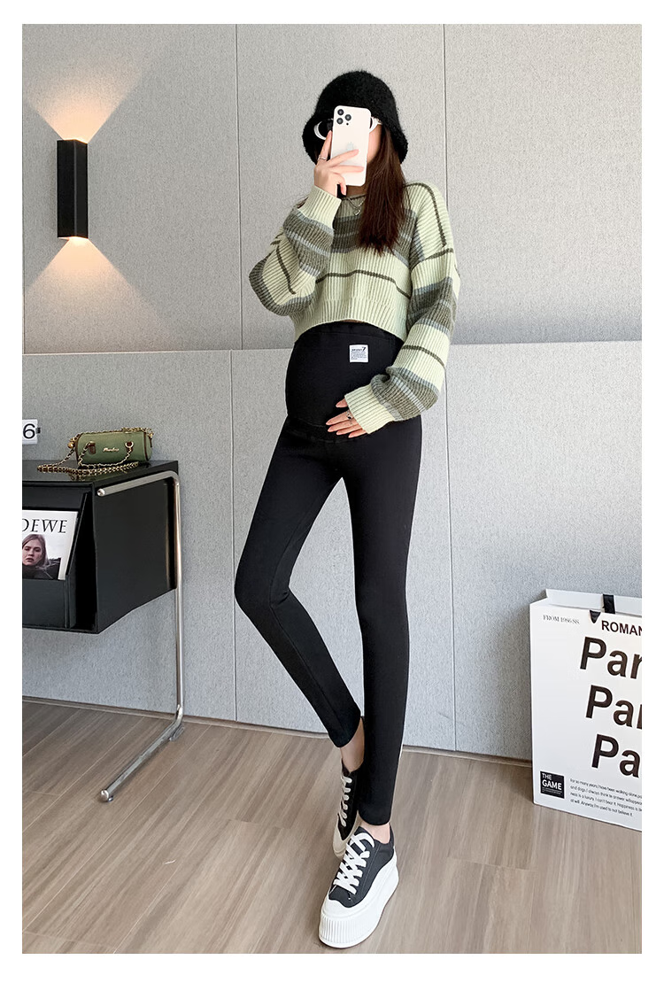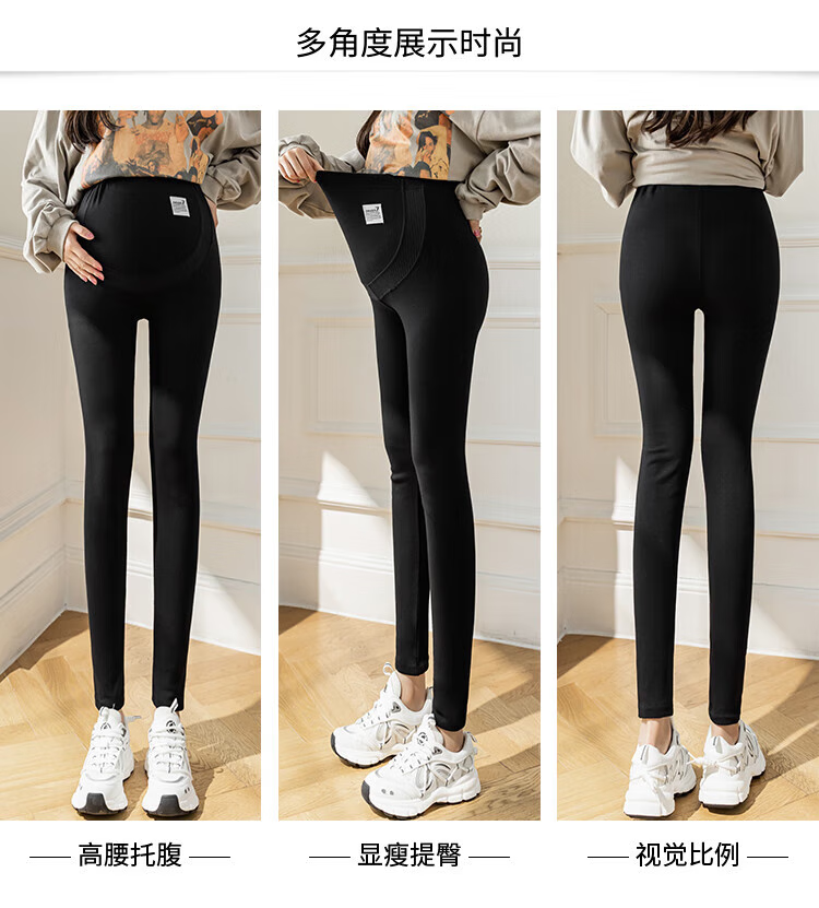 MOKPBLE large size spring and autumn bottoming tummy trousers for pregnant women 200 Jin Jin is equal to 0.5 kg Fat mm elastic outer wear pregnant women winter plus velvet small-leg cotton trousers Black spring and autumn style 1 pack 4XL recommended 180-220 Jin Jin is equal to 0.5 kg