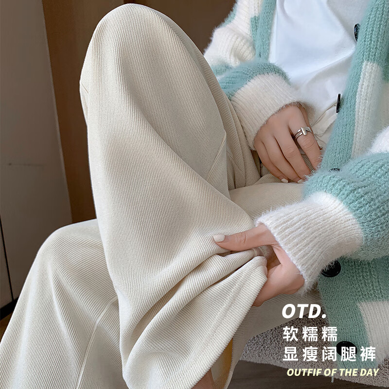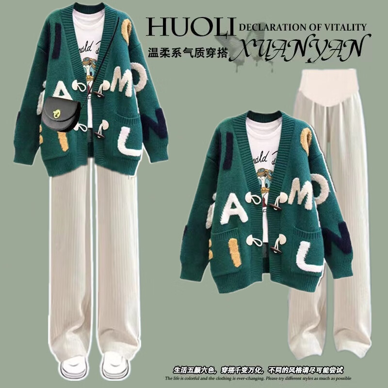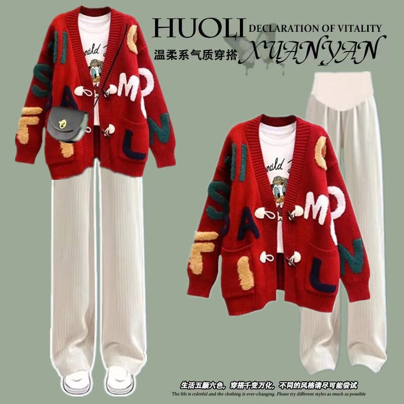 Geman Maternity Clothing Autumn and Winter 2025 Suit Slim Loose Letter Sweater Pants Plus Velvet Korean Two-piece Maternity Jacket Apricot Sweater L