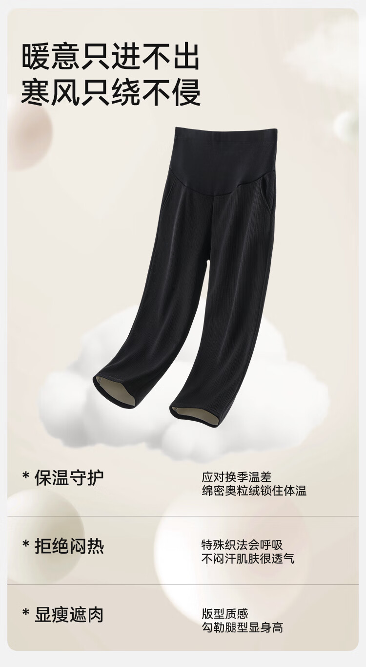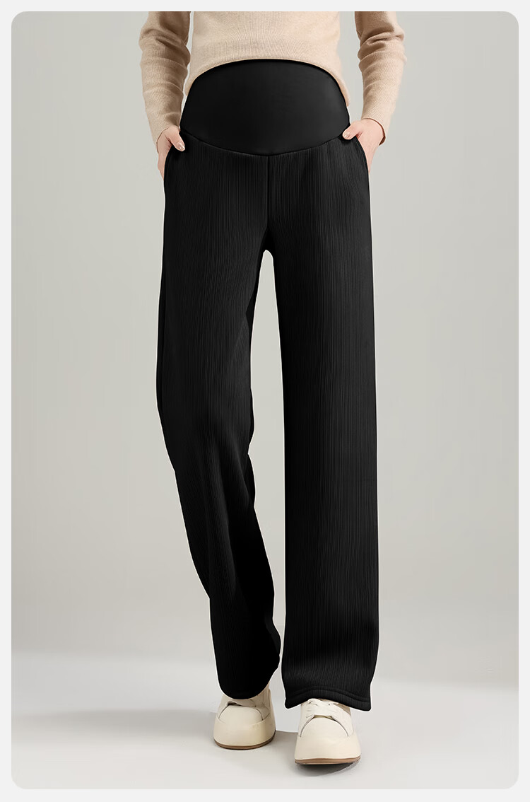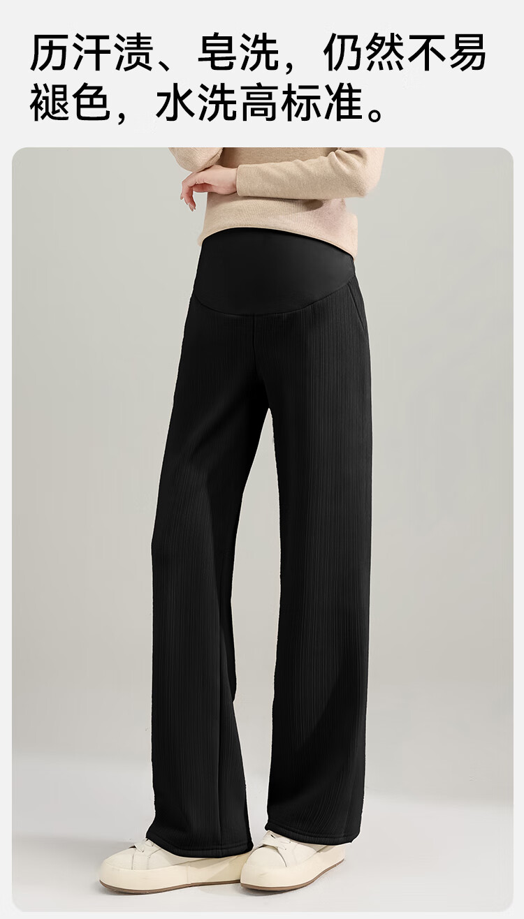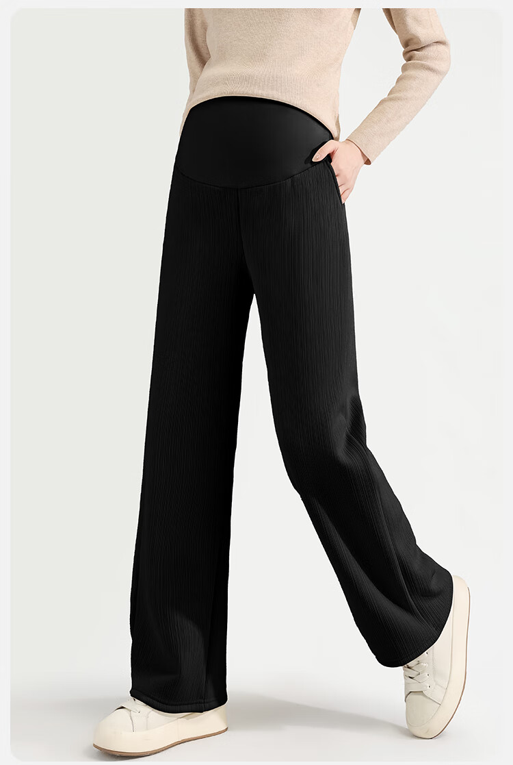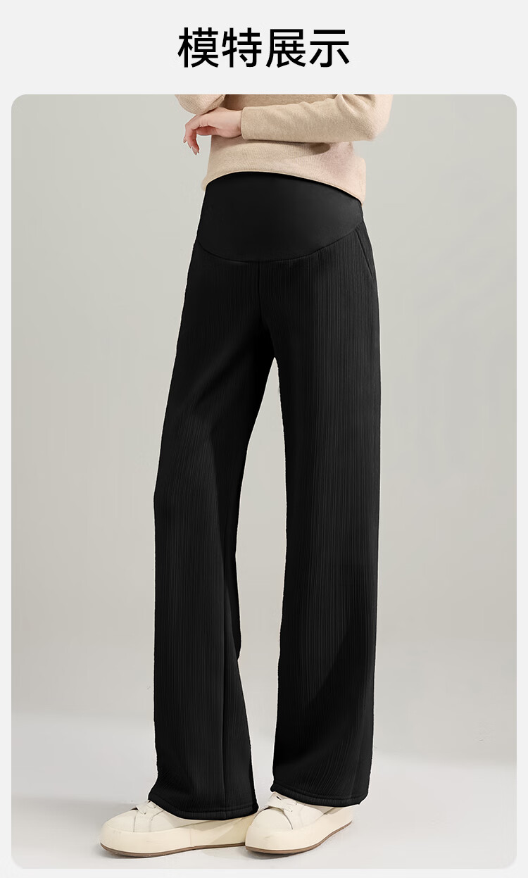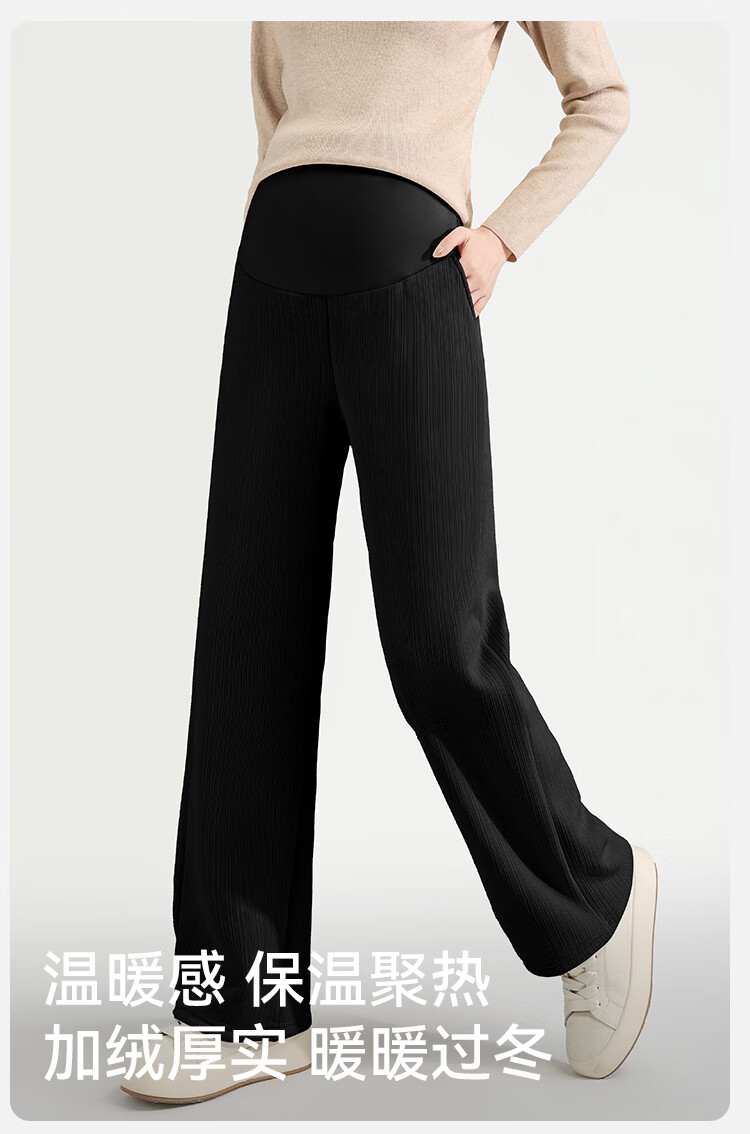 Ying's Autumn and Winter Maternity Pants High Waist Belly-supporting Straight Pants Wearable as External Wear Versatile Wide Leg Pants Black Velvet -10 ~10 XL Recommended Weight 130-155 Jin Jin equals 0.5 kg