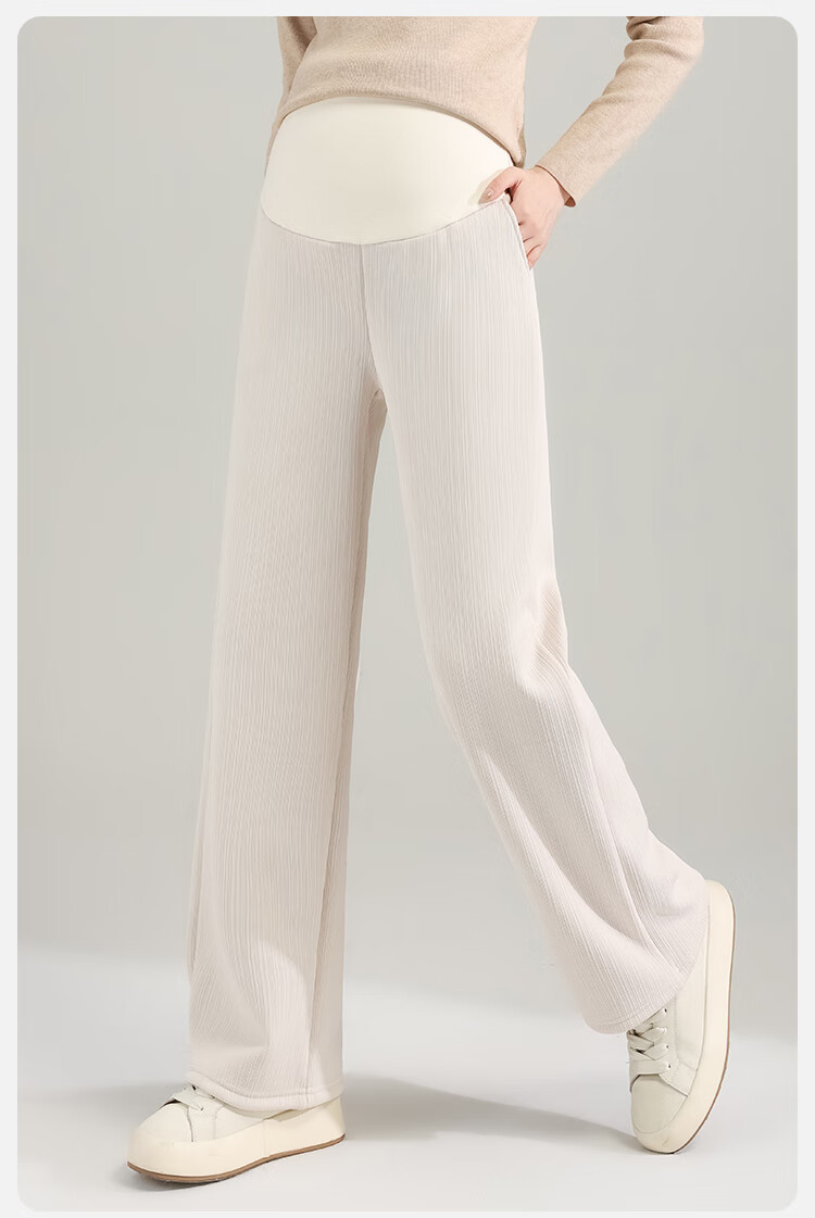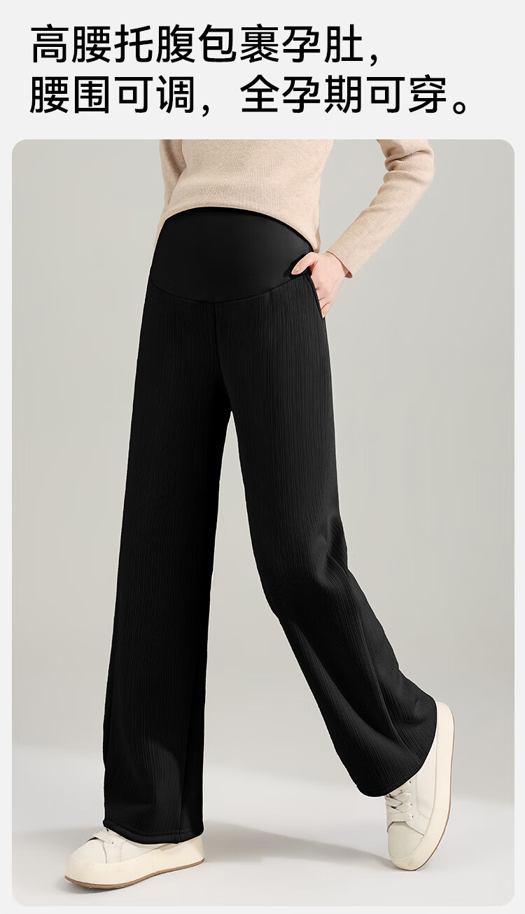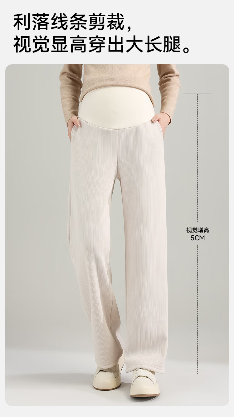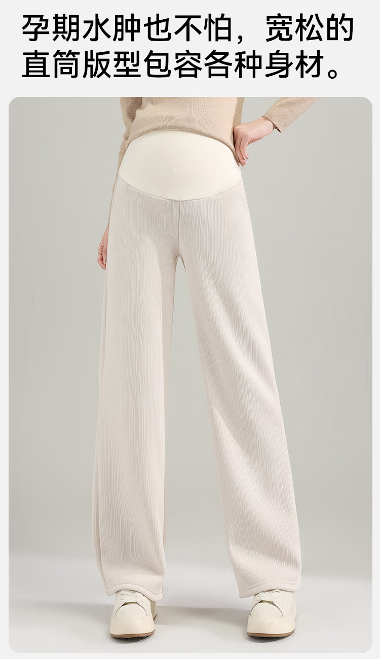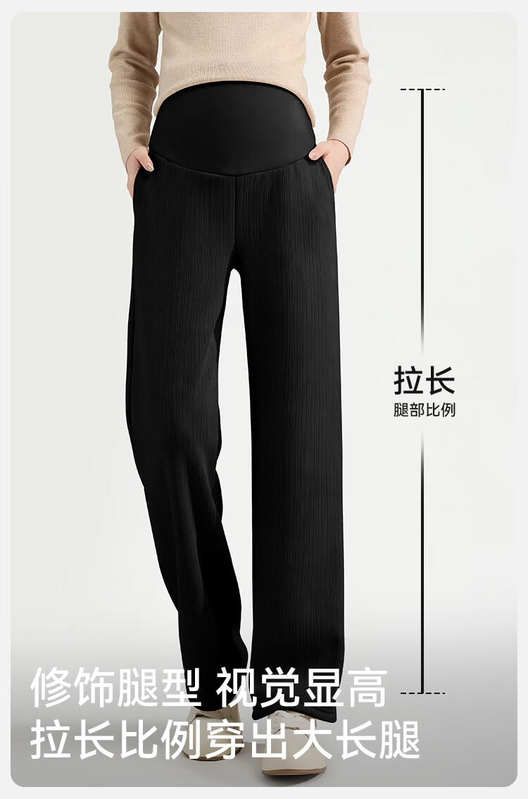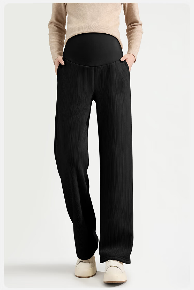 Ying's Autumn and Winter Maternity Pants High Waist Belly-supporting Straight Pants Wearable as External Wear Versatile Wide Leg Pants Black Velvet -10 ~10 XL Recommended Weight 130-155 Jin Jin equals 0.5 kg