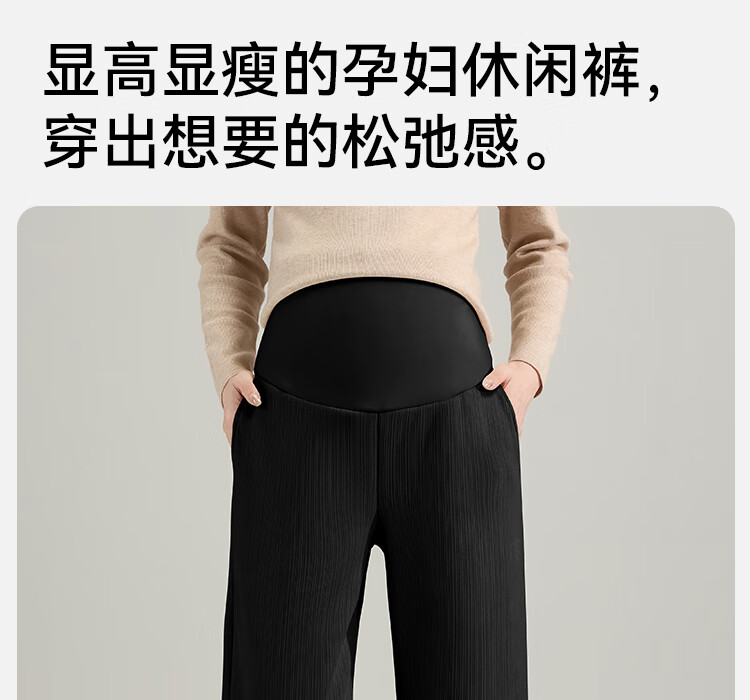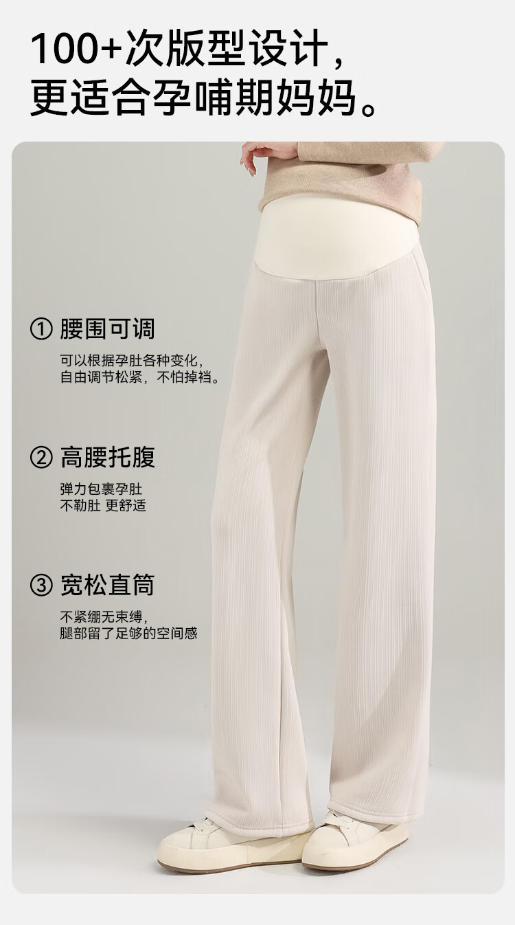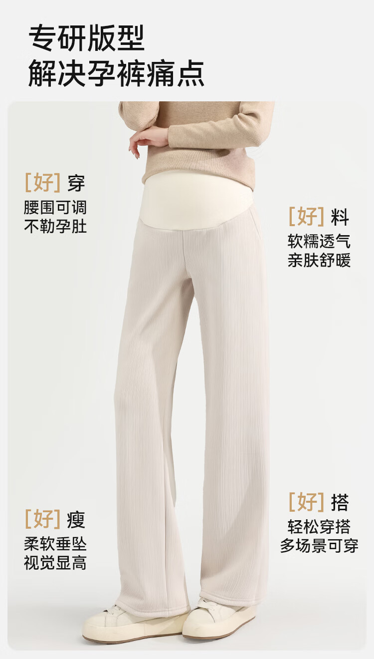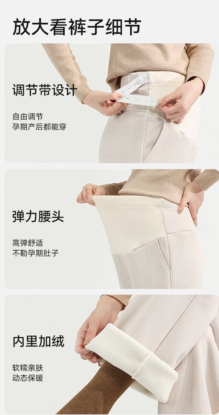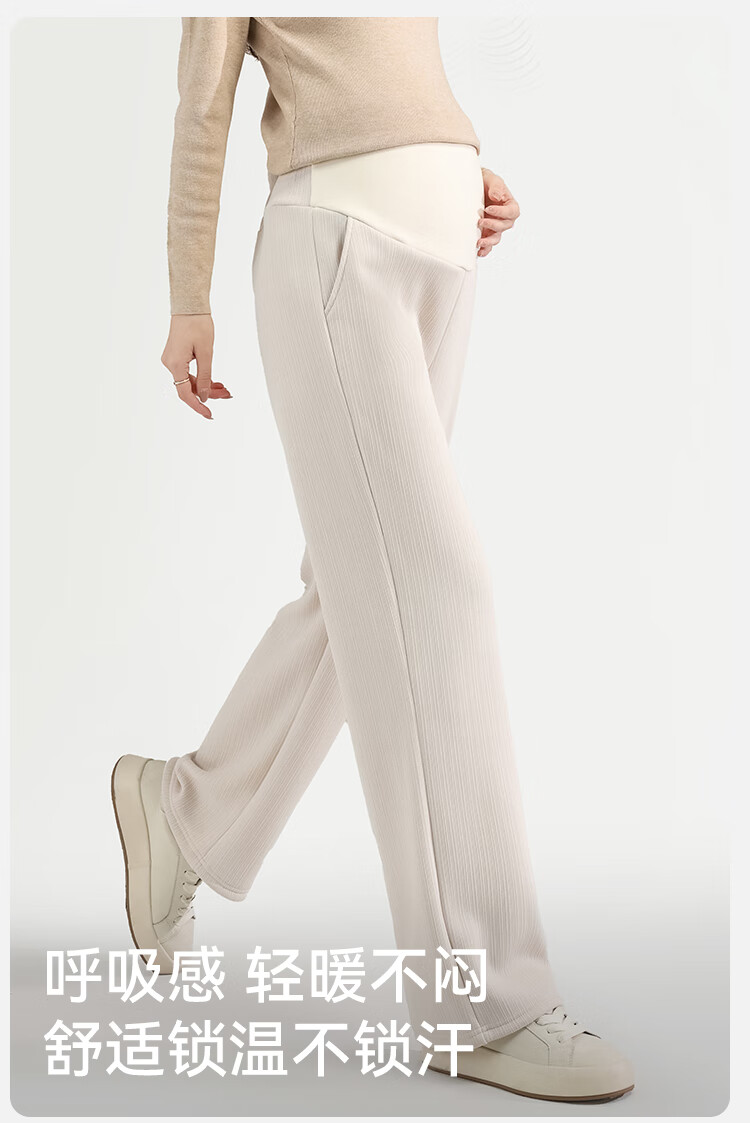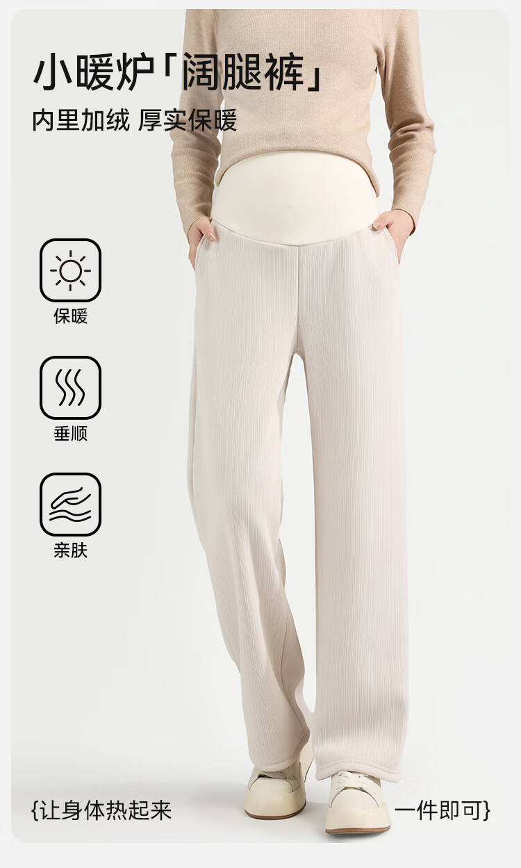 Ying's Autumn and Winter Maternity Pants High Waist Belly-supporting Straight Pants Wearable as External Wear Versatile Wide Leg Pants Black Velvet -10 ~10 XL Recommended Weight 130-155 Jin Jin equals 0.5 kg