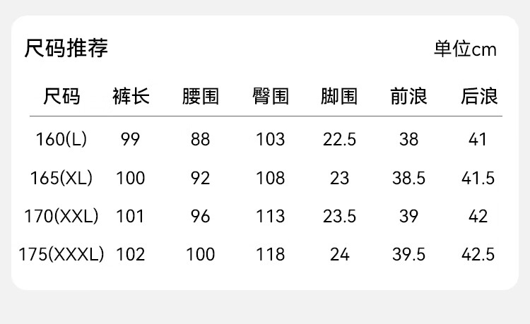 China (cm) 160-165/84-86 165-170 / 88-90 167-172 / 92-96 168-173 / 98-102 170-176 / 106-110