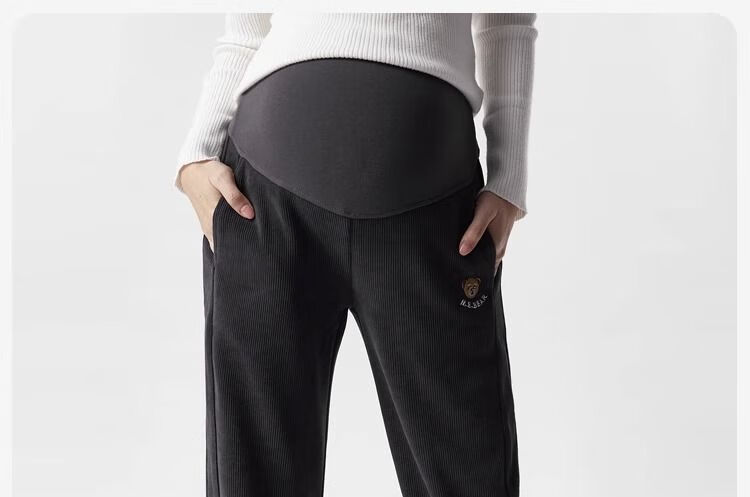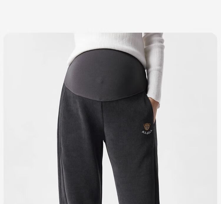 Tiaodegao Maternity Pants, Autumn and Winter Outerwear, Petite Sweatpants, Spring and Autumn Large Size Late Pregnancy Plus Velvet Thickened Tummy Support Pants Maternity Clothes, Dark Gray - Velvet Style - Large Size (115-135 Jin Jin is equal to 0.5 kg)