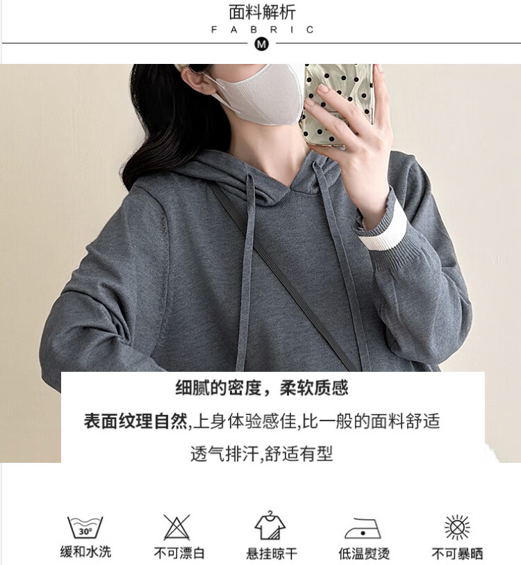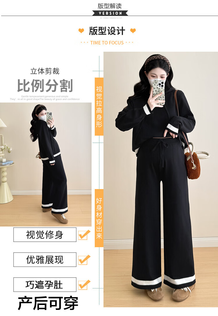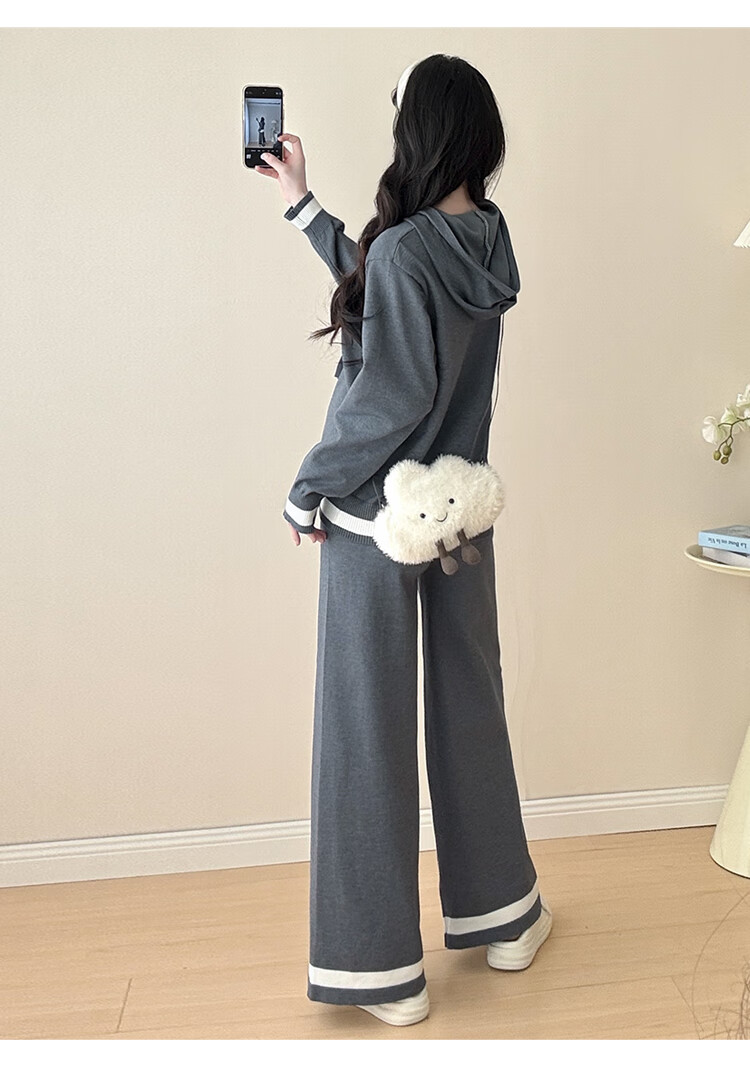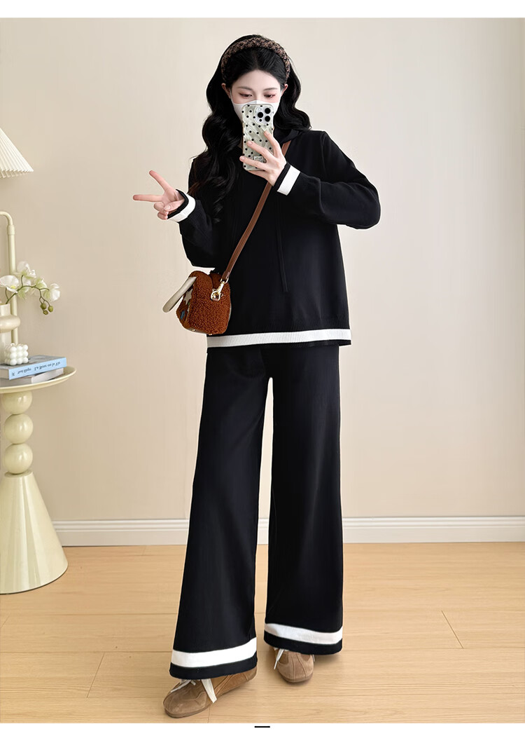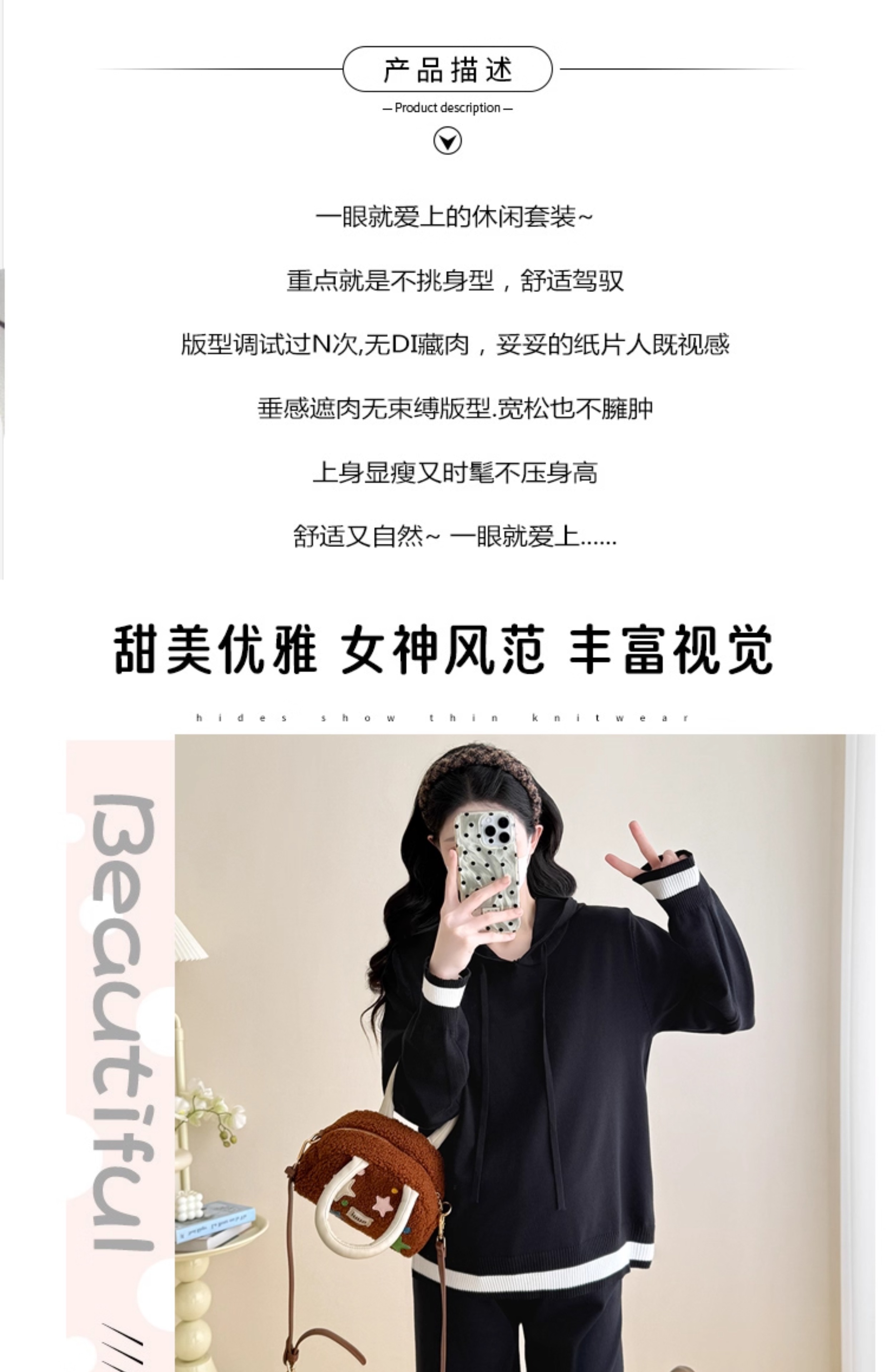 Mother's true color maternity gray suit autumn and winter 2025 new fashion simple lazy hooded knitted sweater wide leg pants two-piece set gray suit XXL
