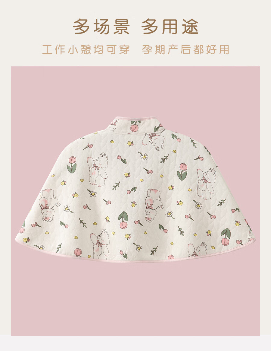 Xinnan Pregnant Women's Shawl Autumn and Winter Universal Air Cotton Sandwich Confinement Anti-Warm Wind Breastfeeding Postpartum Pregnancy Cloak Pink Floral Confinement Shawl Four Seasons One Size