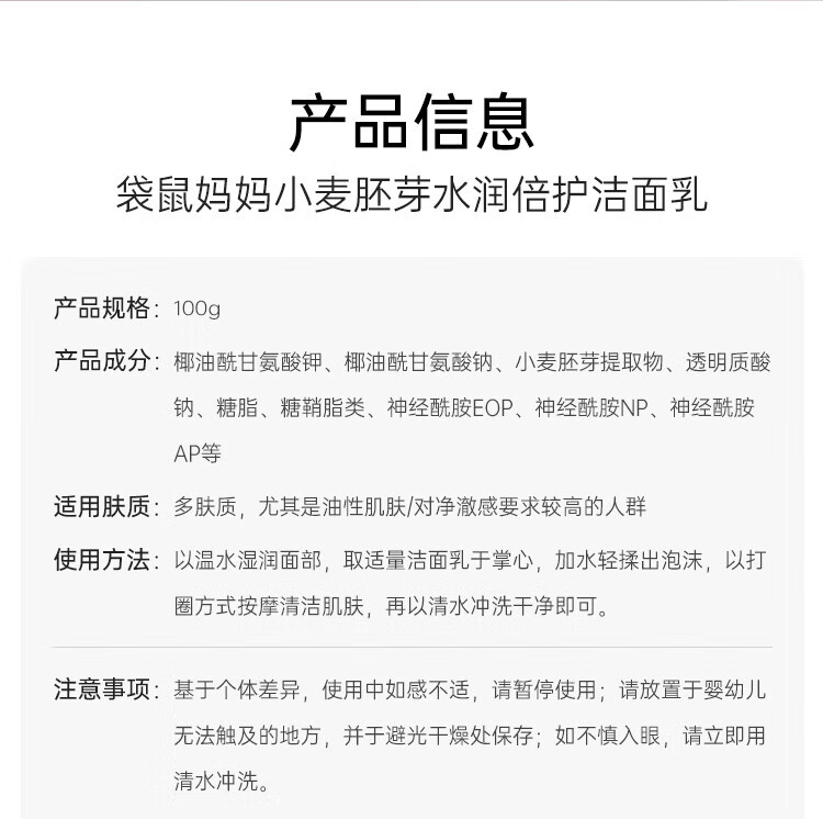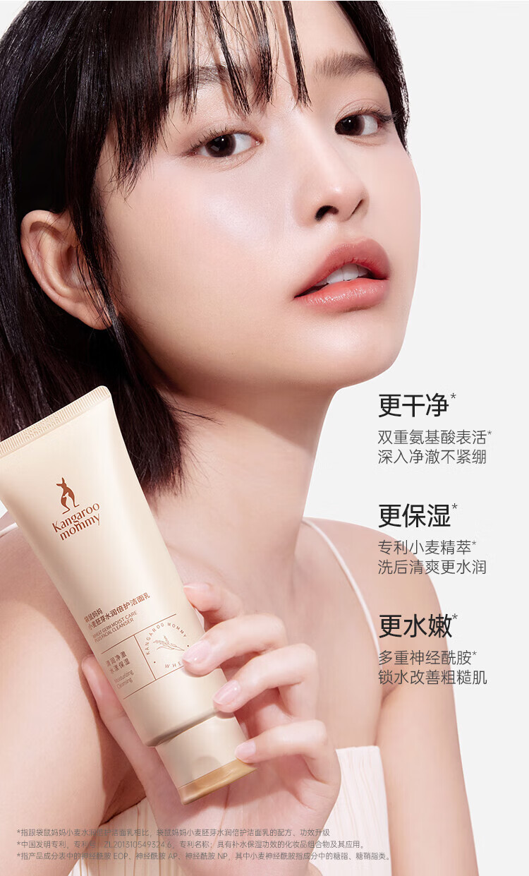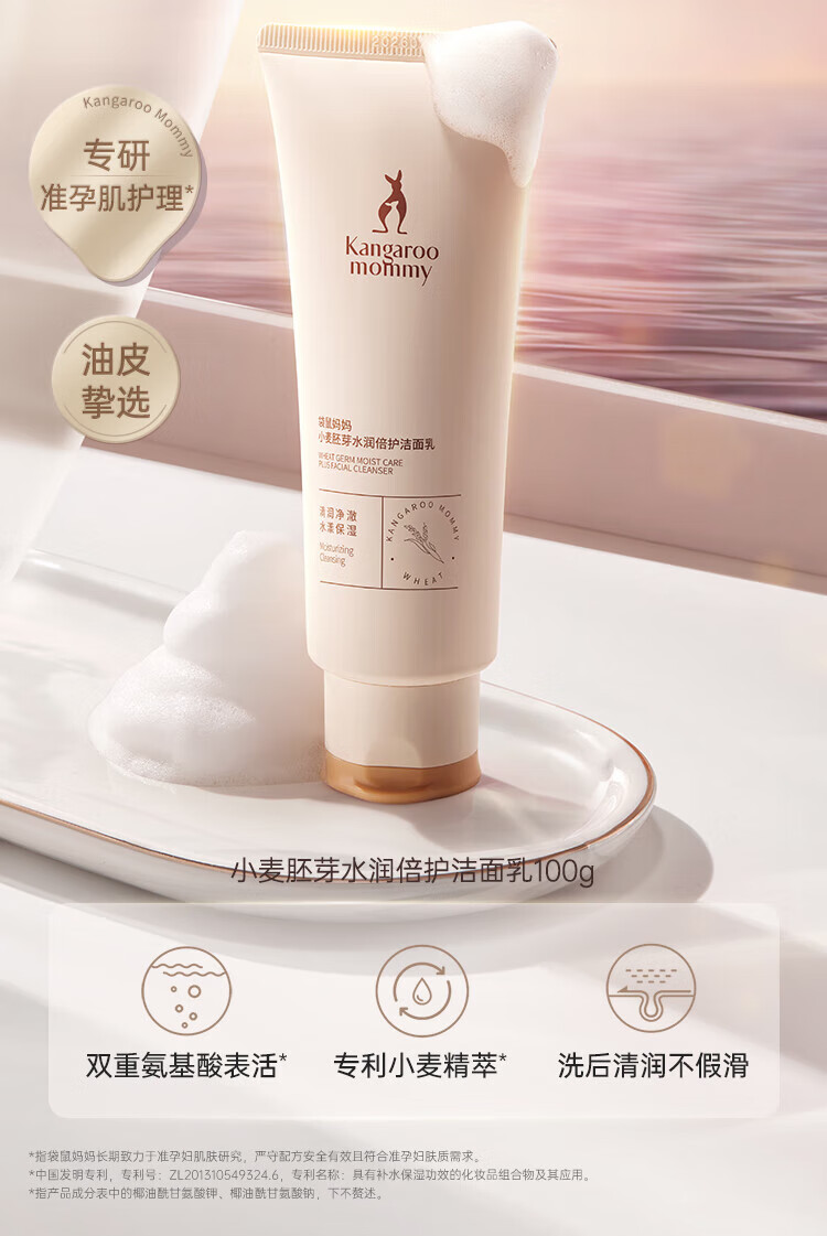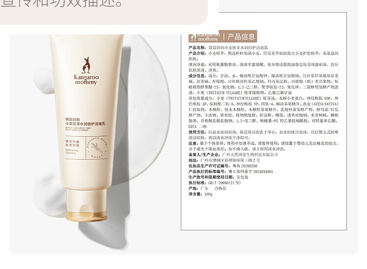 Kangaroo Mom Wheat Facial Cleanser Cleansing, Moisturizing and Pregnant Women Skin Care Products Cosmetics Upgraded Hydrating Facial Cleanser 100g