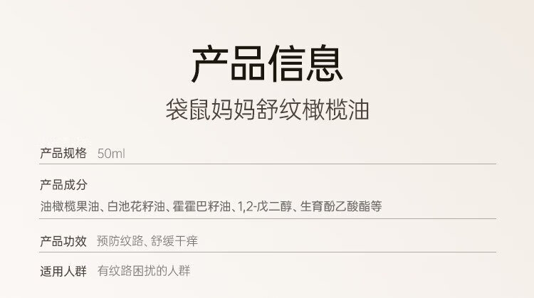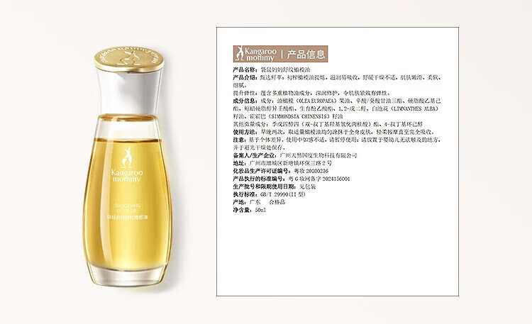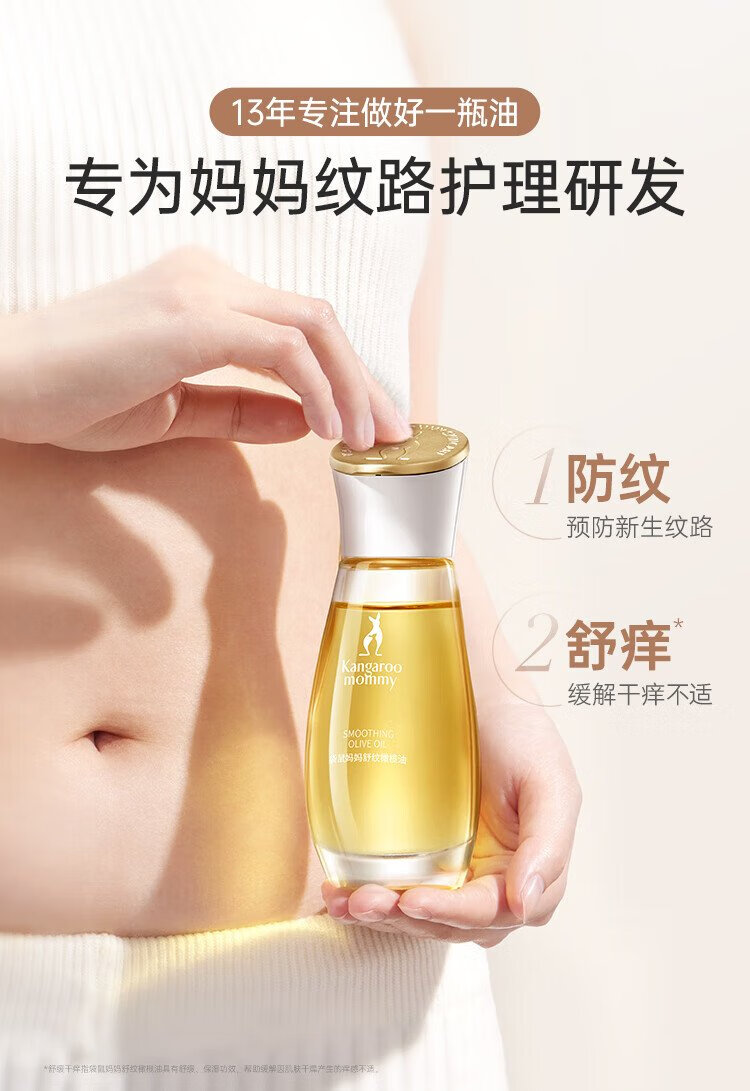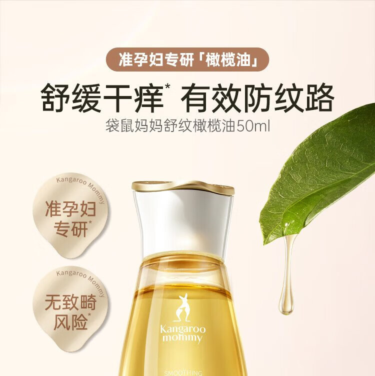 Kangaroo mother's special olive oil massage anti-wrinkle essential oil for expectant mothers to soothe and fade lines, postpartum repair pregnancy oil skin care products, olive oil 50ml
