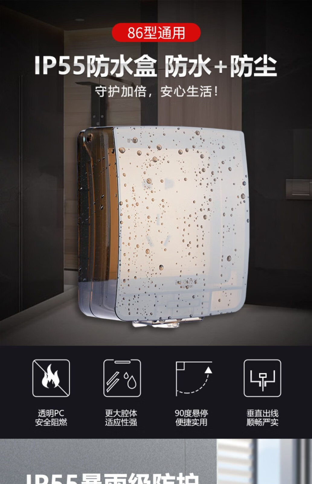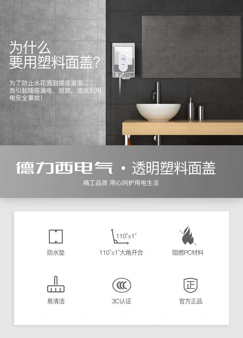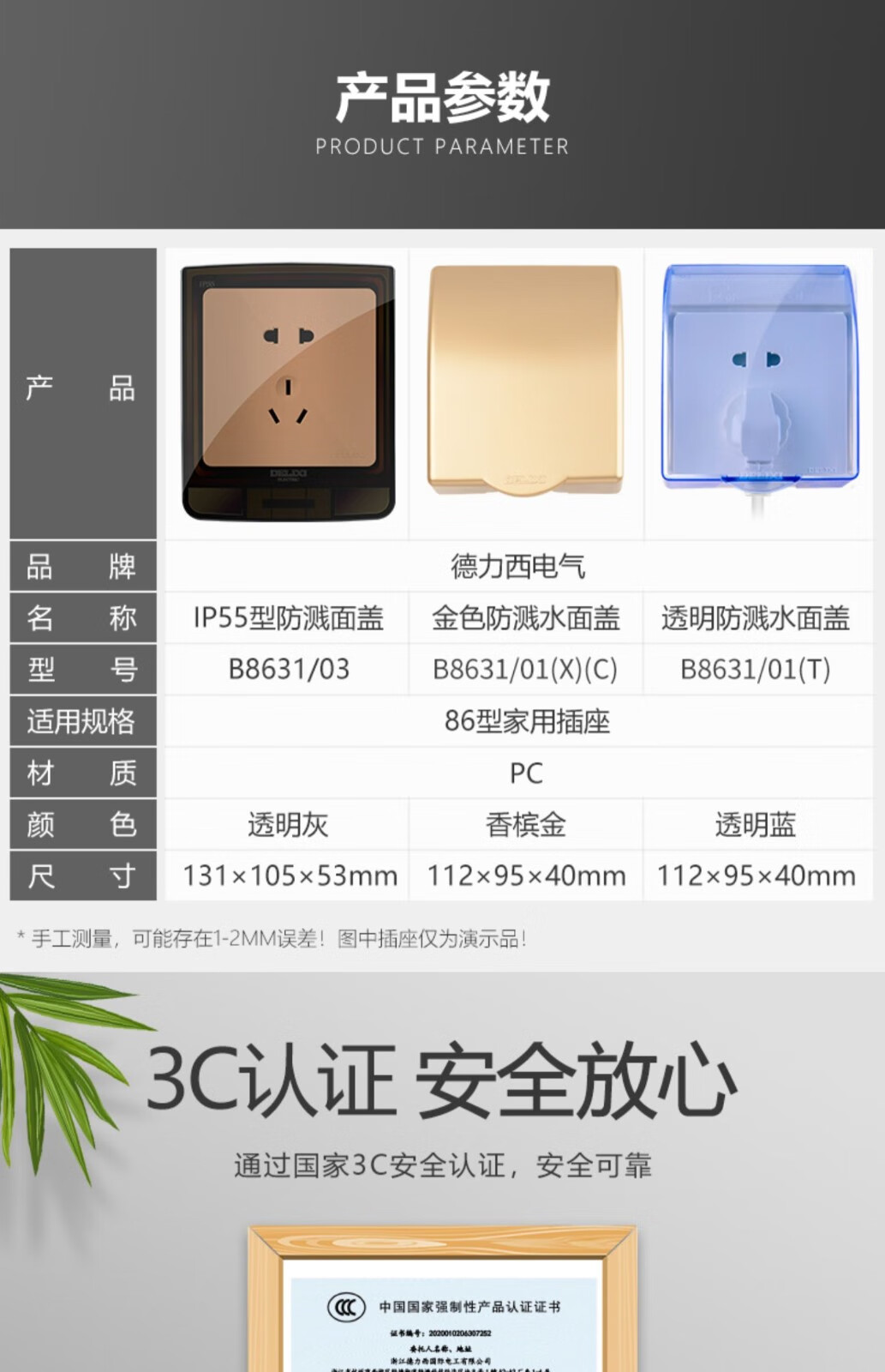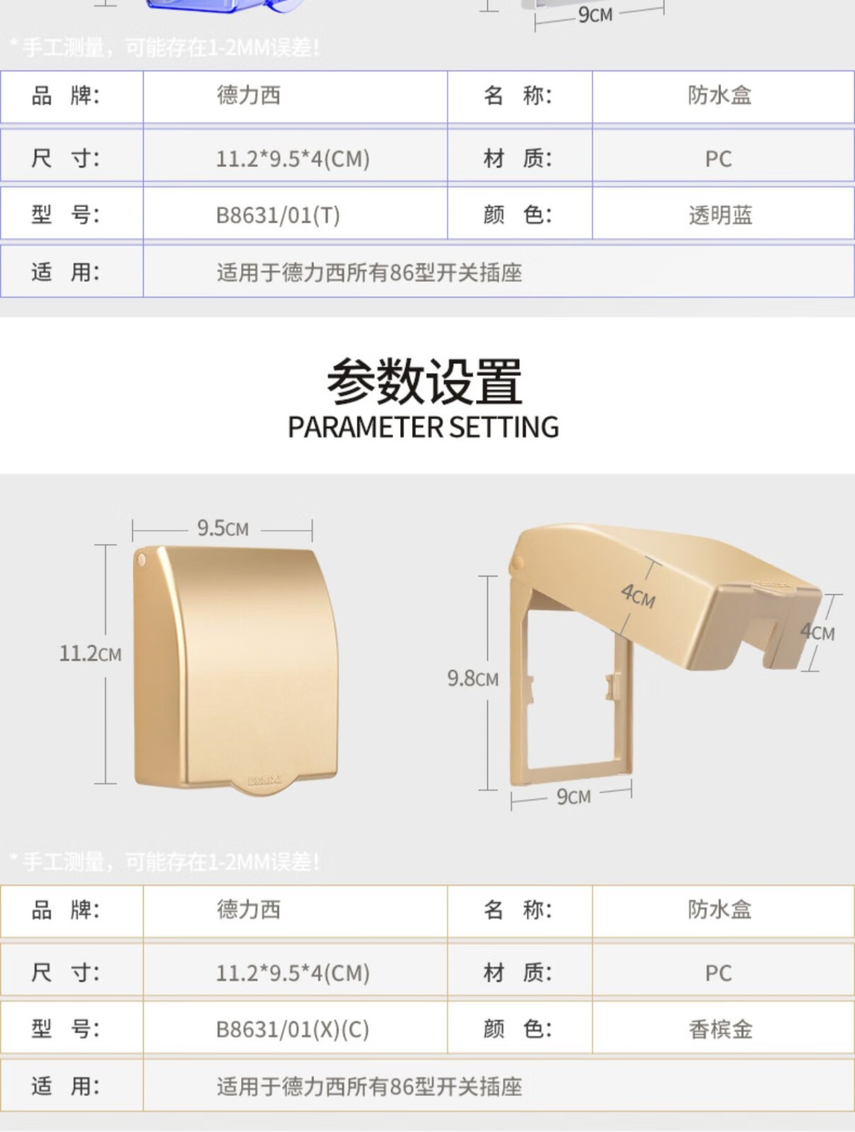 DELIXI waterproof socket waterproof cover 86 type switch waterproof box bathroom toilet splash box socket protective cover champagne gold plastic cover
