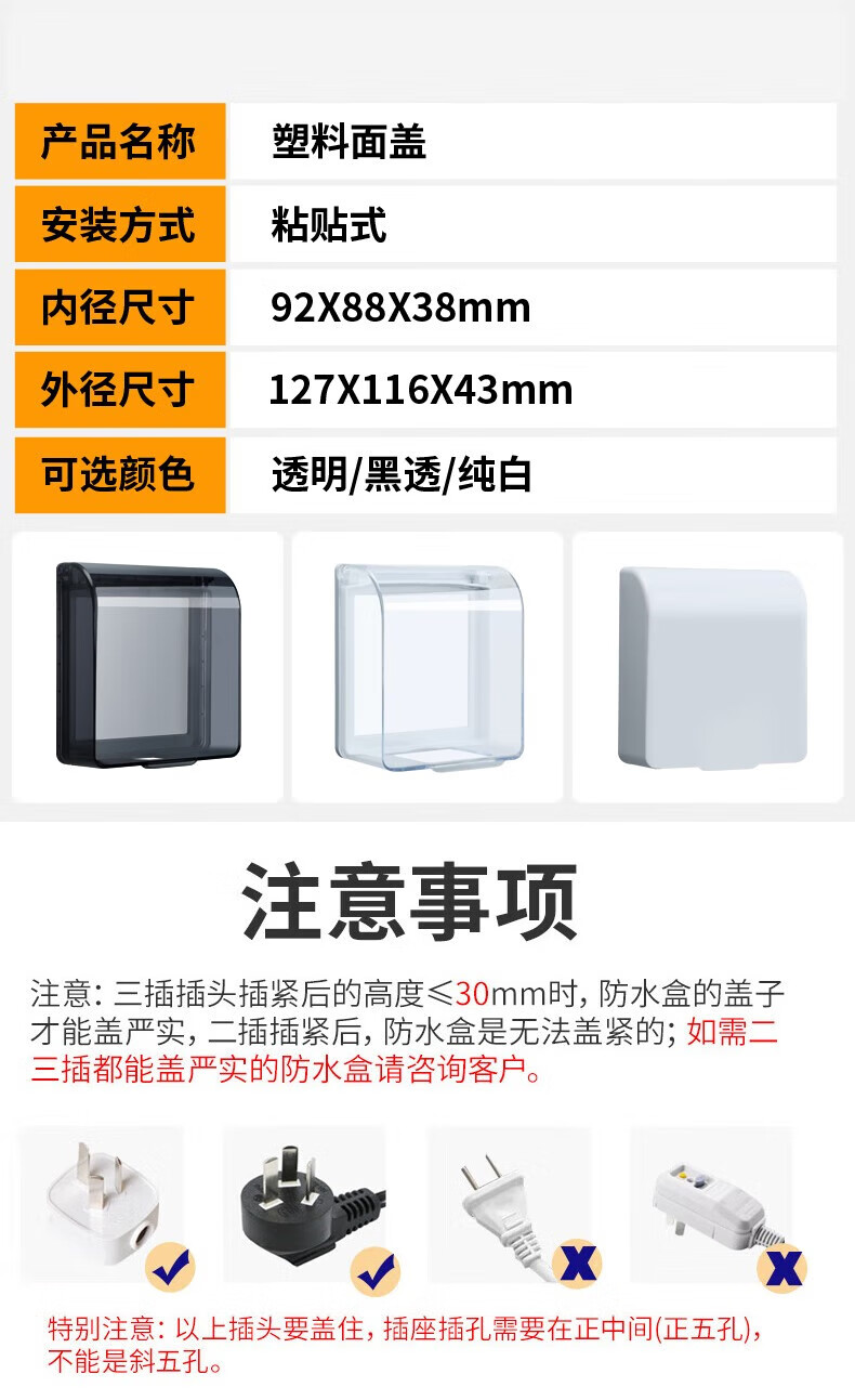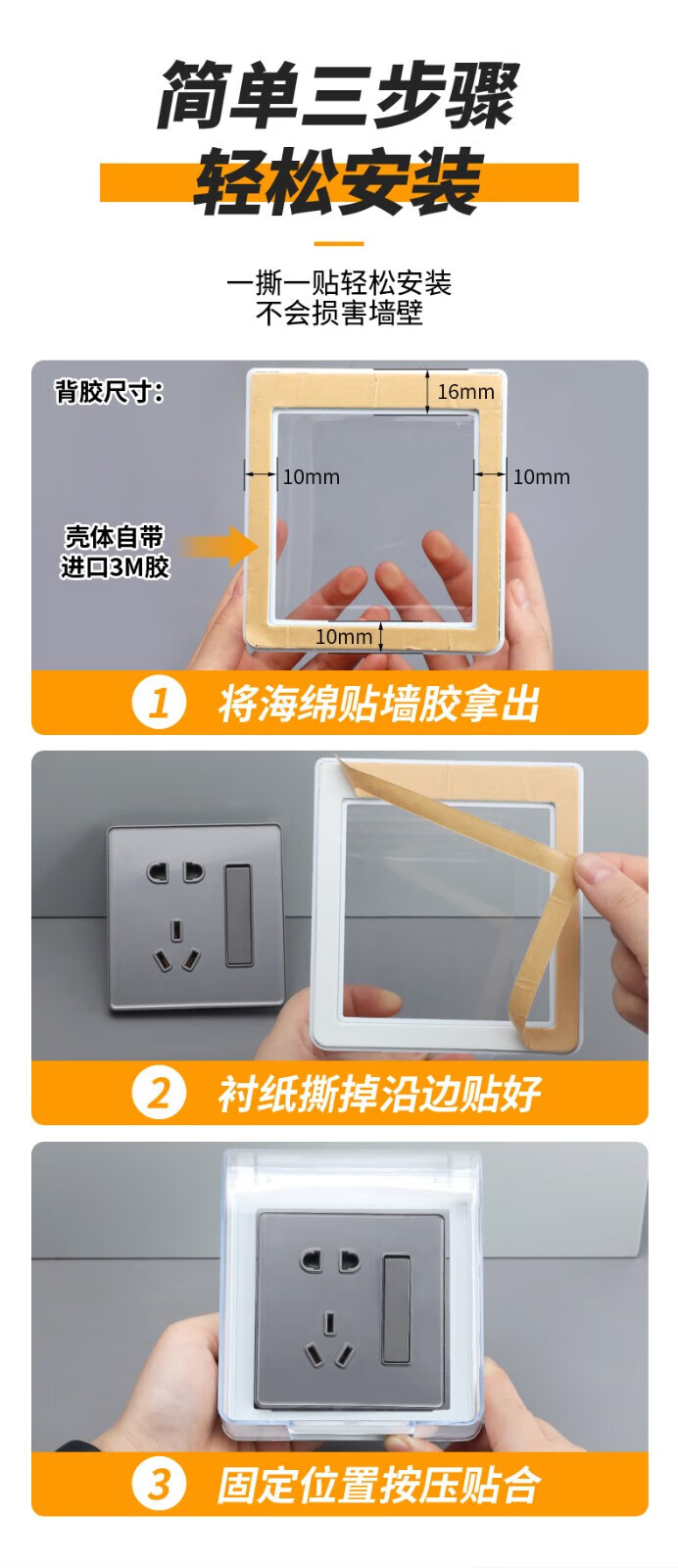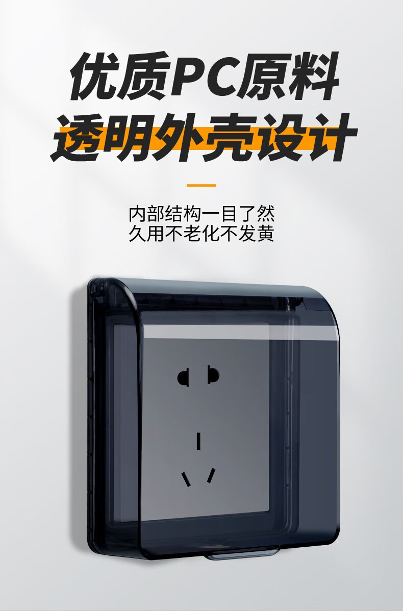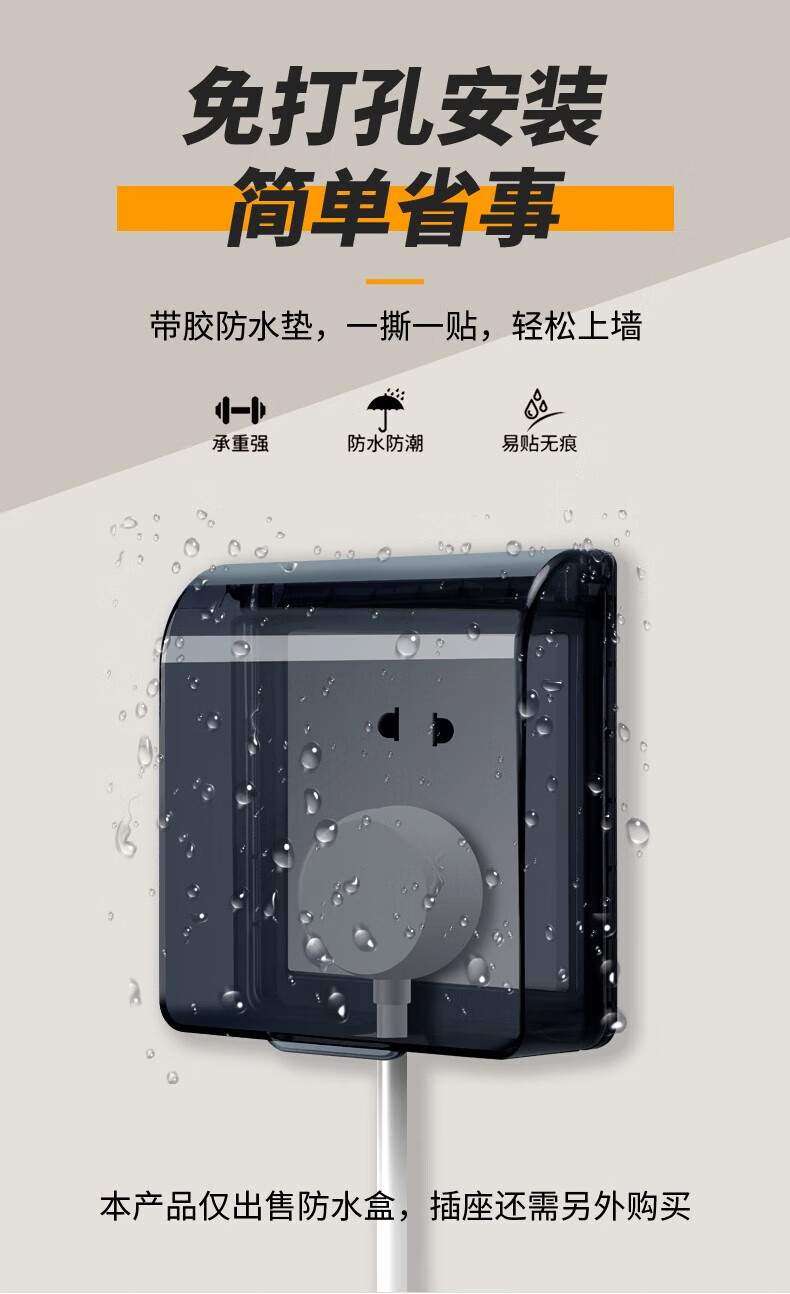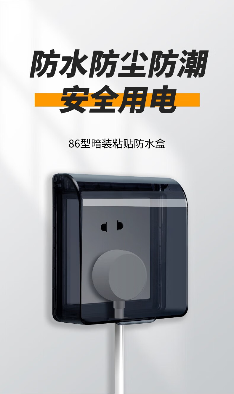 He Jiangong ZUOLB86 socket waterproof box self-adhesive switching power supply protective cover splash-proof box bathroom toilet socket waterproof white transparent one-piece waterproof box