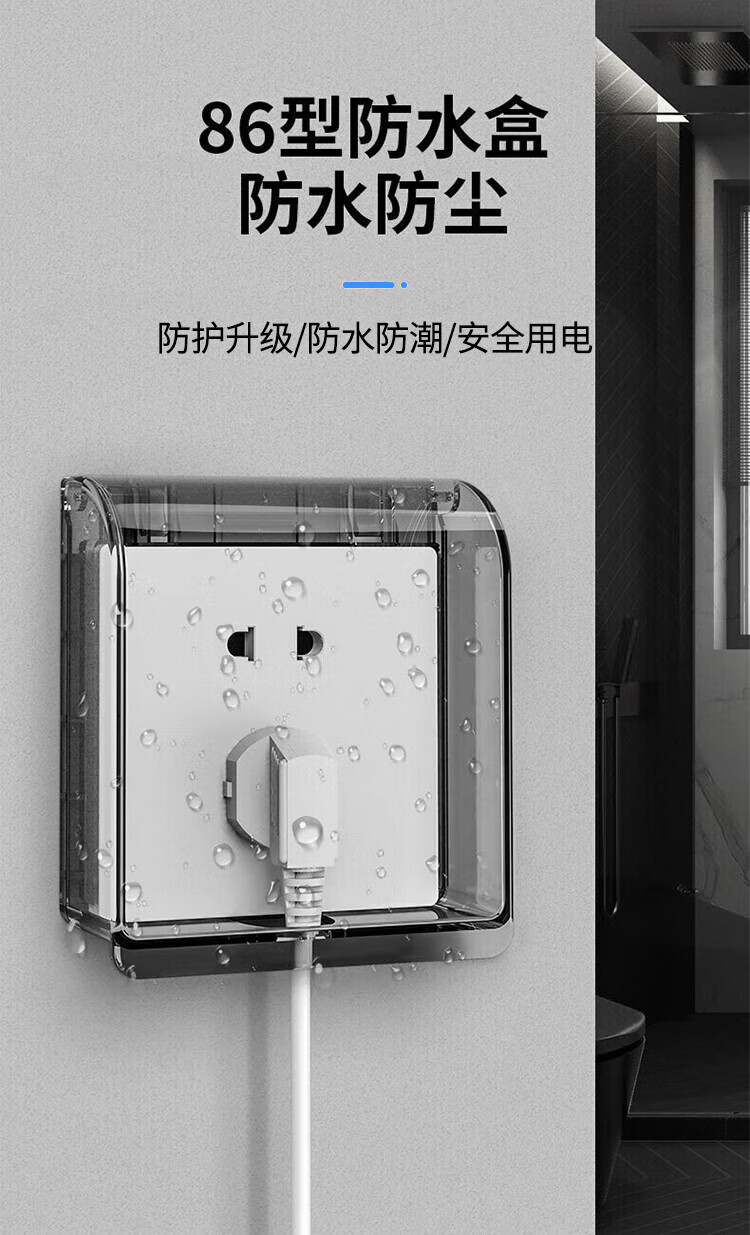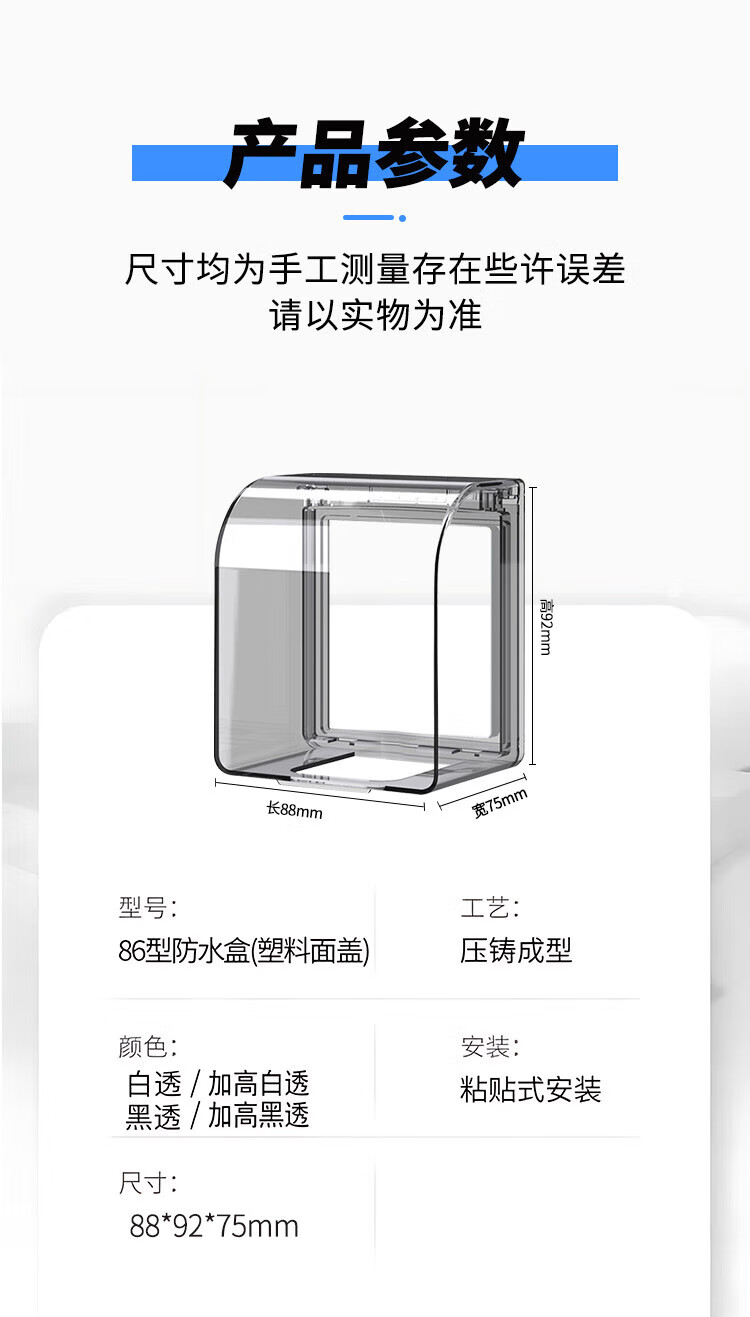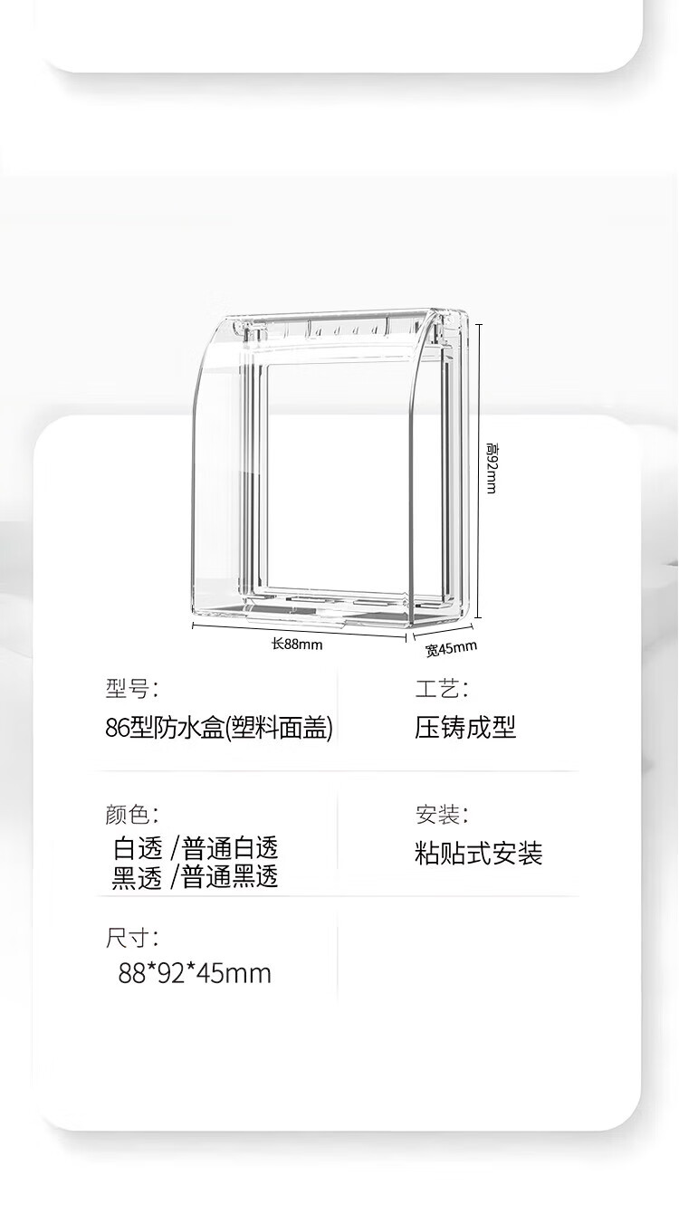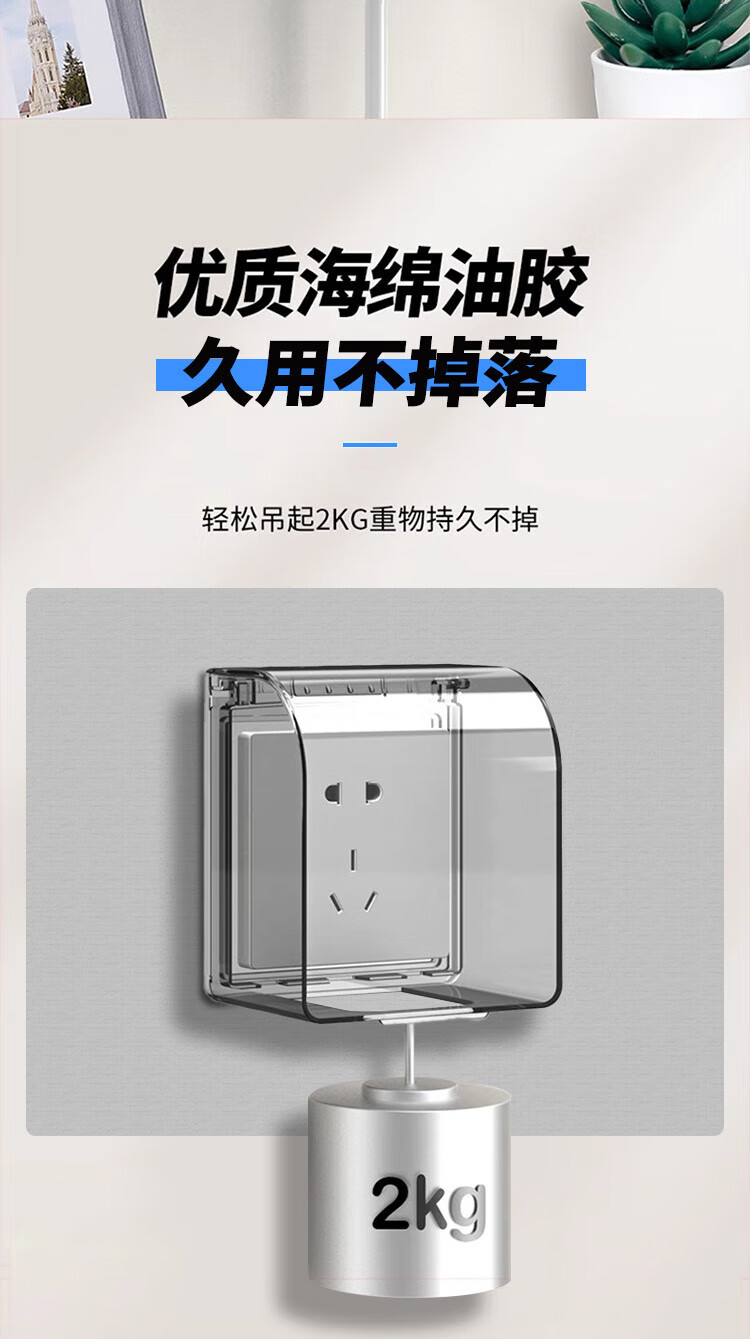 Type 86 socket waterproof cover self-adhesive switching power supply protective cover splash-proof box bathroom toilet socket protection box heightened waterproof box-transparent